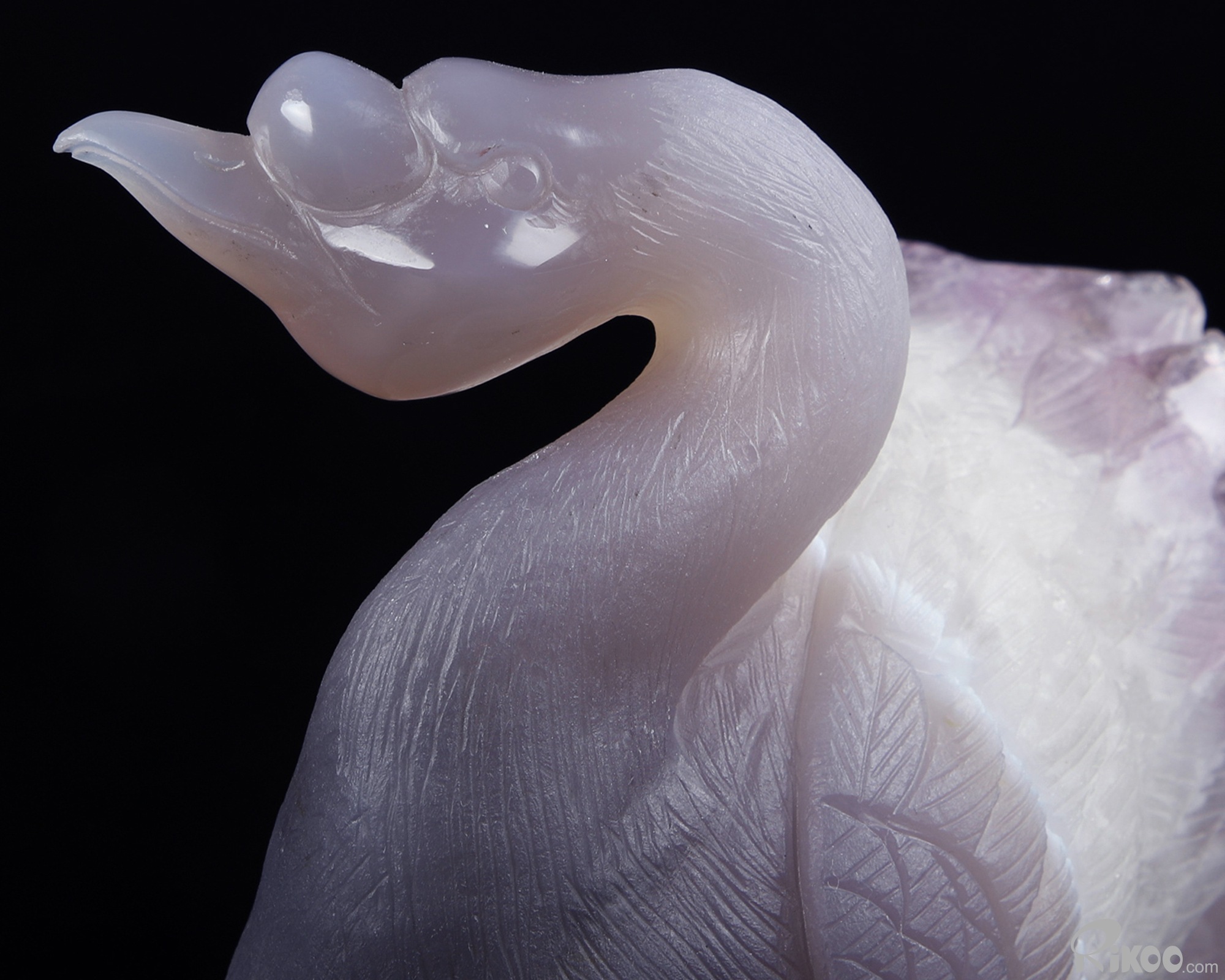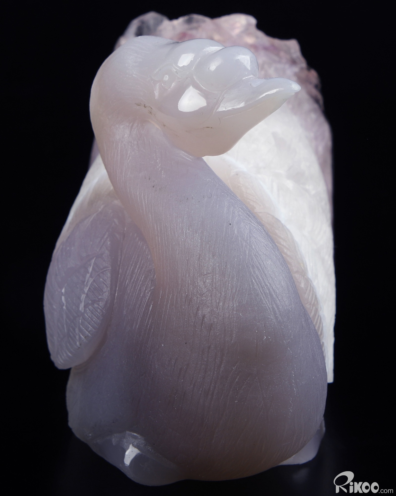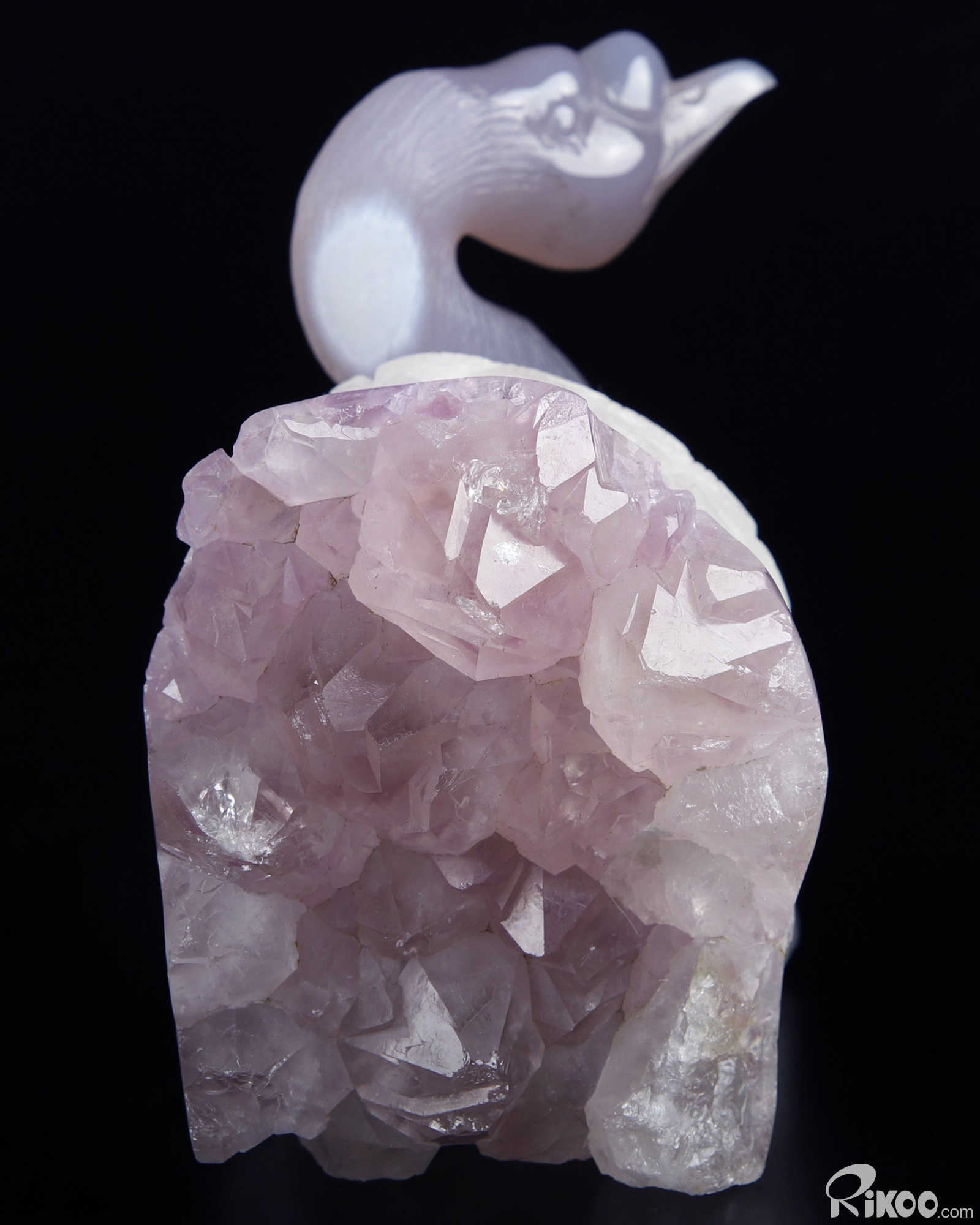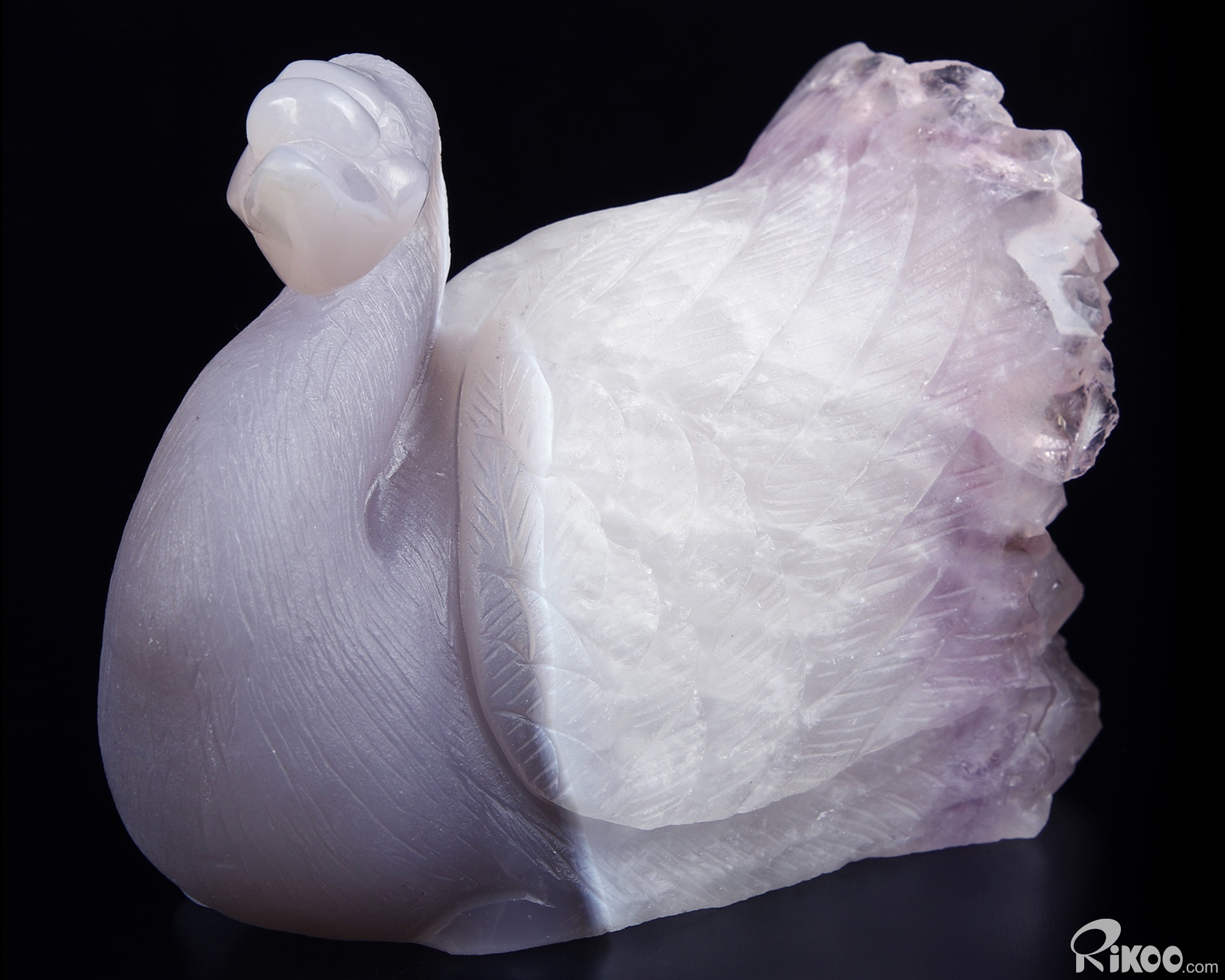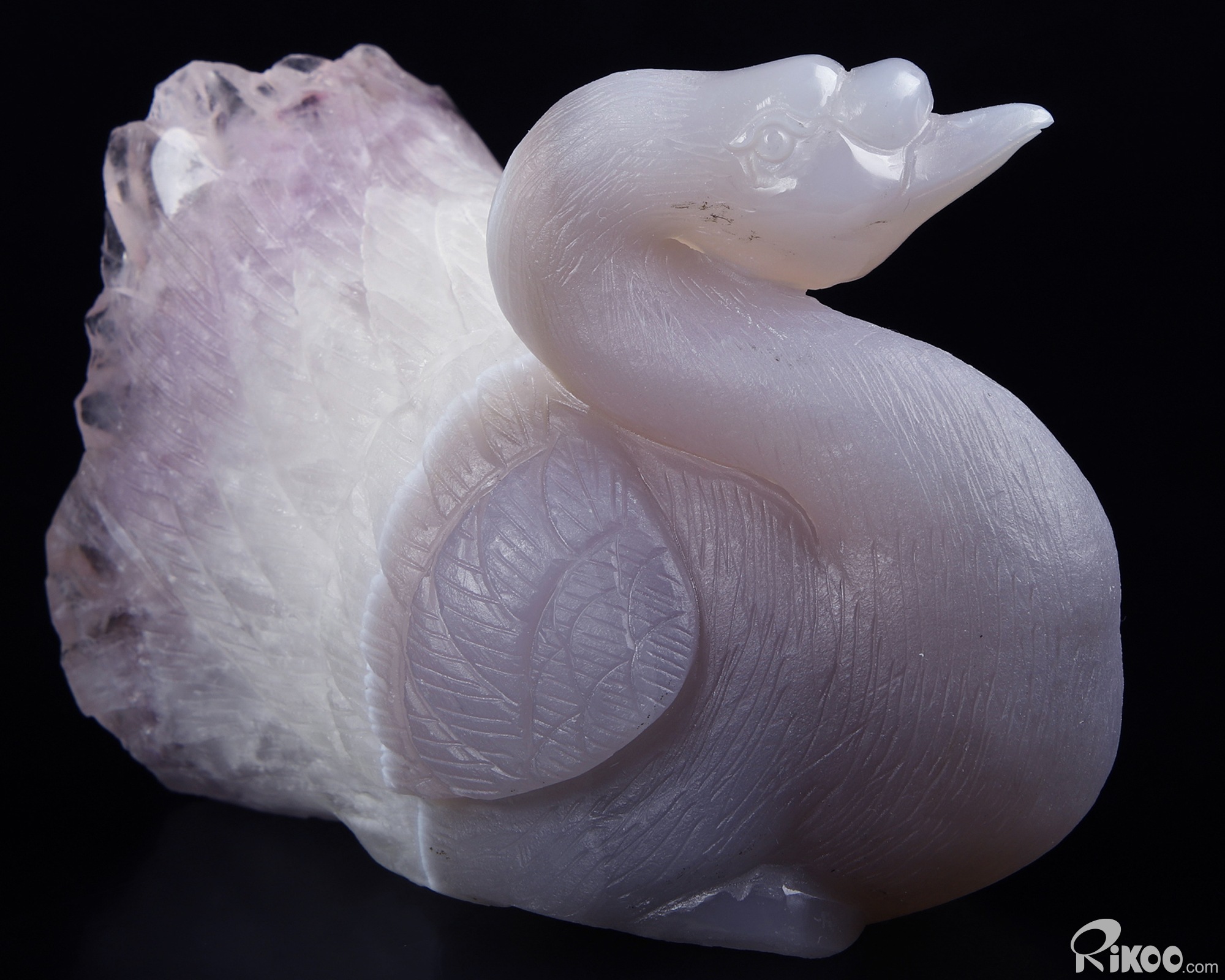 Huge 5.1" Amethyst & Agate Carved swan Crystal A COUPLE OF SWANS, Crystal Healing, Sculpture
