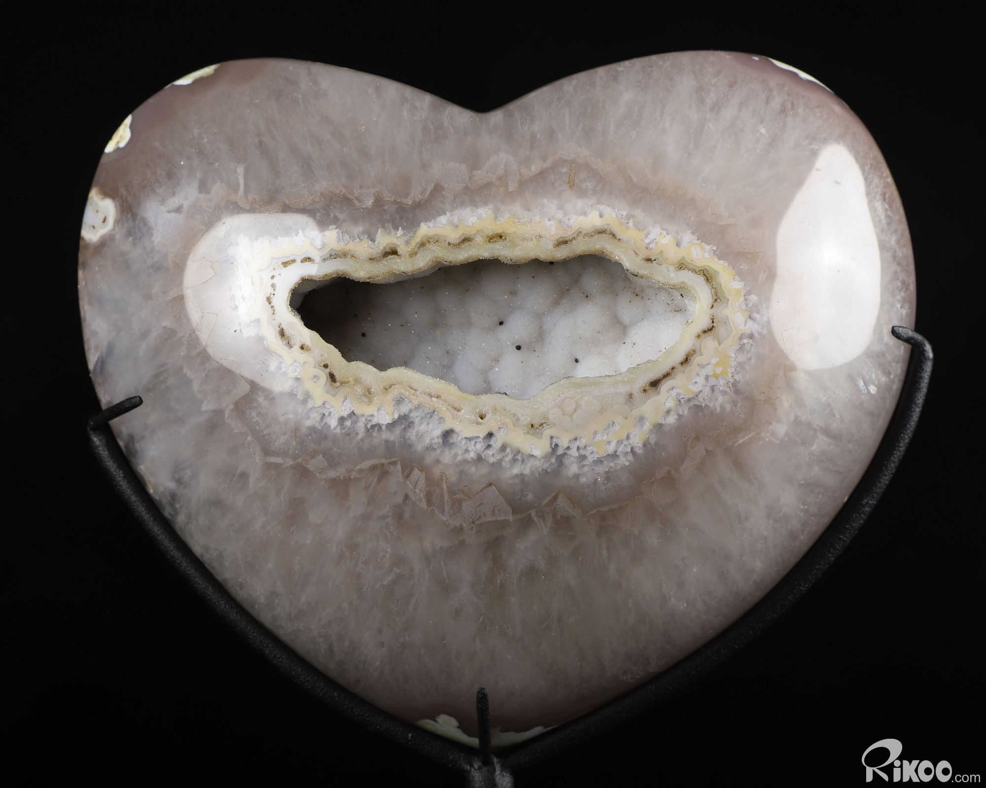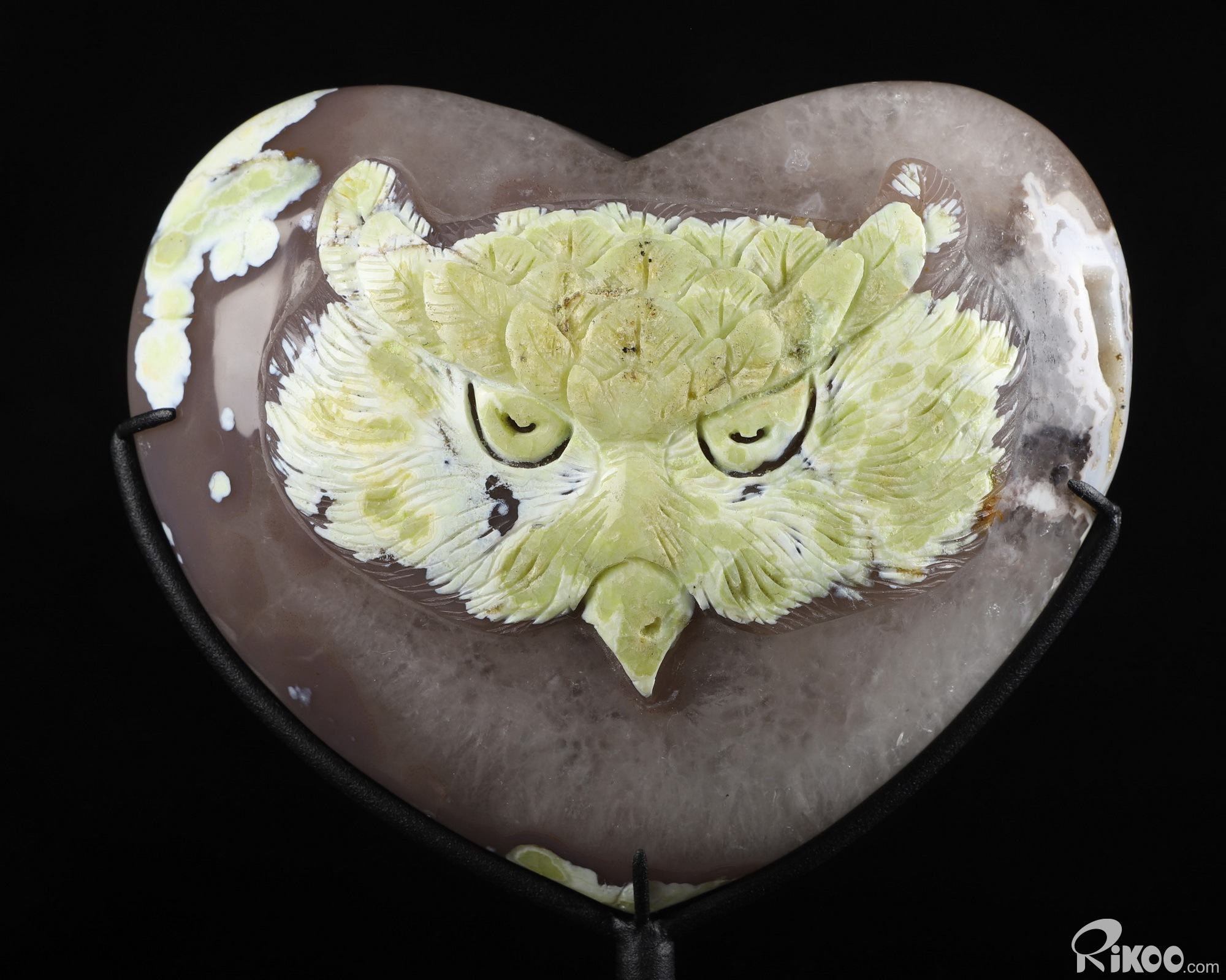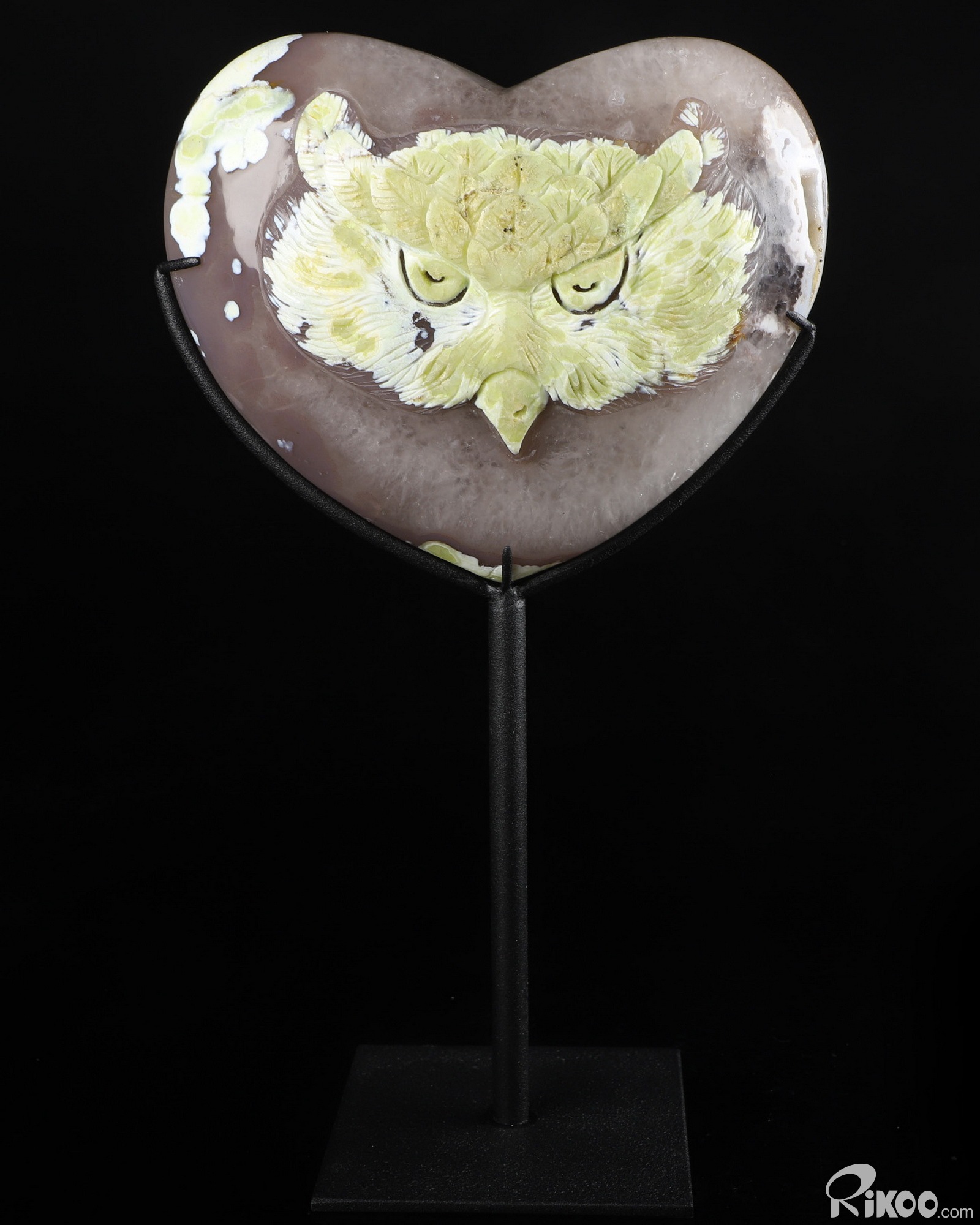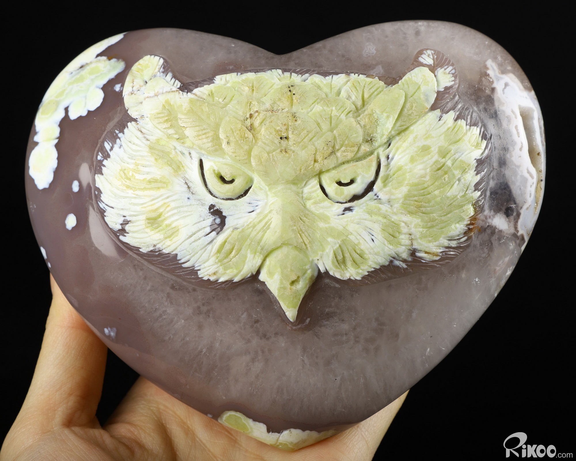 Huge 5.5" Agate Geode Carved Crystal Heart & Owl, Crystal Healing