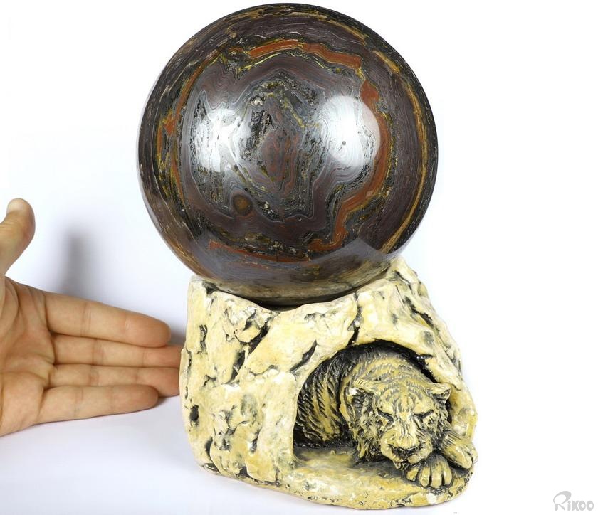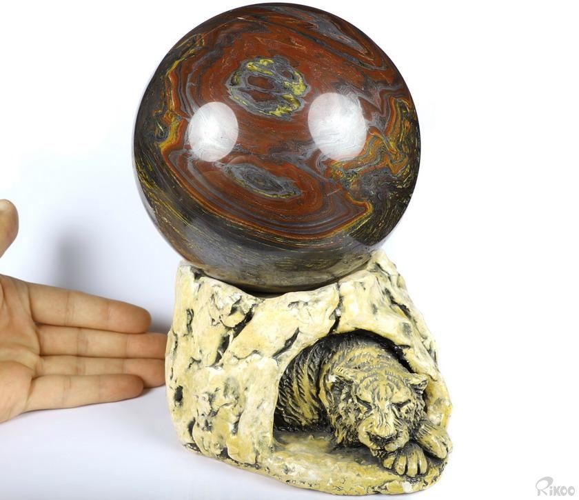 Huge 5.6" Colorful Tiger Iron Eye Carved Crystal Sphere, Crystal Healing