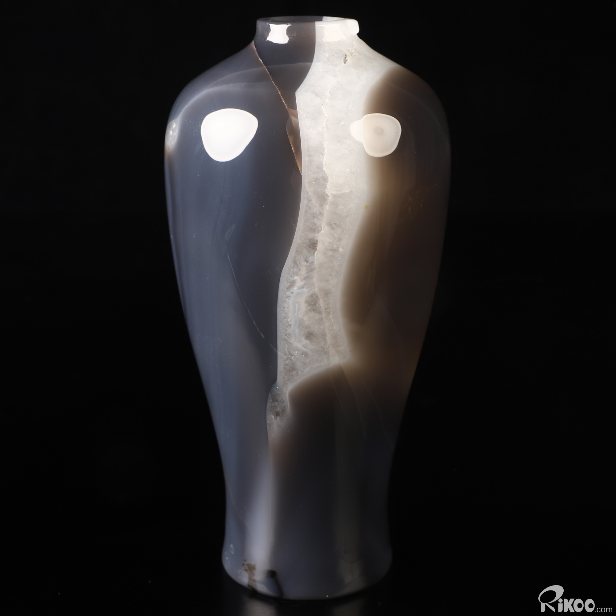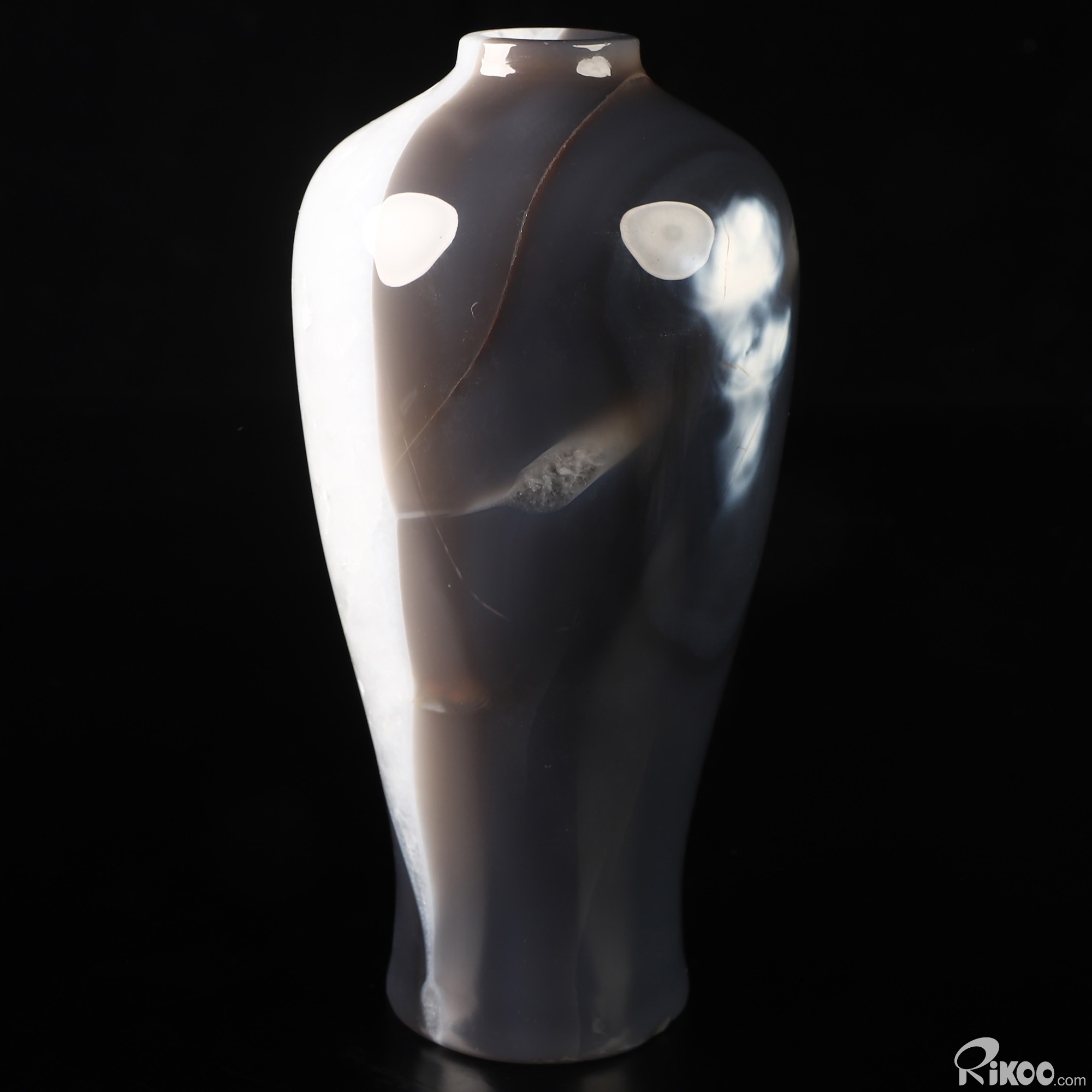 This vase with limited functionality is mainly for display.Composed of microscopic crystals of Quartz laid down in colorful bands or ribbons. The appearance of the stone is waxy and soft. Almost always translucent and occasionally transparent. Agates are grounding stones. Agates are one of the oldest good luck stones. They help obtain a better physical/emotional balance. They work to raise consciousness. Builds self-confidence. Agate enables the person wearing it to choose their friends carefully. Used to avert from lighting and stormy weather (physically and metaphysically), agate brings prosperity. It is a protector of children. This stone helps us to have patience, and allows for inner peace. Use agate as a gazing tool for divination and meditation. Agate balances emotions and brings insight to any situation.