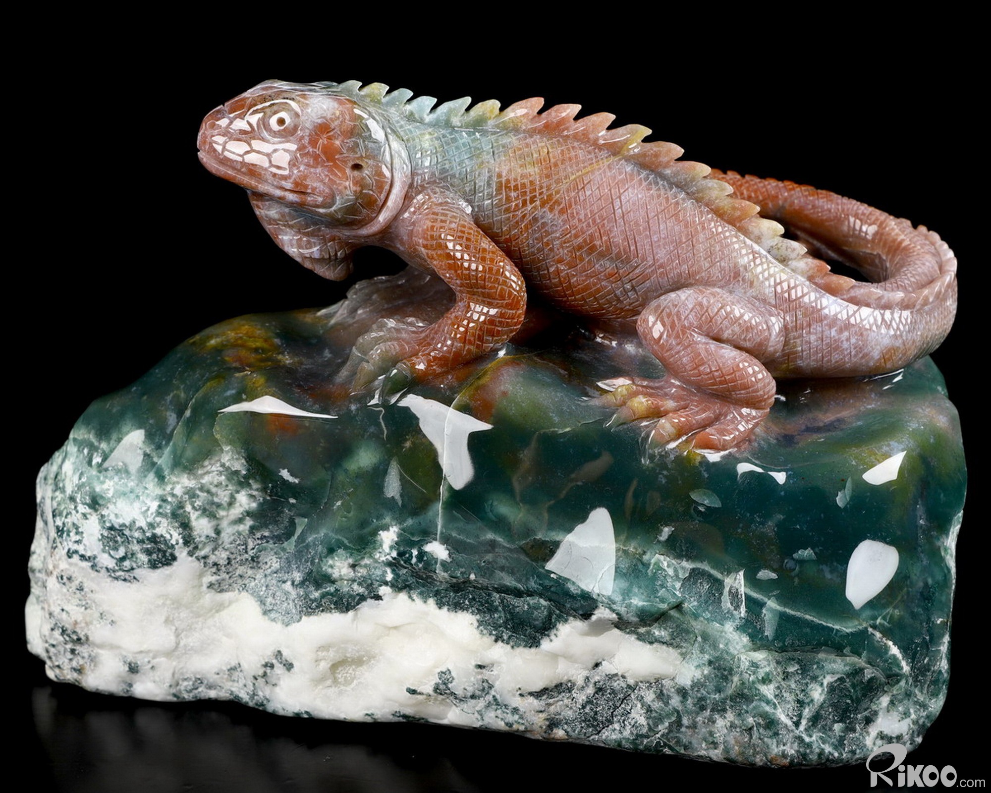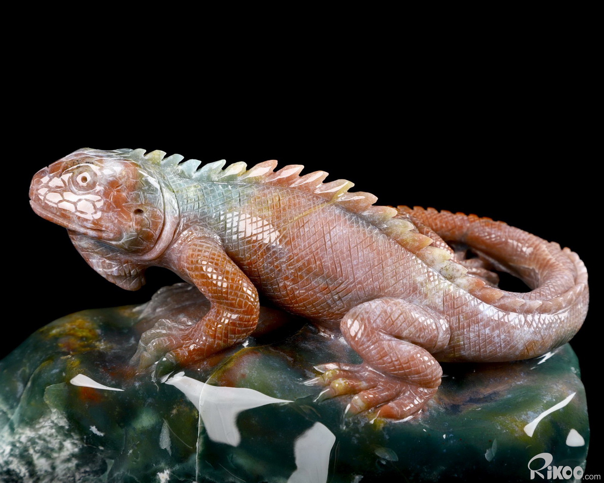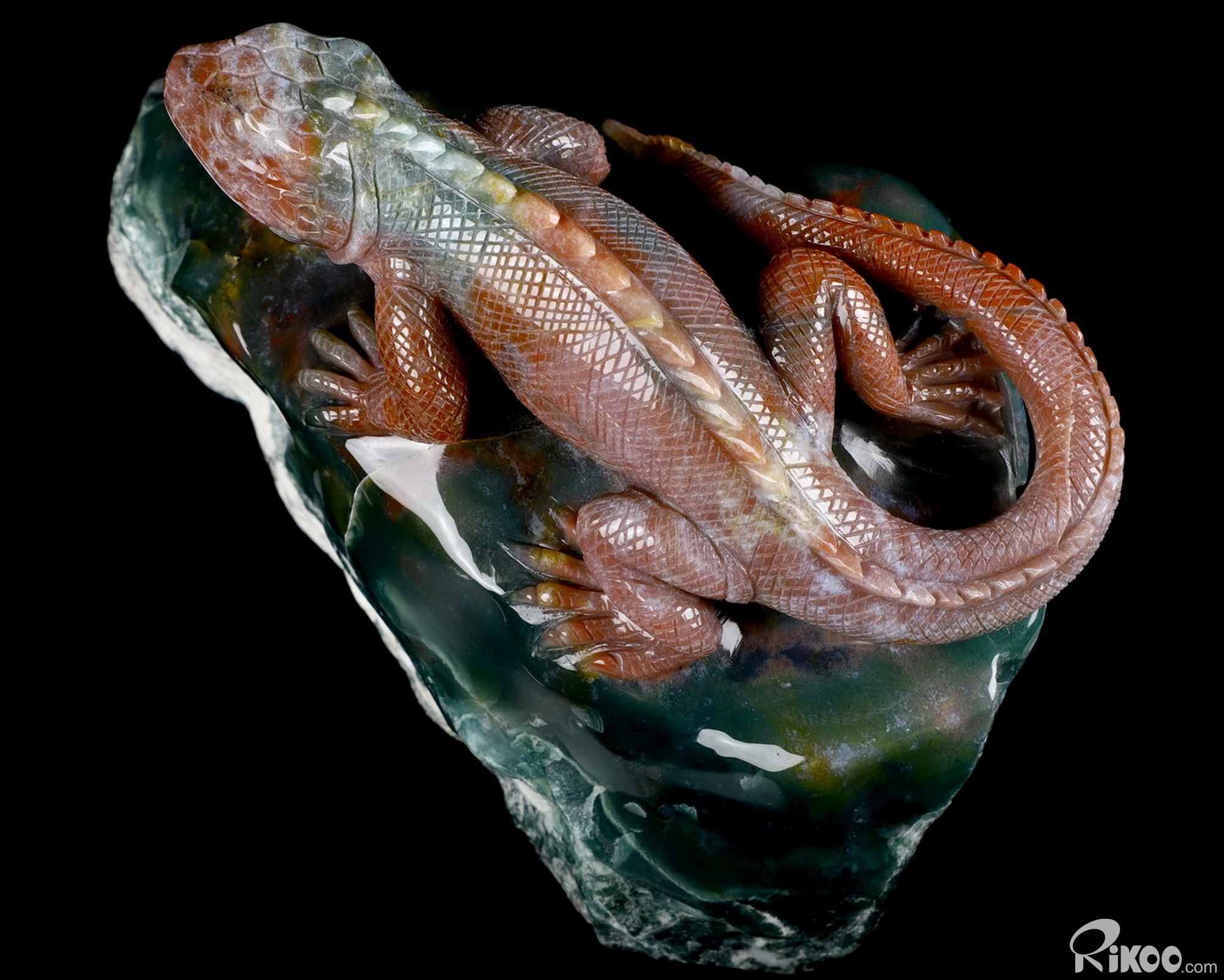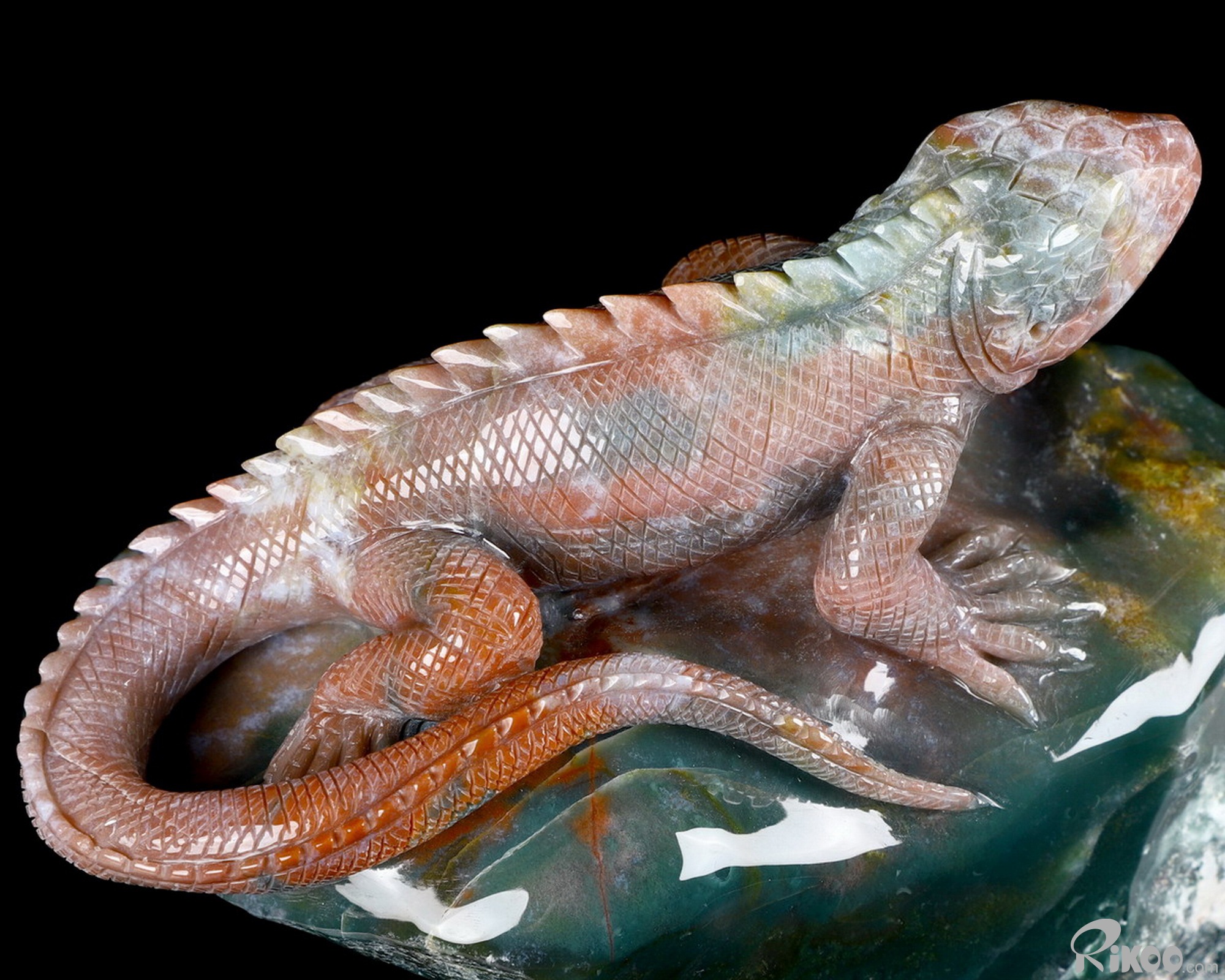 Huge 6.6" Indian Agate Carved Crystal Lizard Sculpture, Crystal Healing