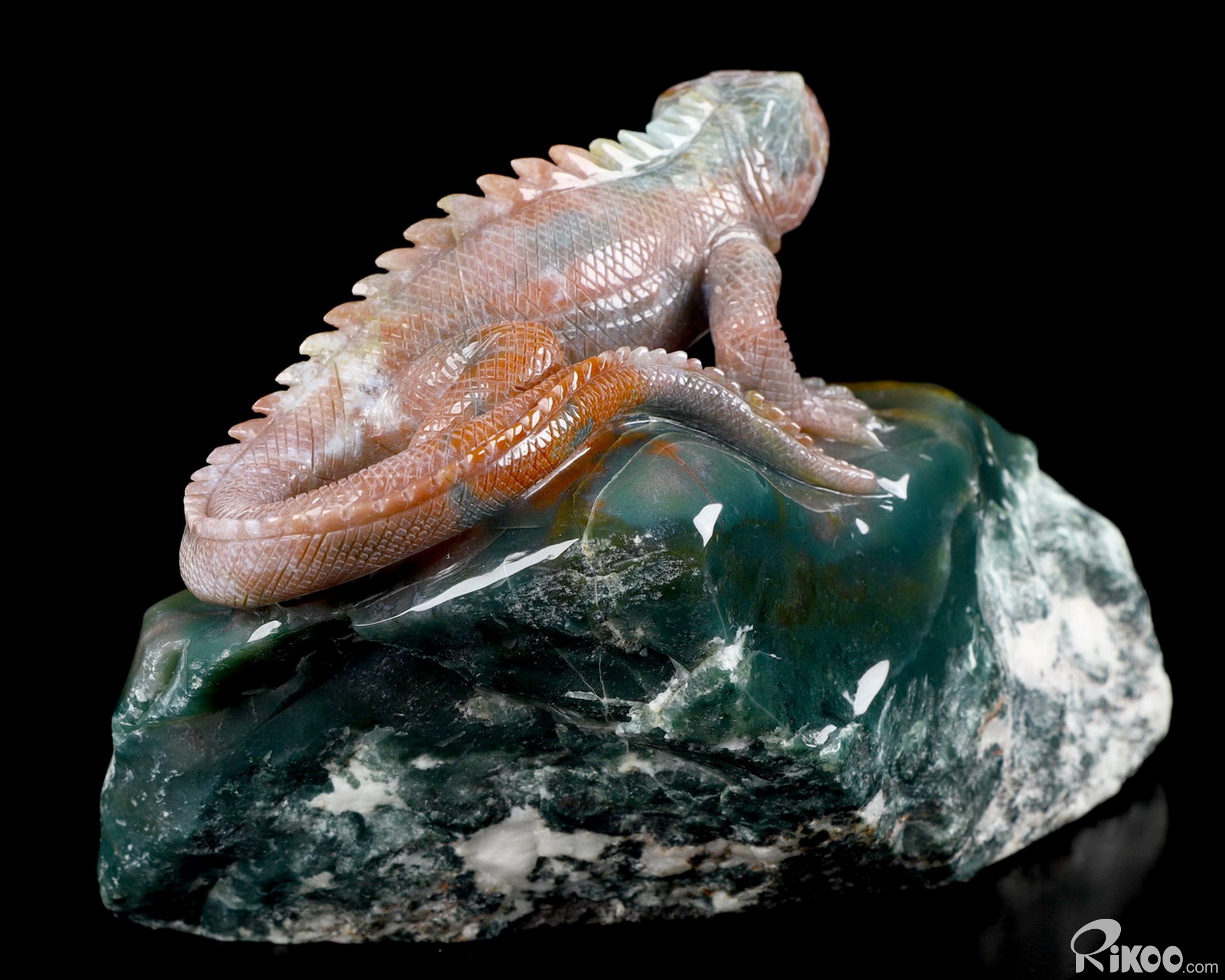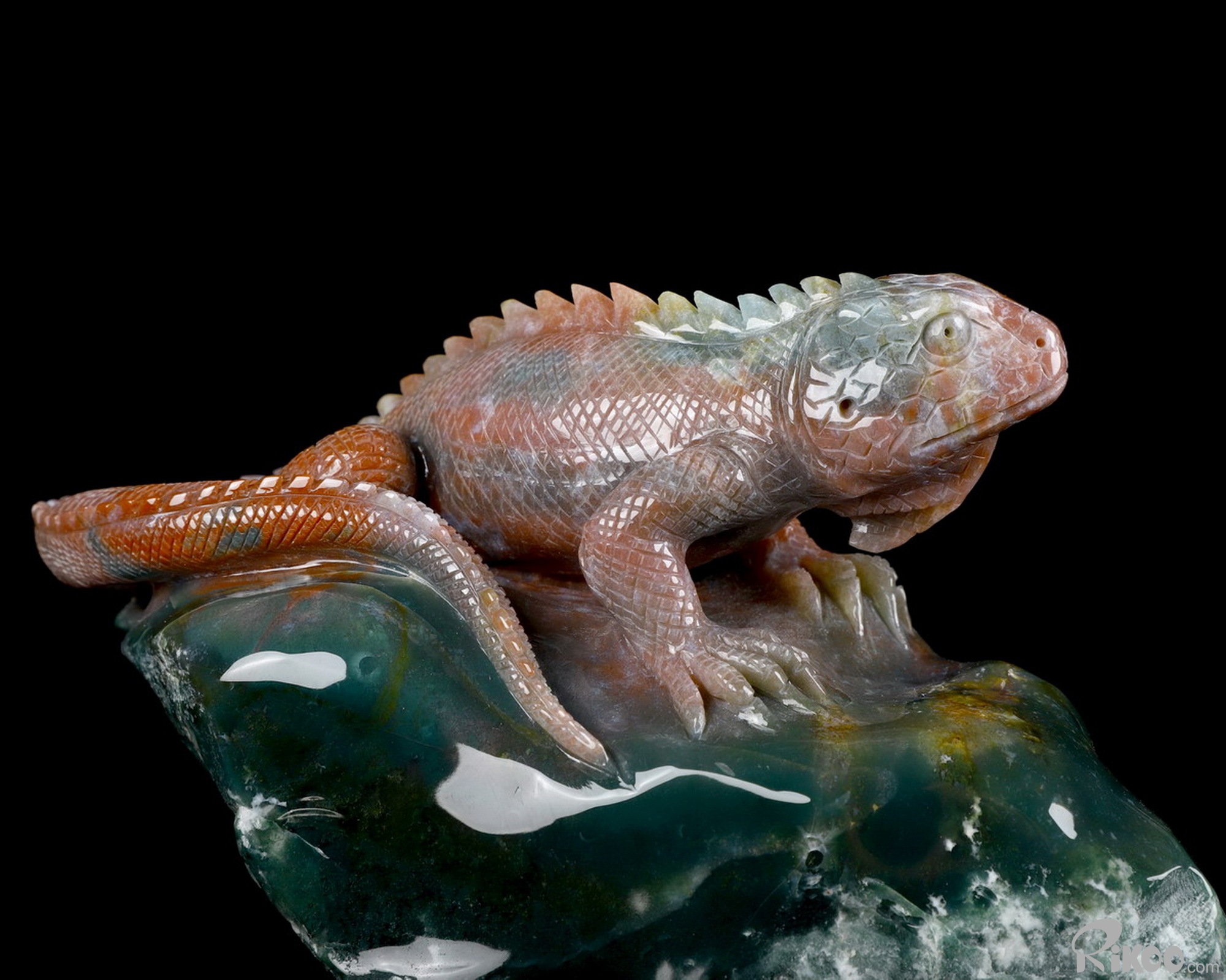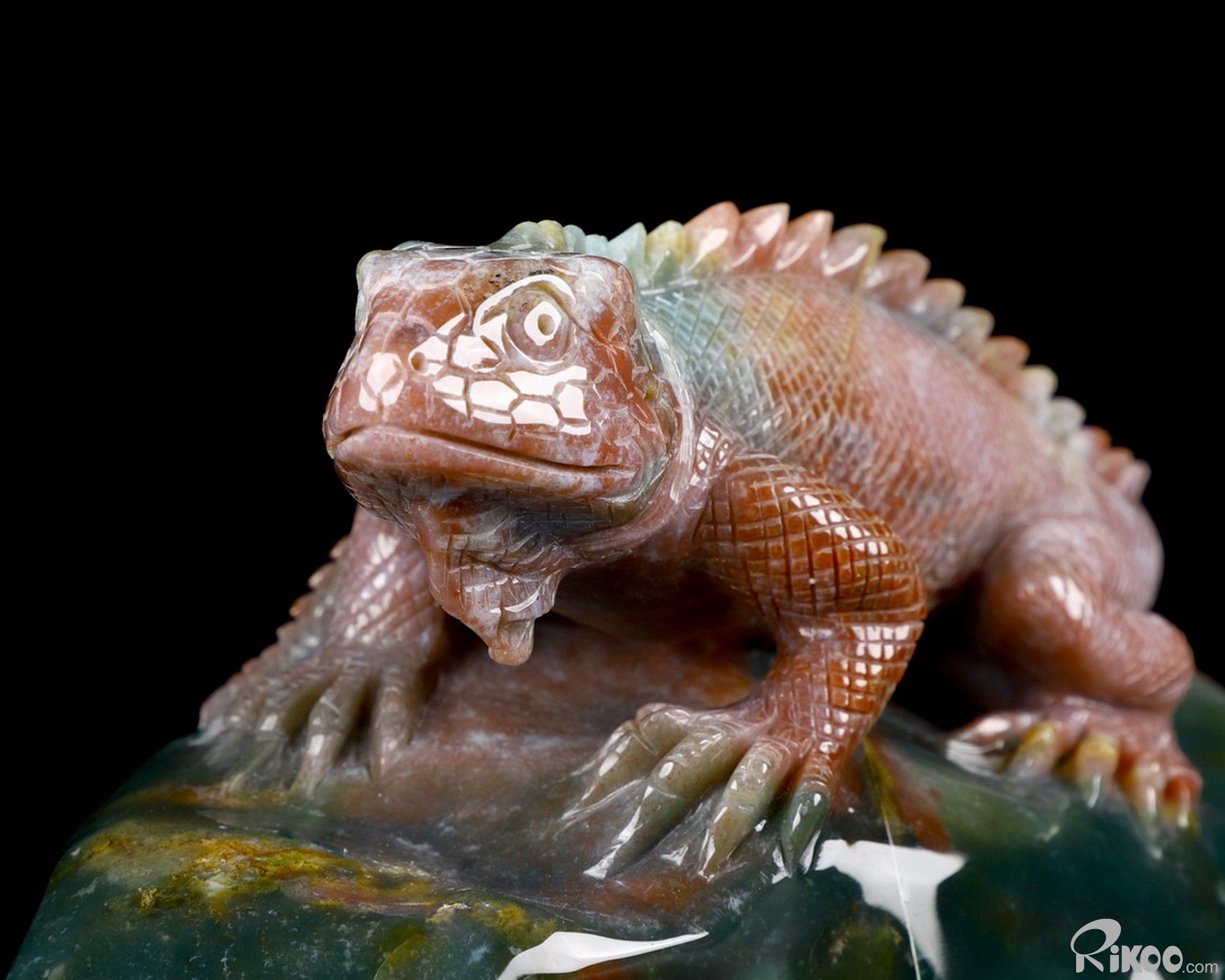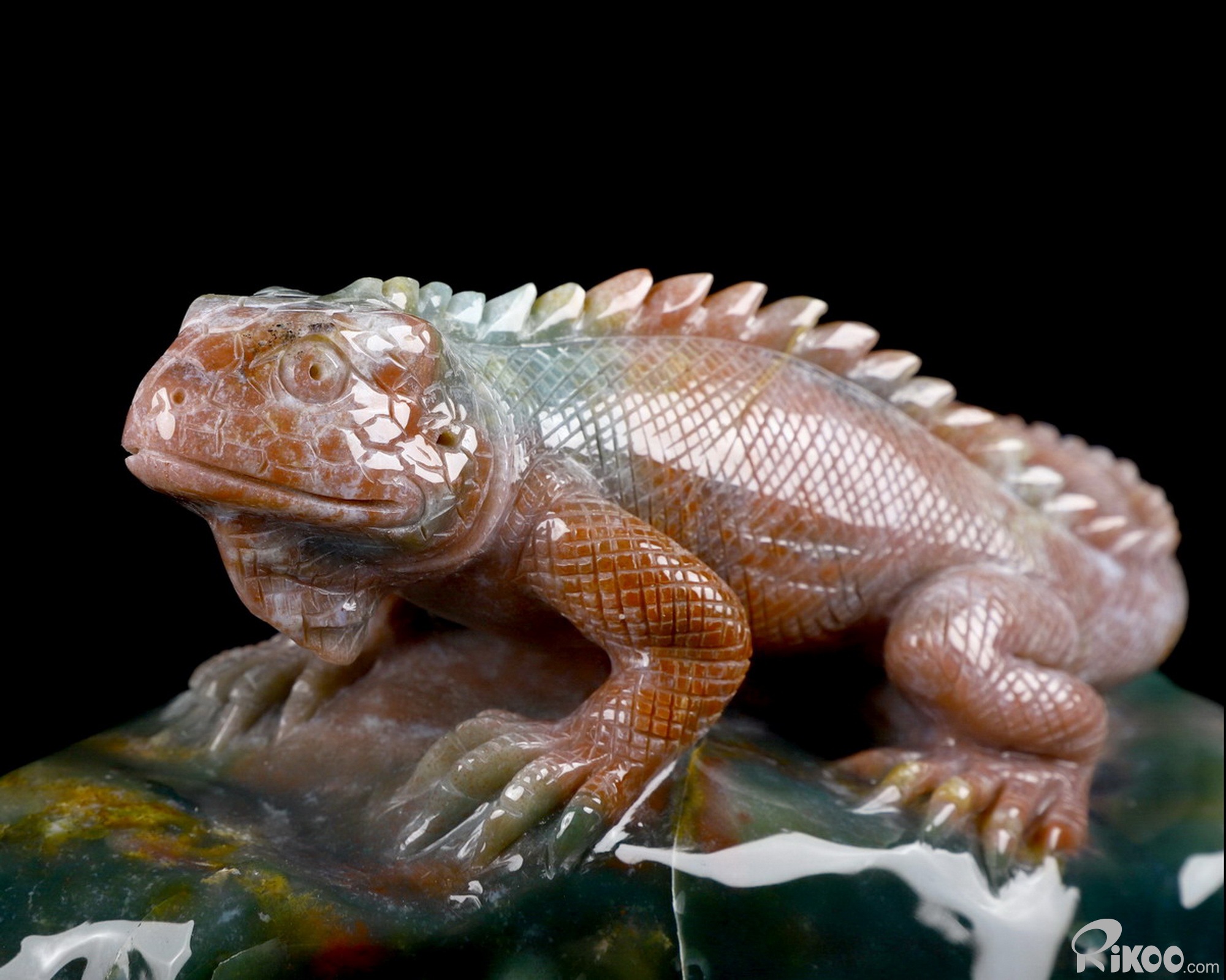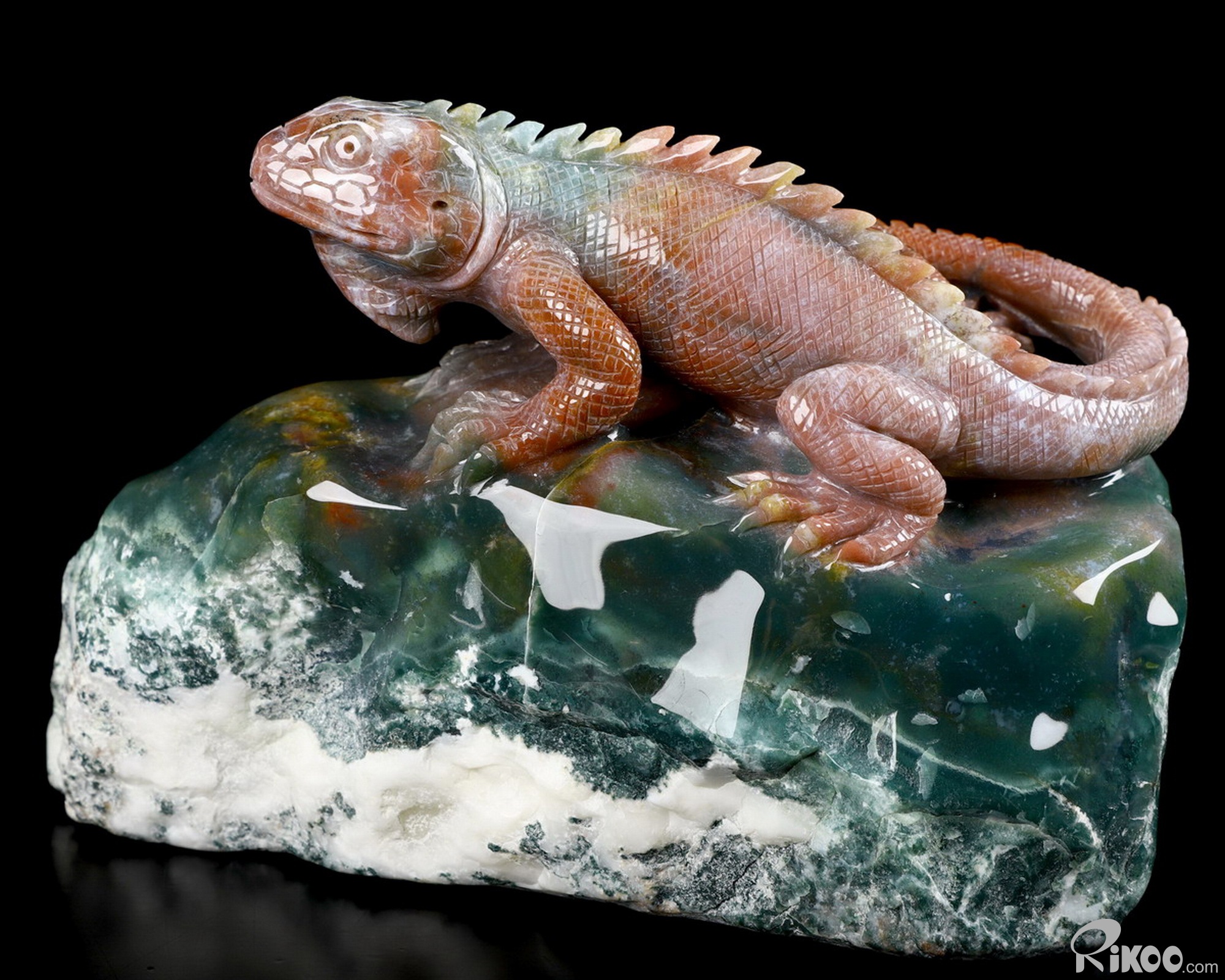 Huge 6.6" Indian Agate Carved Crystal Lizard Sculpture, Crystal Healing