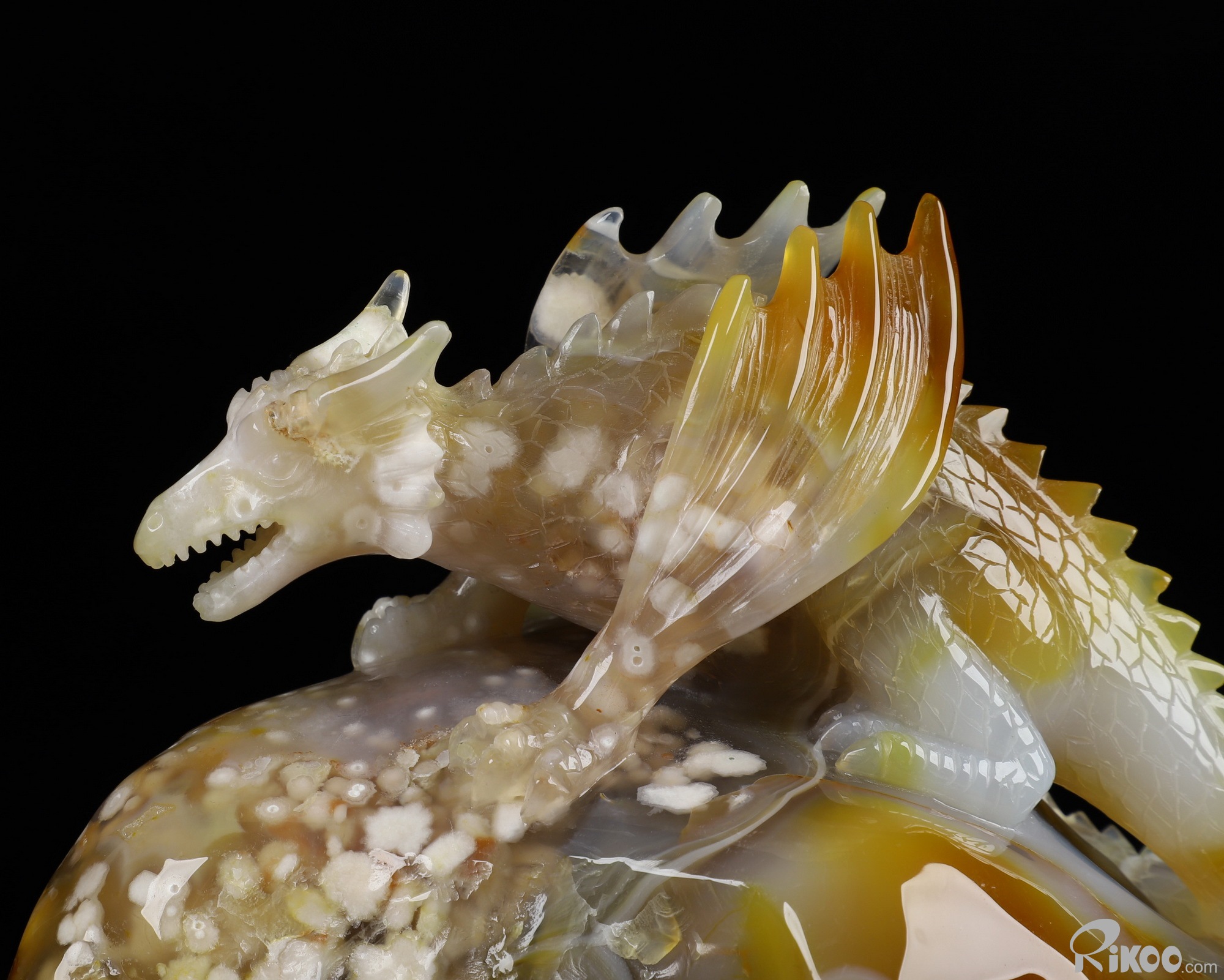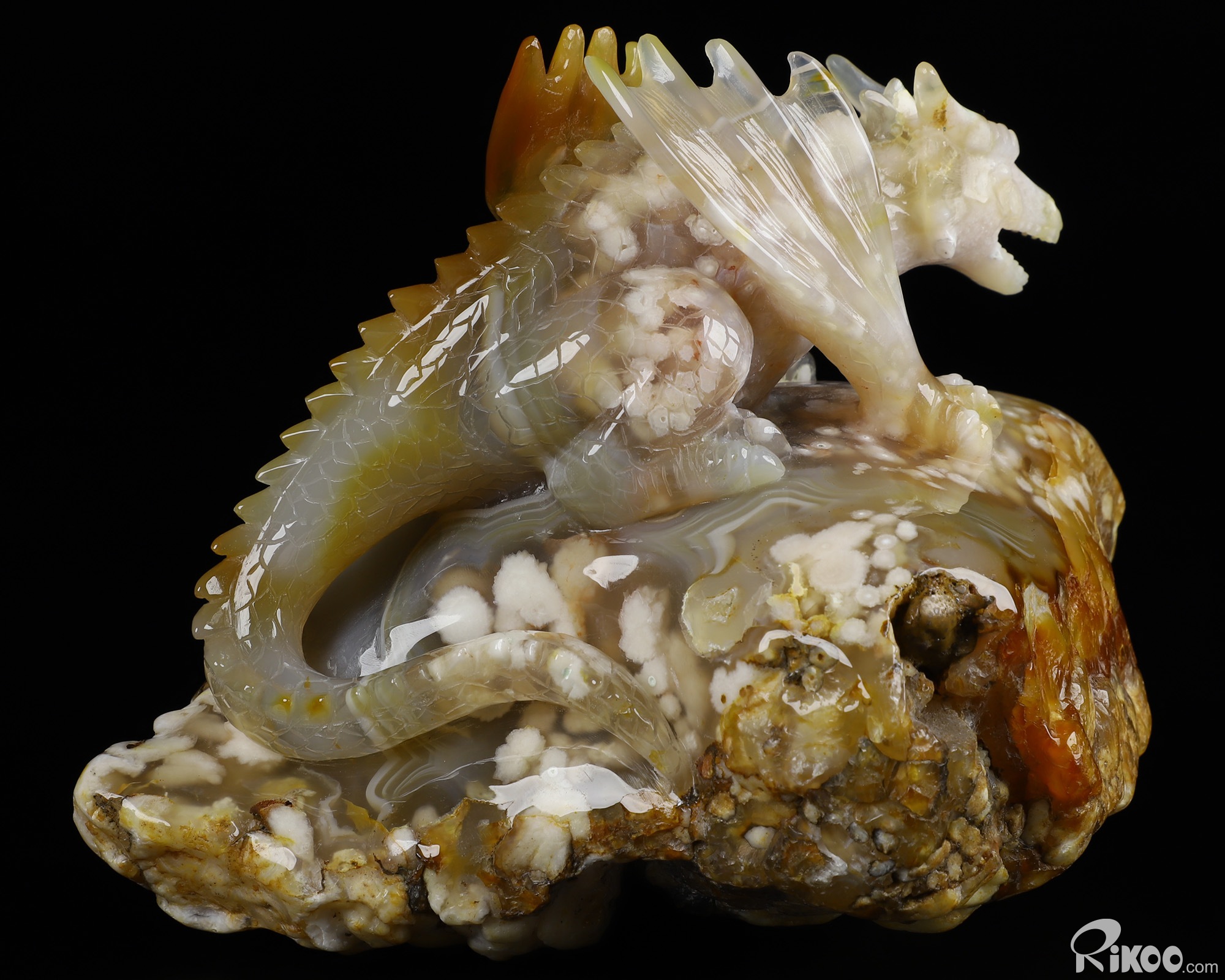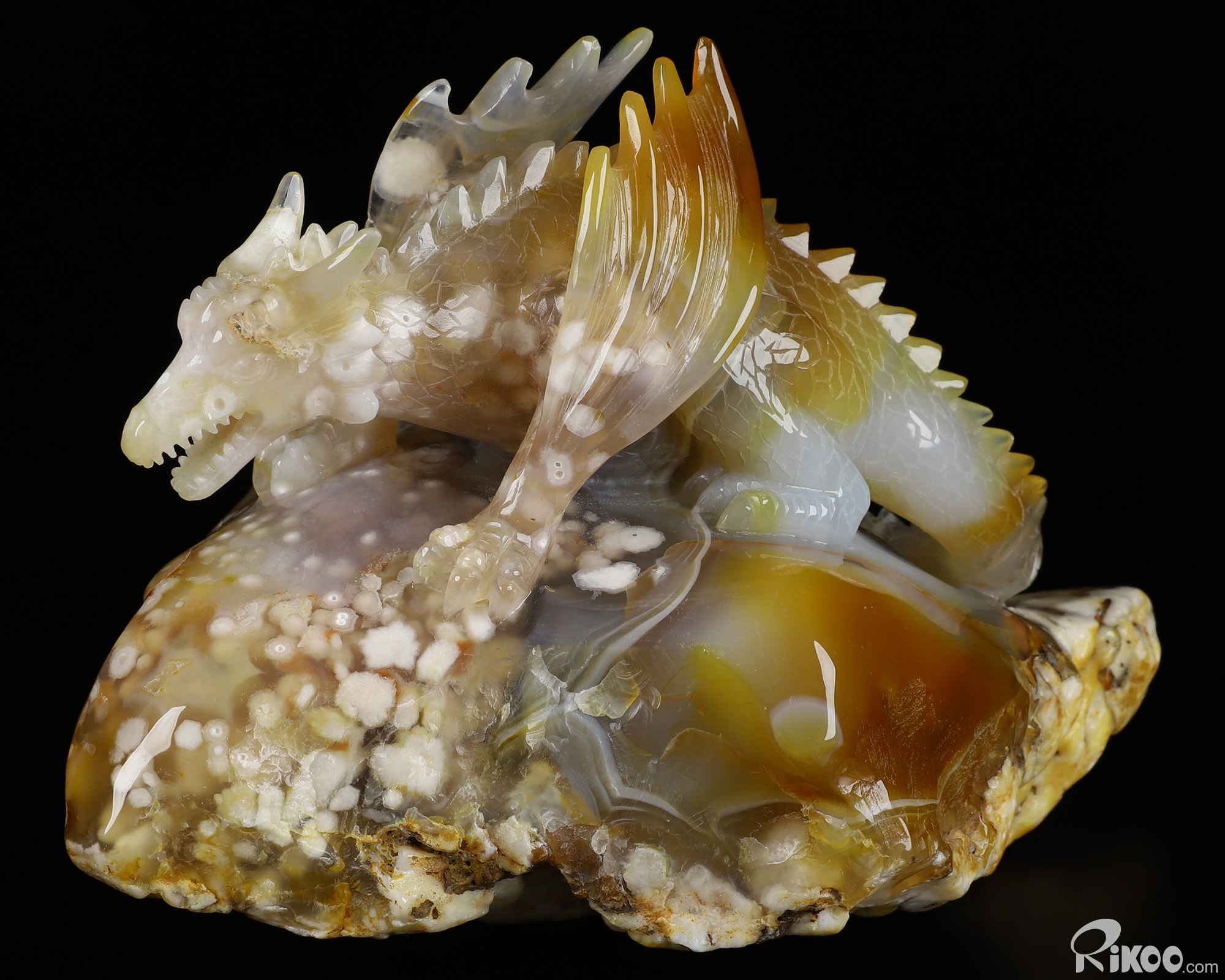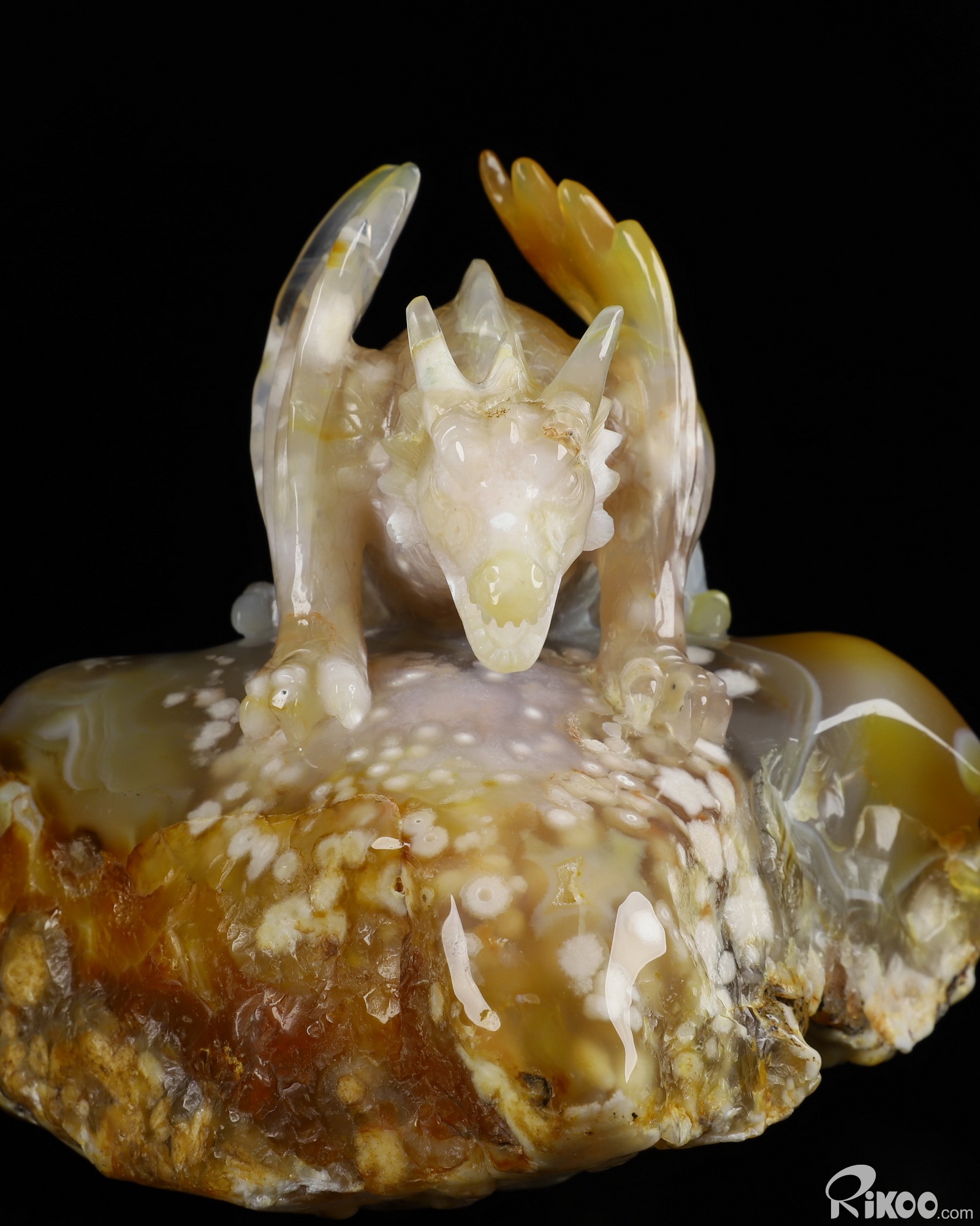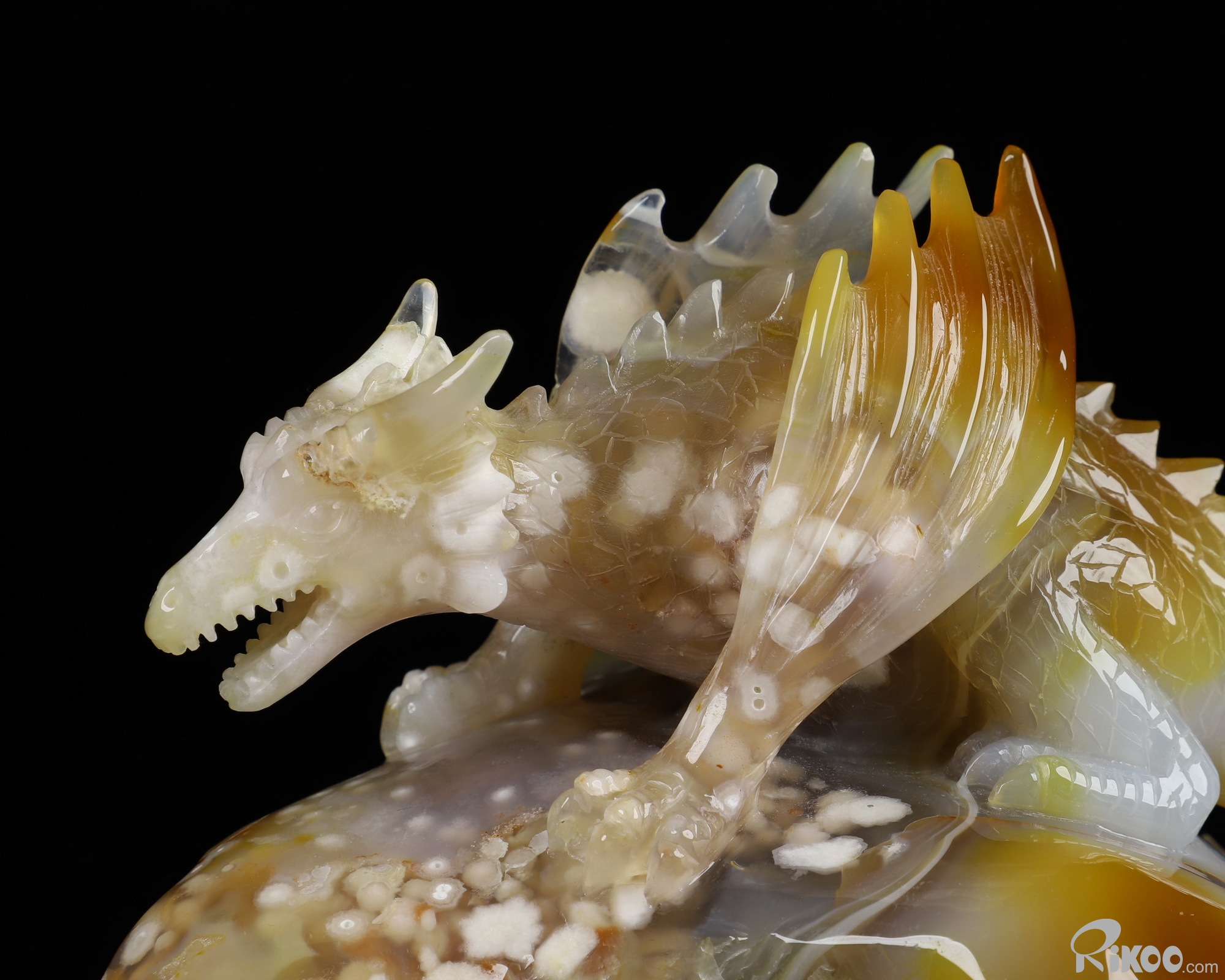 Huge 6.7" Sakura Agate Carved Crystal Dragon Sculpture, Crystal Healing