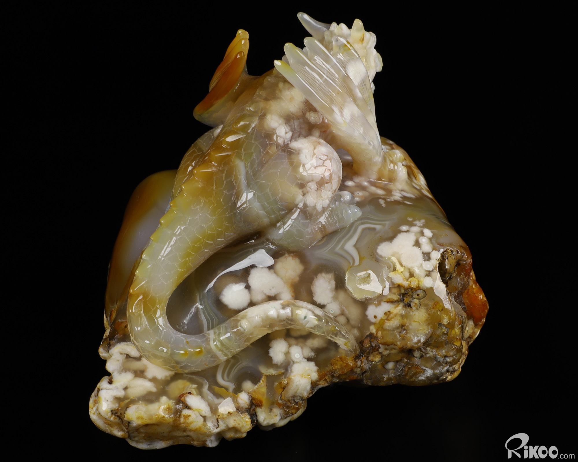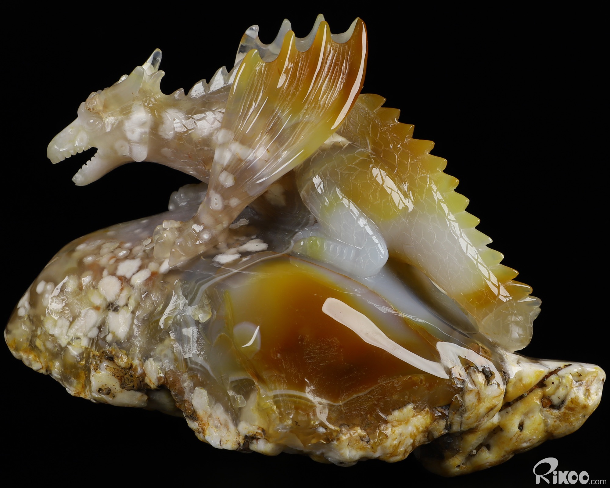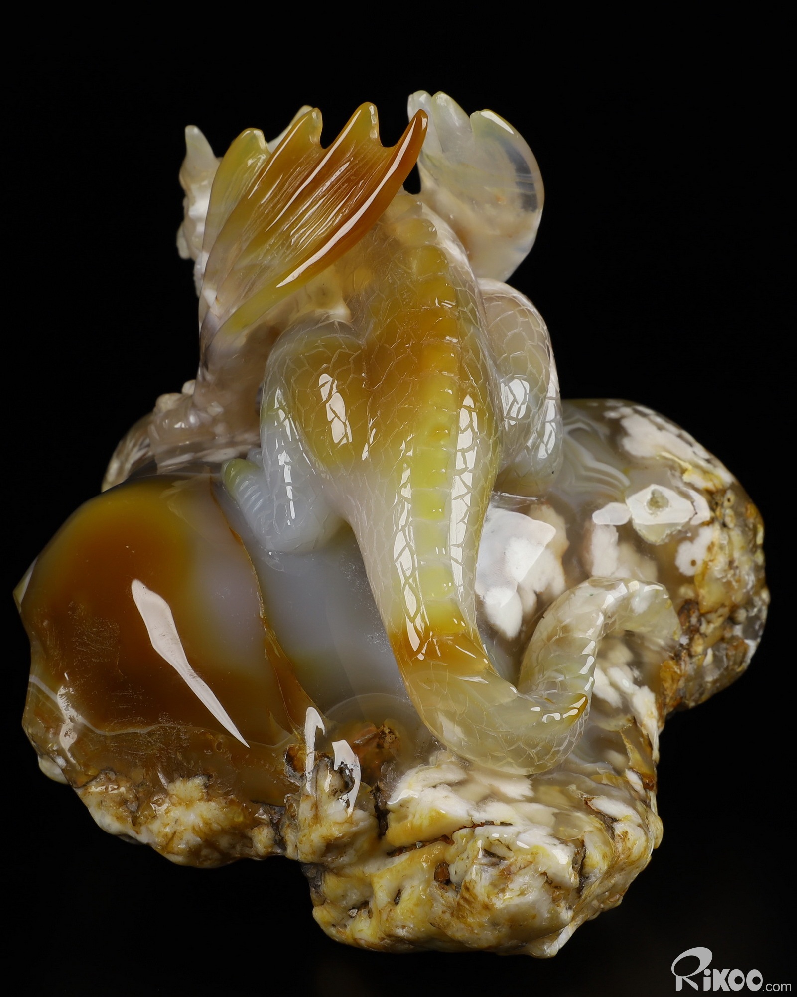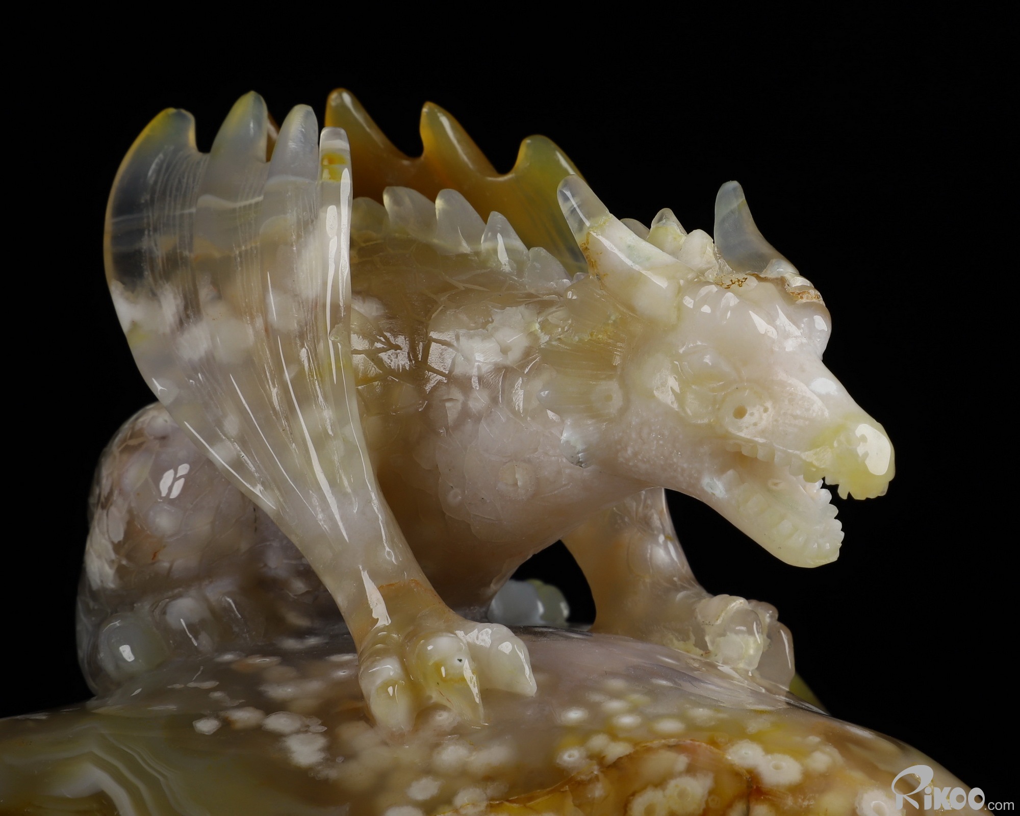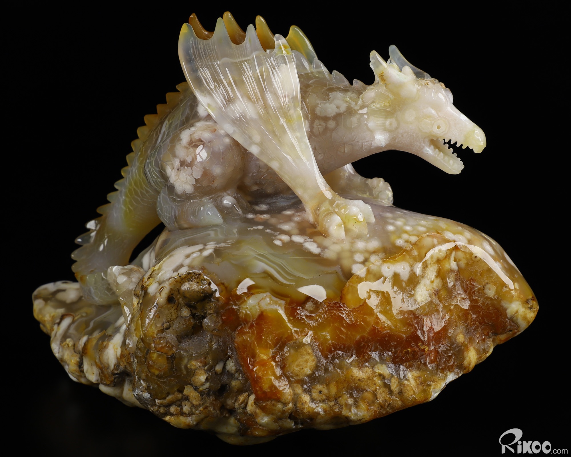 Huge 6.7" Sakura Agate Carved Crystal Dragon Sculpture, Crystal Healing