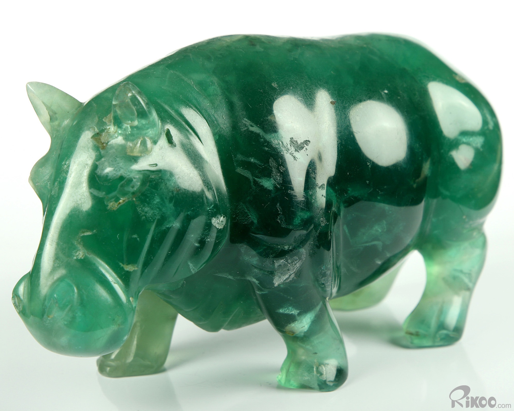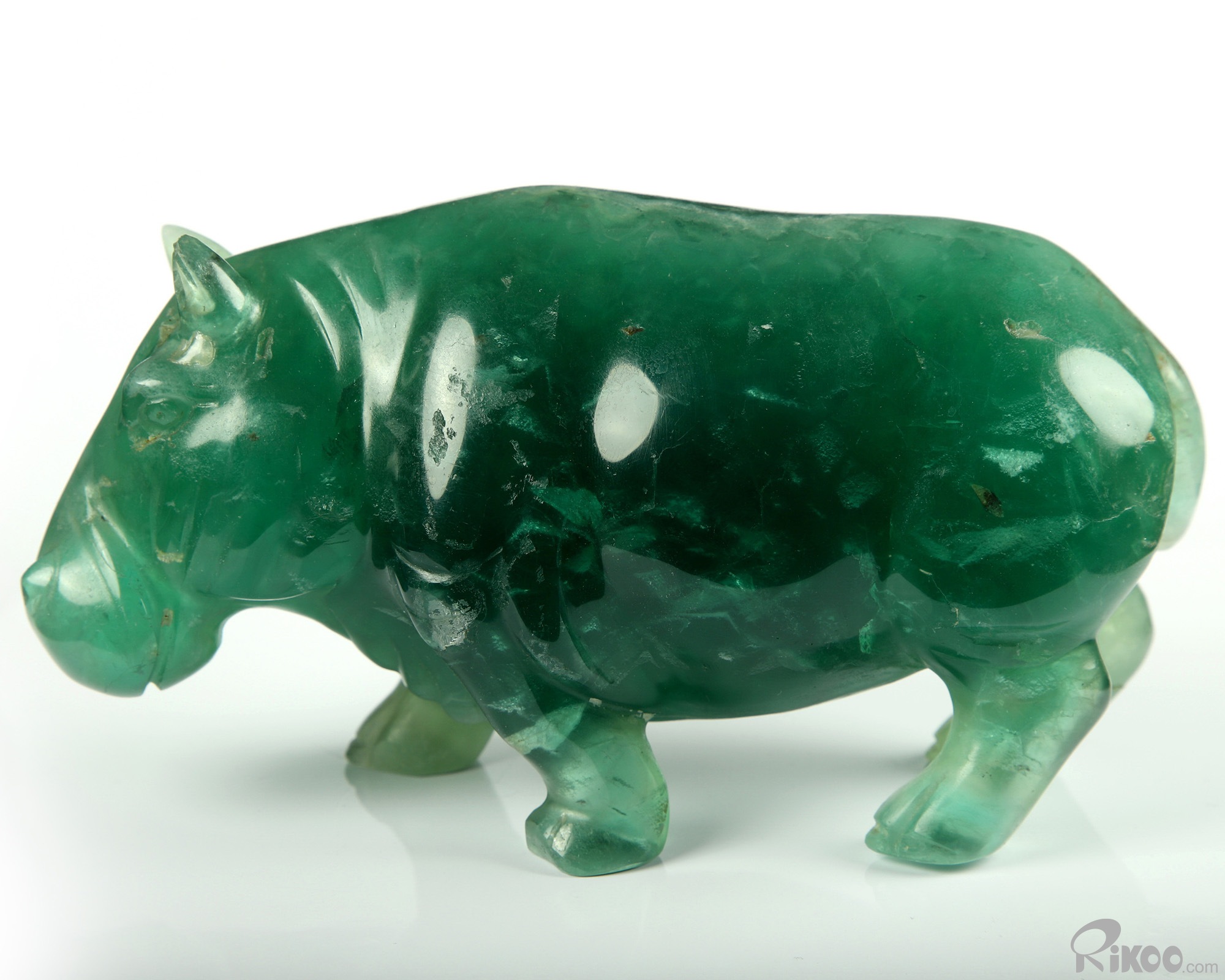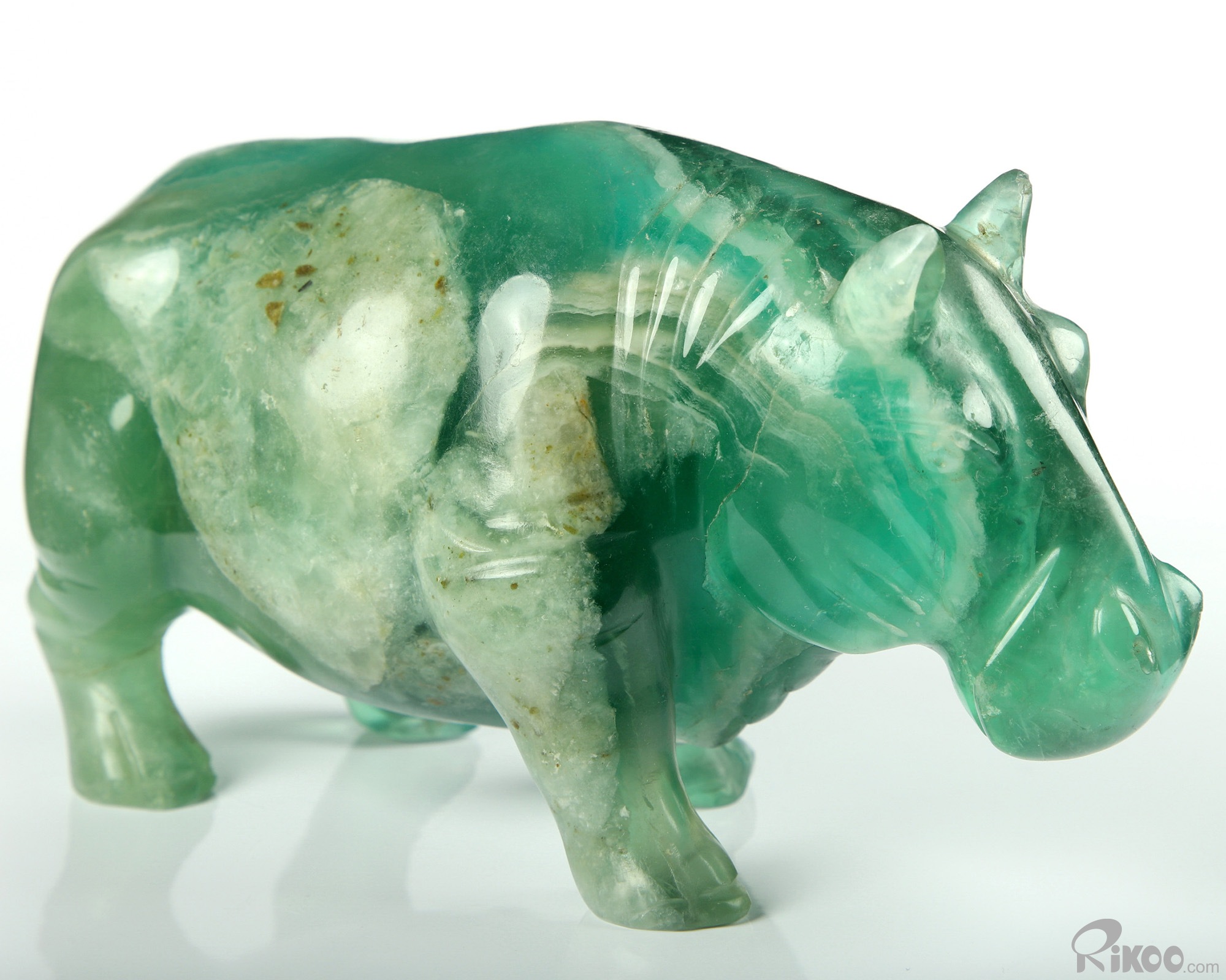 Huge 7.1" Fluorite Carved Crystal Hippopotamus, Crystal Healing