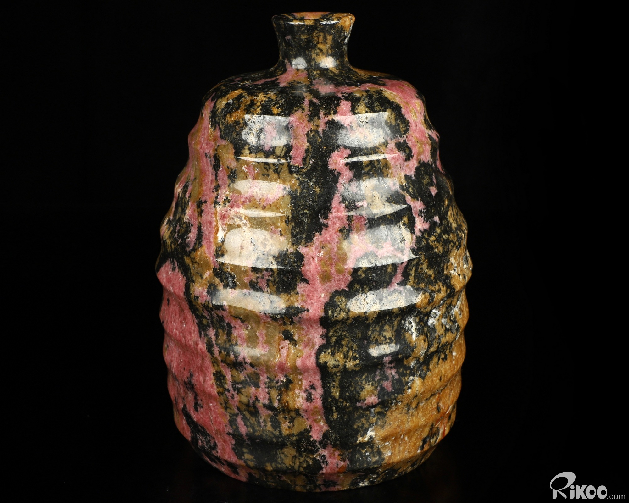 Huge 7.2" Pink & Black Rhodonite Hand Carved Crystal Vase Sculpture, Crystal Healing