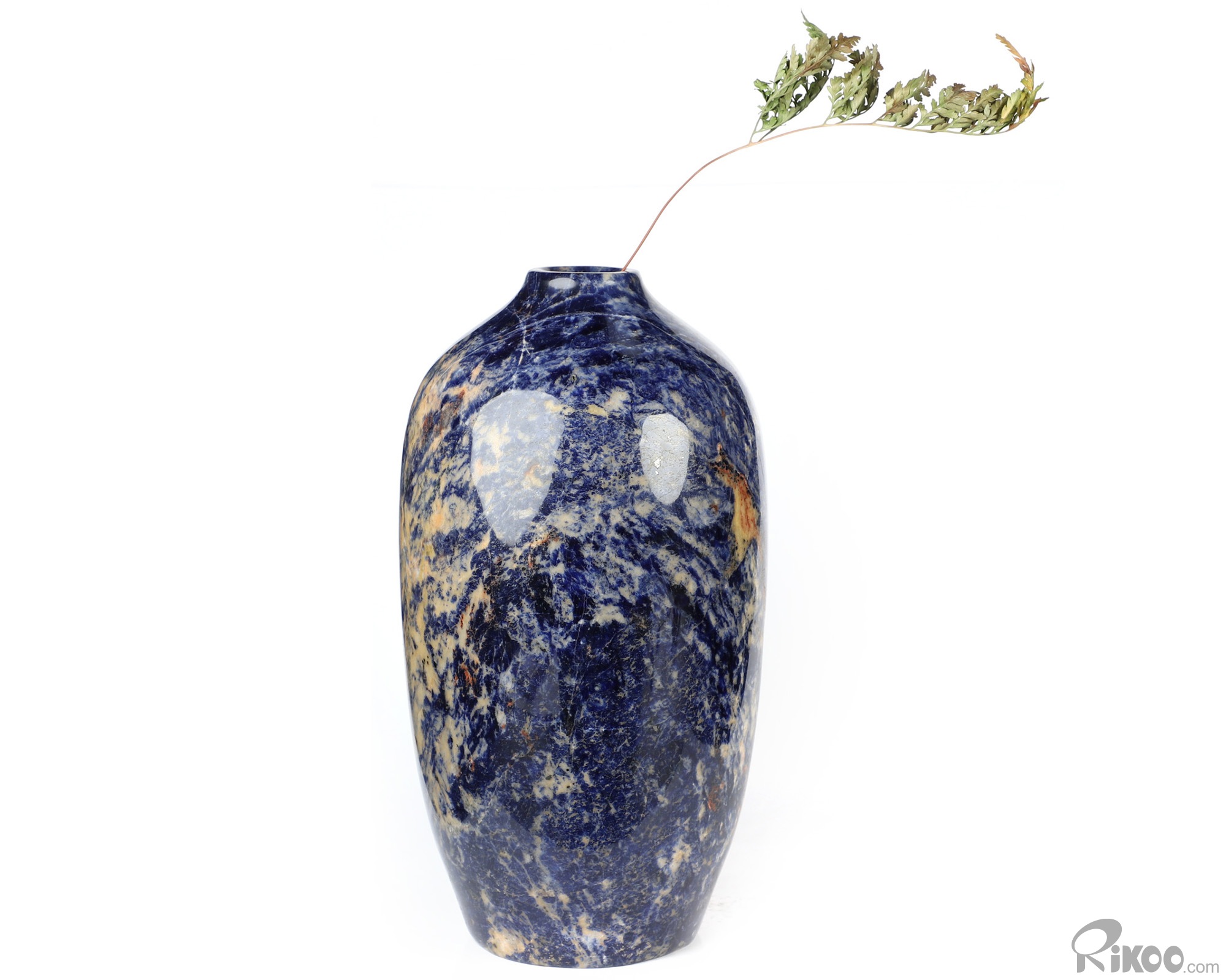 This vase with limited functionality is mainly for display.Sodalite unites logic with intuition and opens spiritual perception, bringing information from the higher mind down to the physical level. This stone stimulates the pineal gland and the third eye and deepens meditation. When in sodalite-enhanced meditation, the mind can be used to understand the circumstances in which you find yourself. This stone instills a drive for truth and an urge toward idealism, making it possible to remain true to yourself and stand up for your beliefs.
