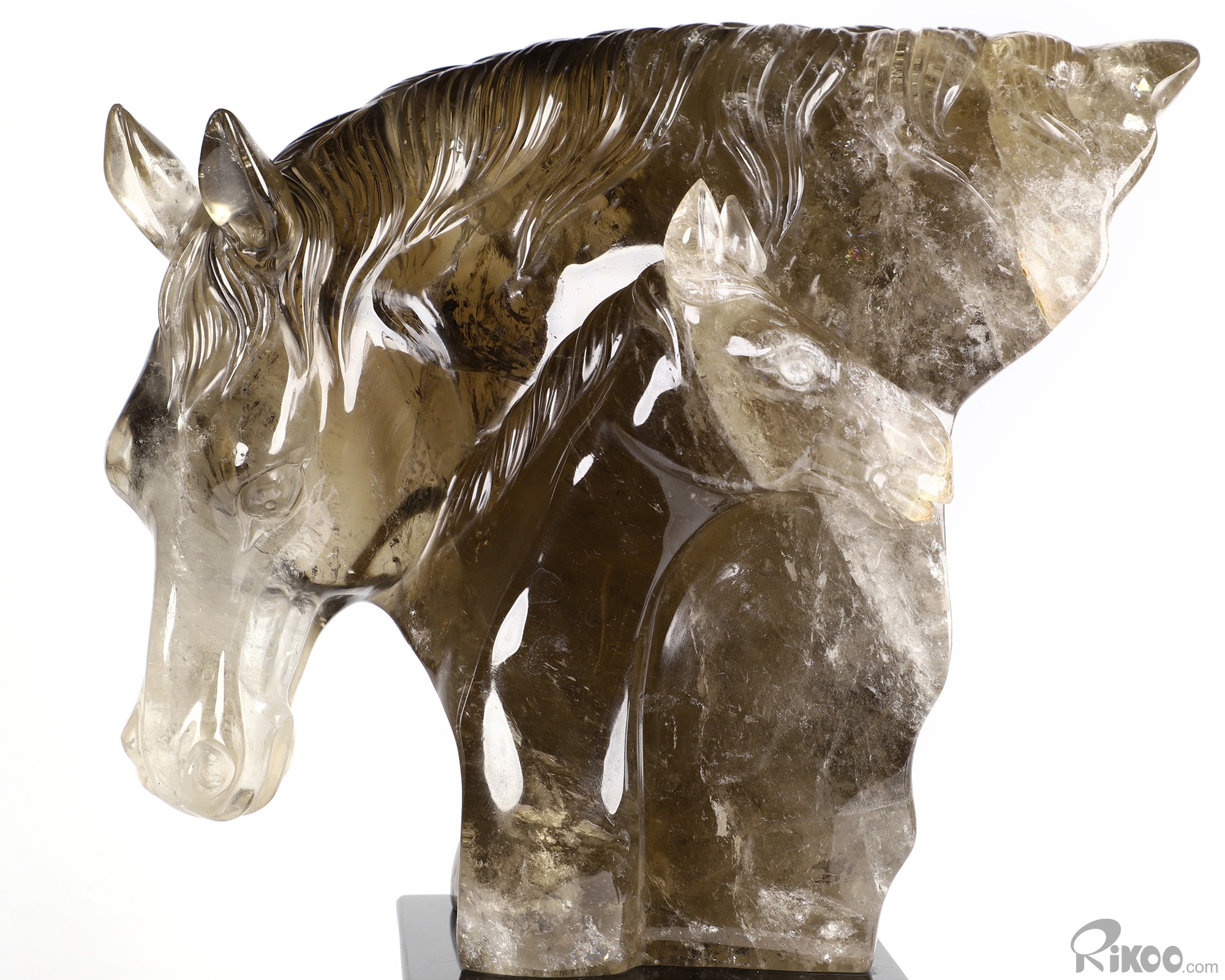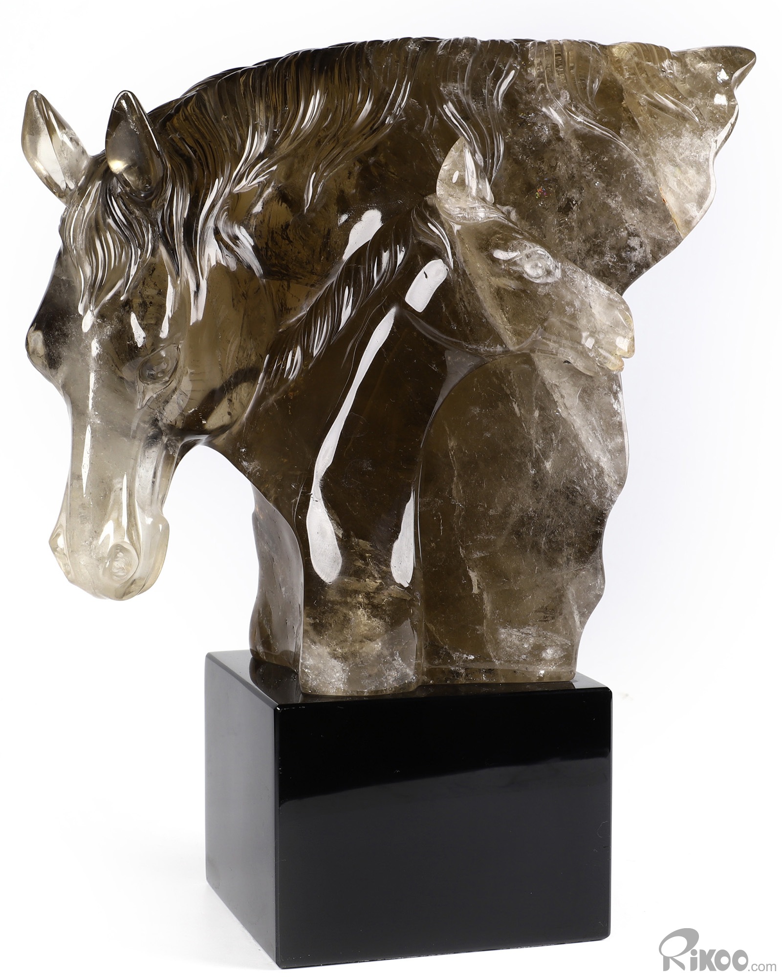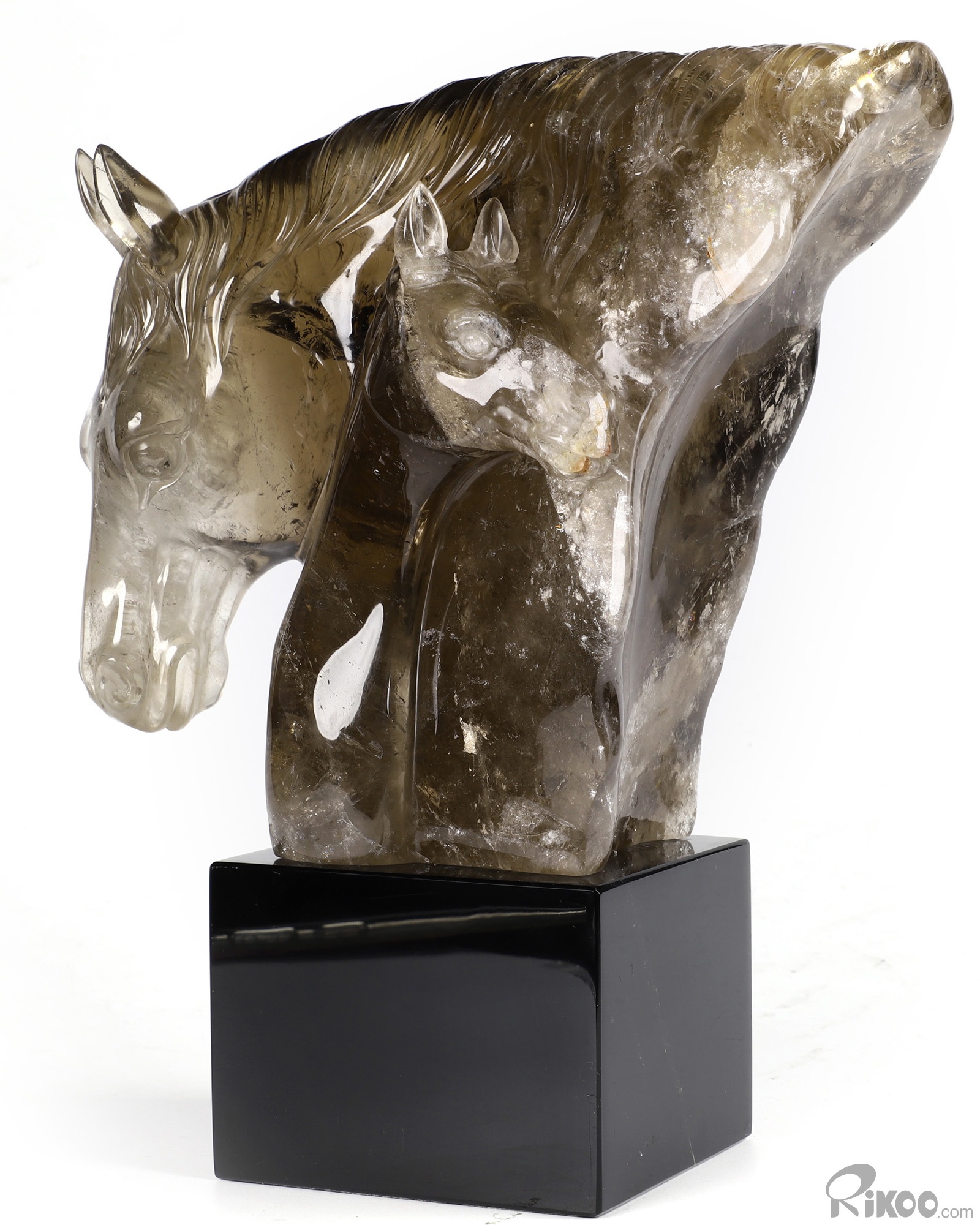 Huge 8.2" SmokeySmoky Quartz Rock Crystal Carved Crystal Horse Heads Sculpture