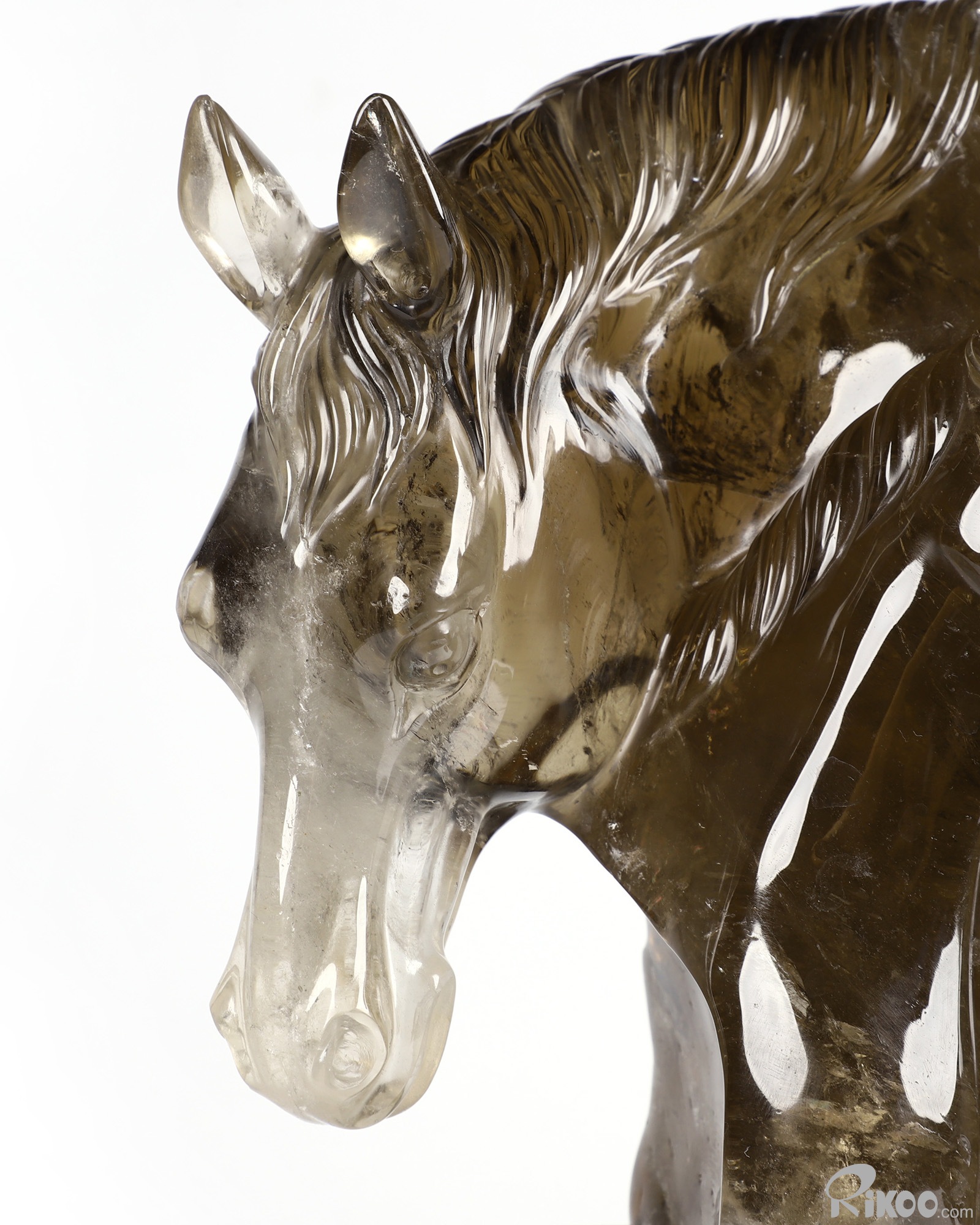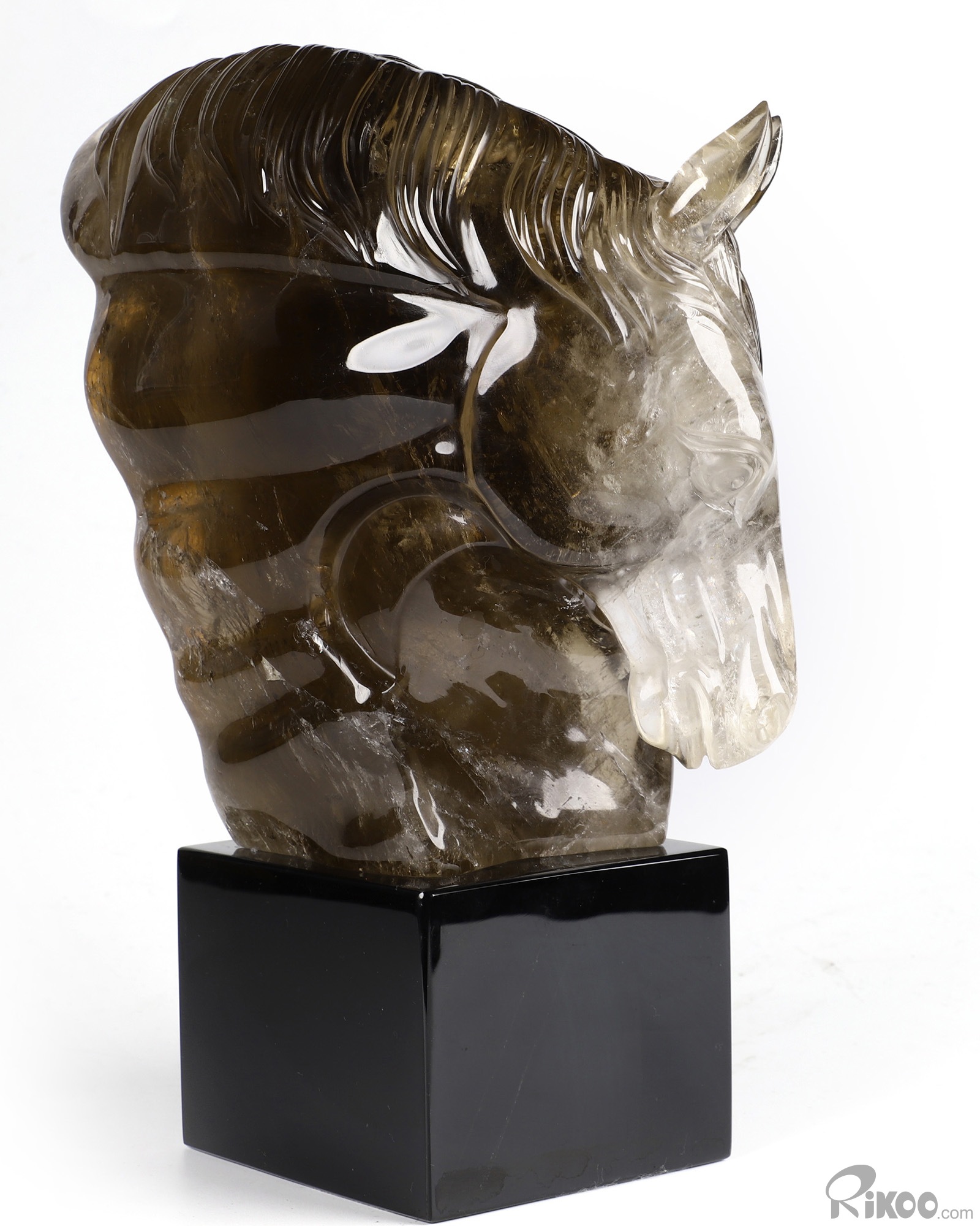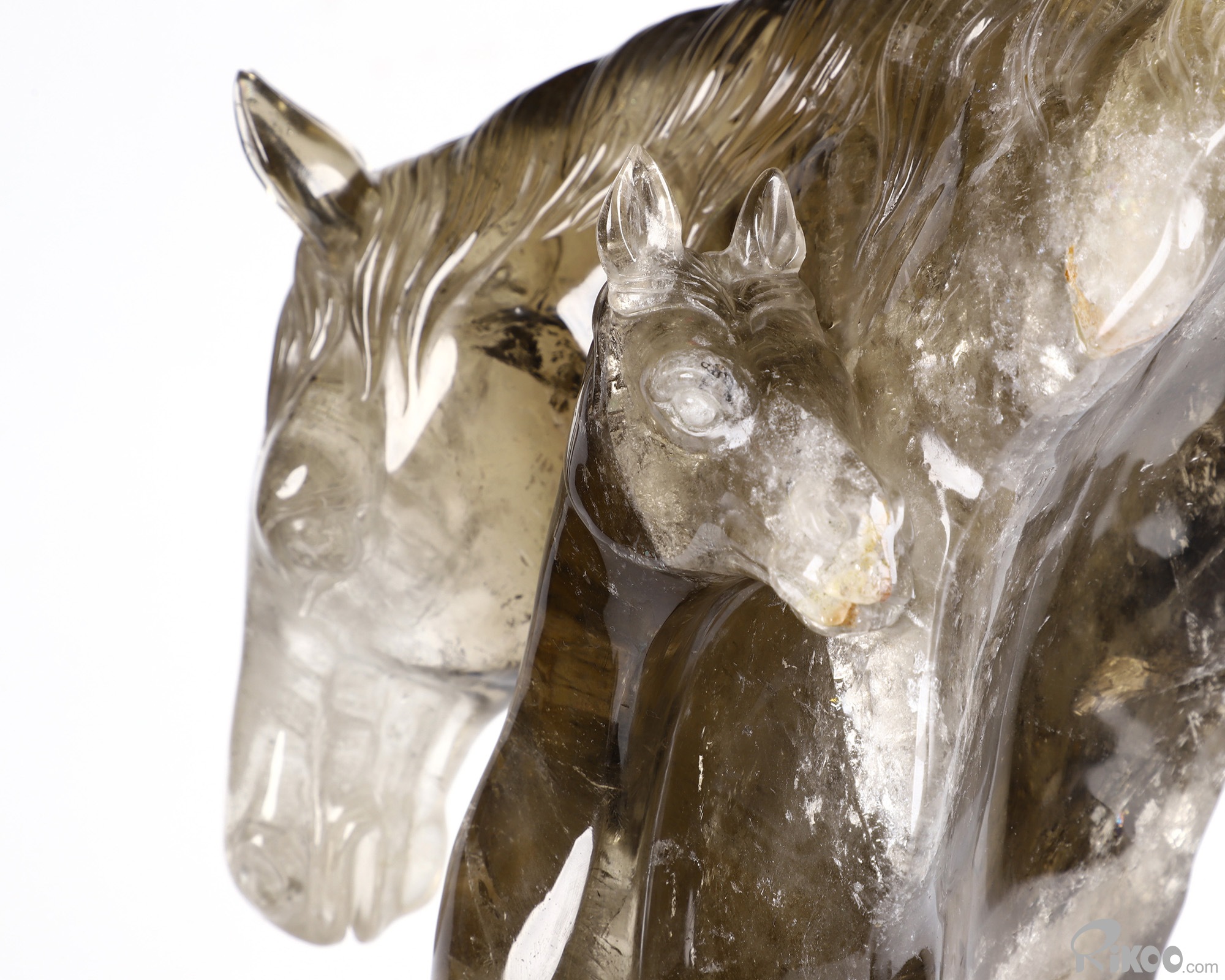 Huge 8.2" SmokeySmoky Quartz Rock Crystal Carved Crystal Horse Heads Sculpture