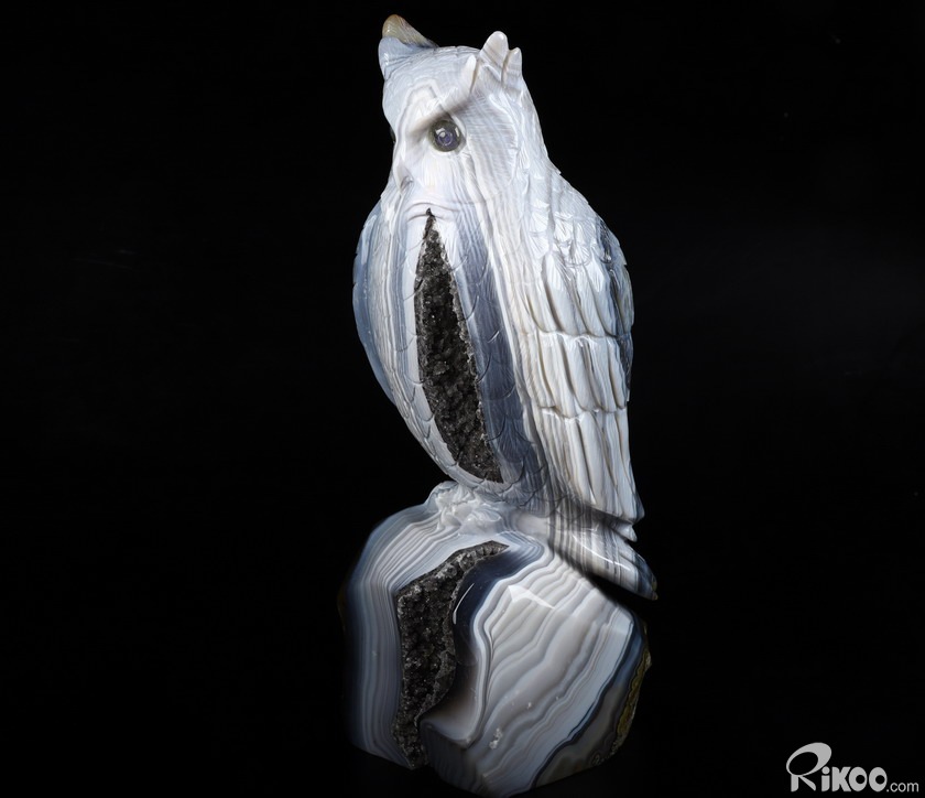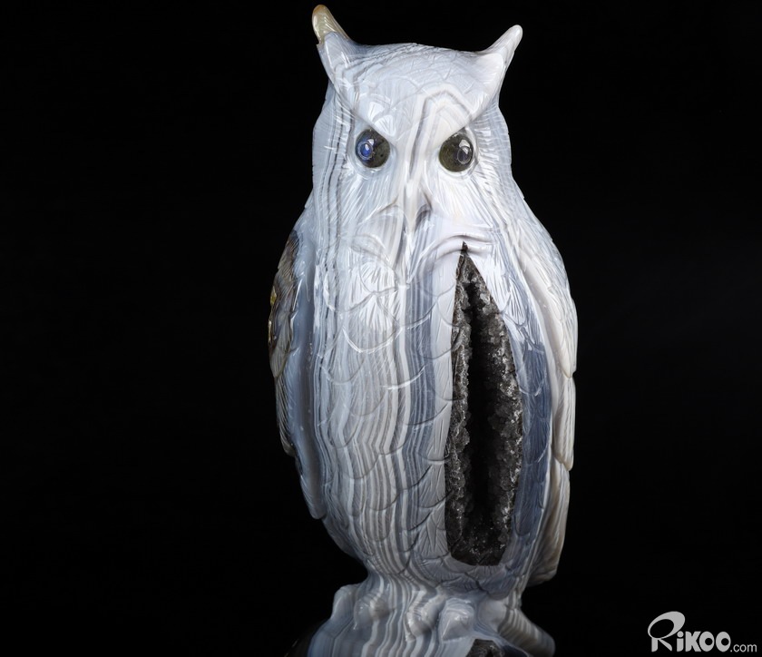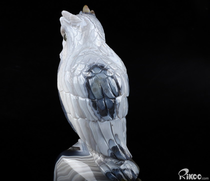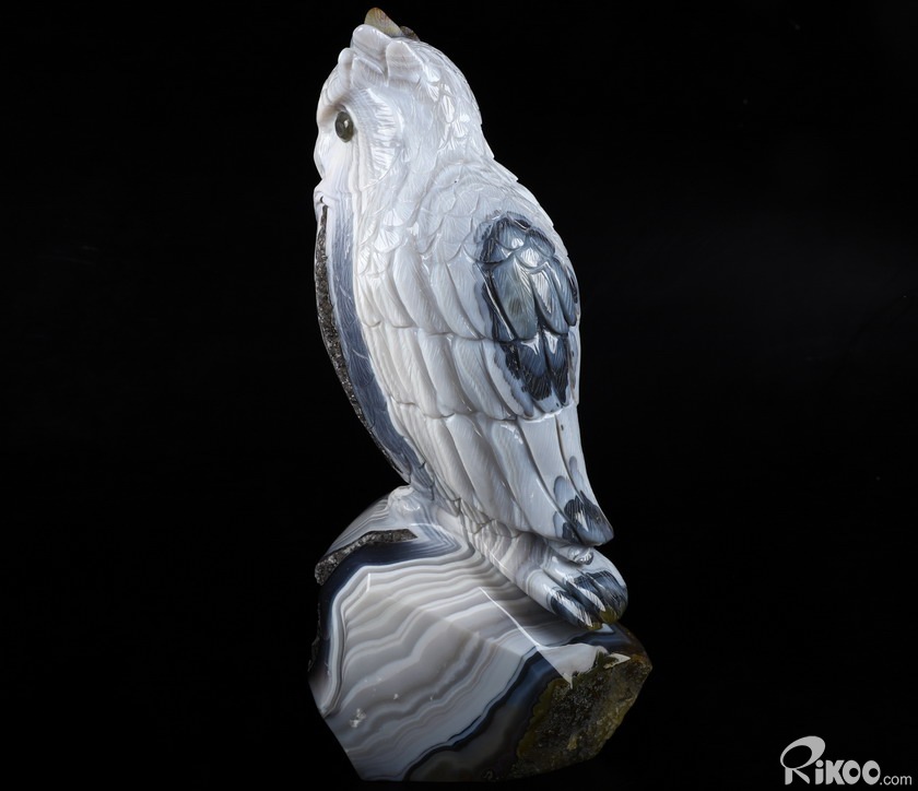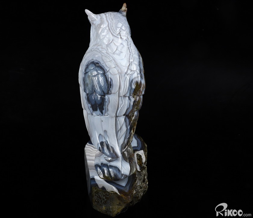 Huge 8.9" Gray & White Agate Carved Crystal Owl Sculpture, Crystal Healing