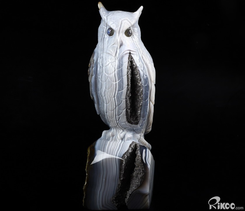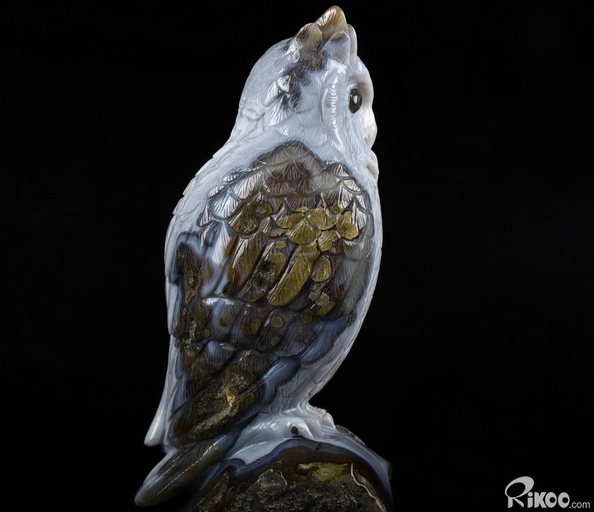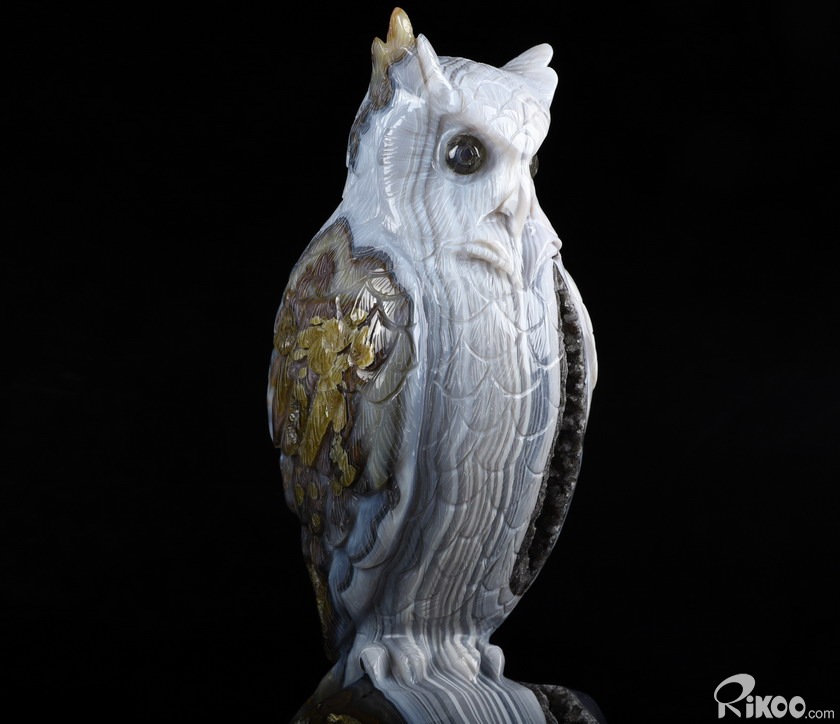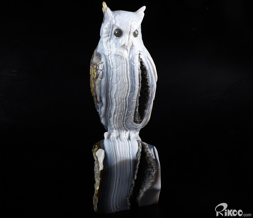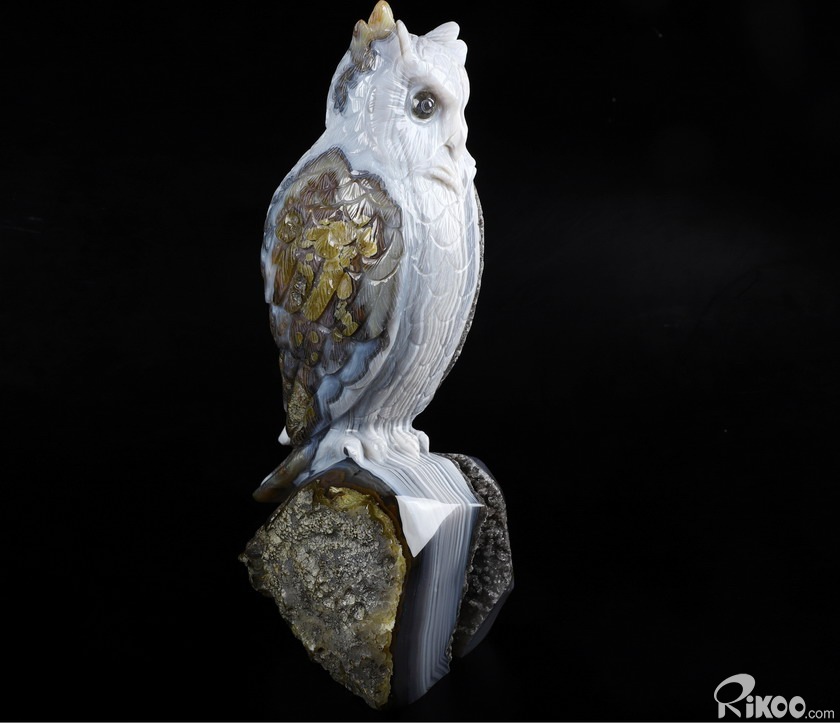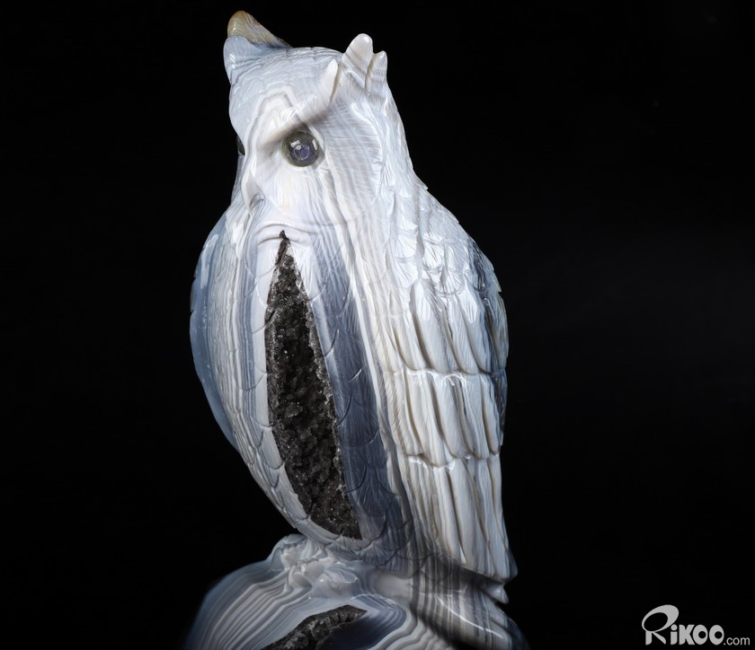 Huge 8.9" Gray & White Agate Carved Crystal Owl Sculpture, Crystal Healing