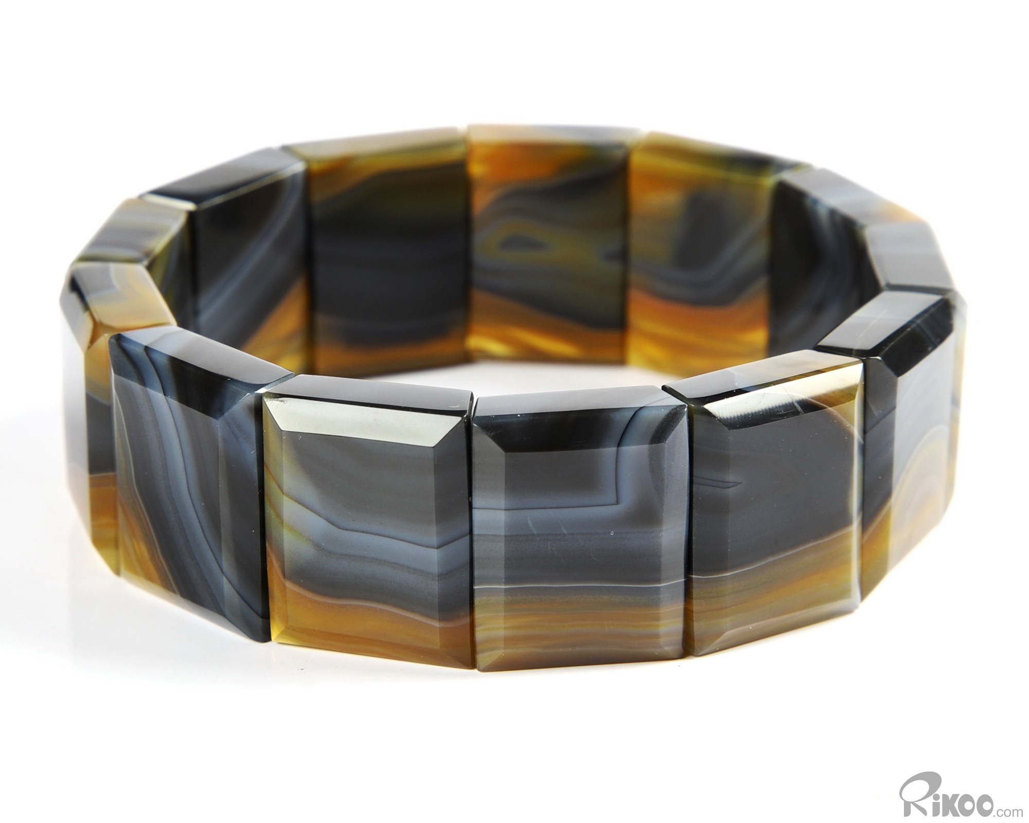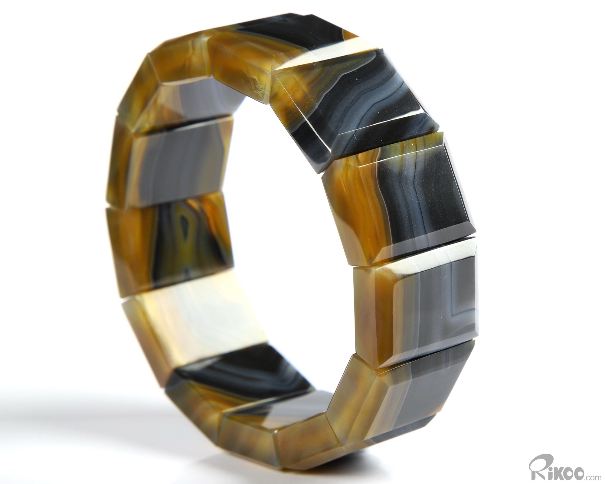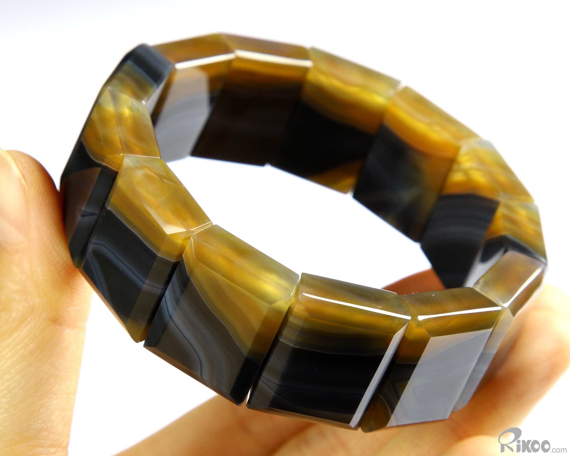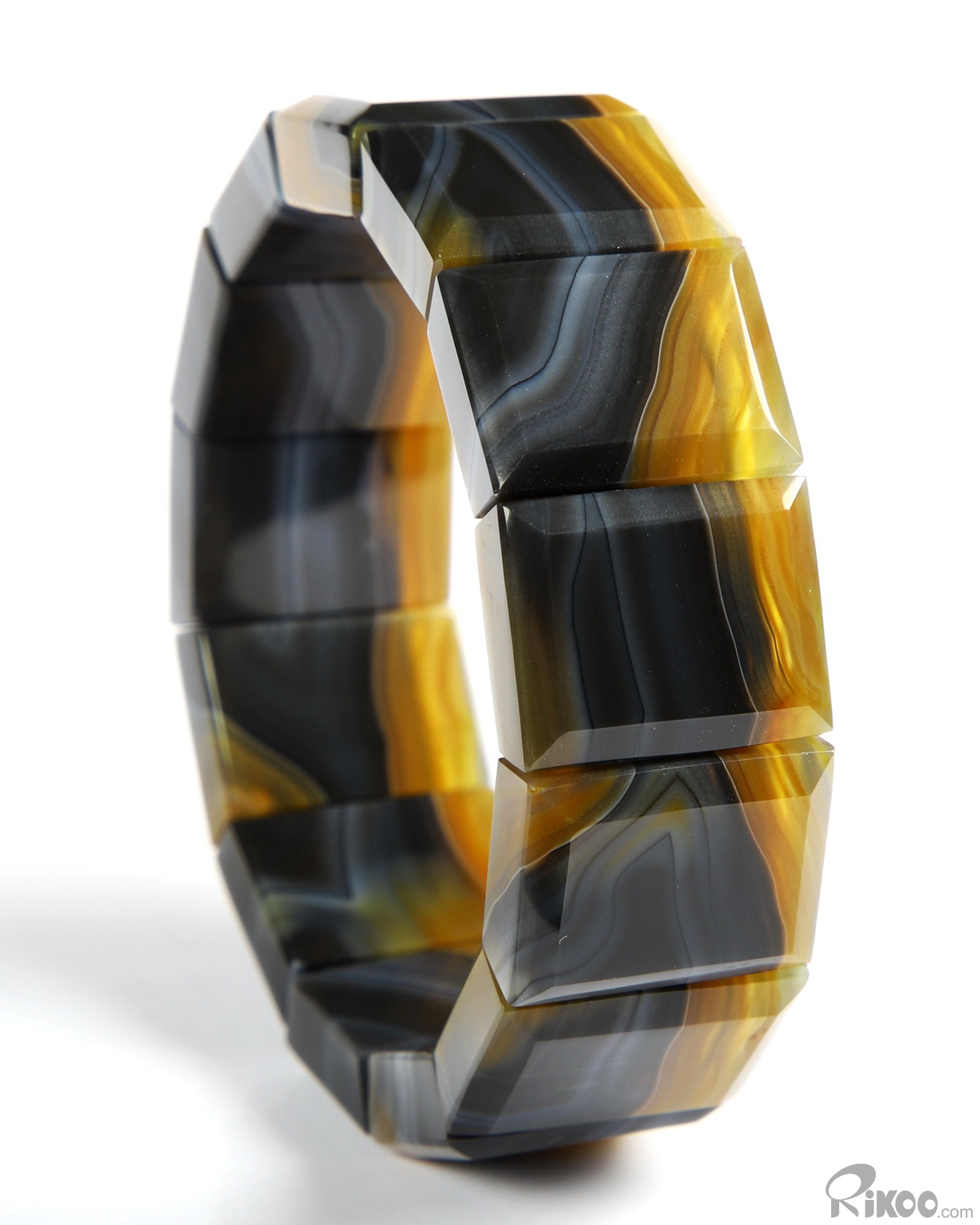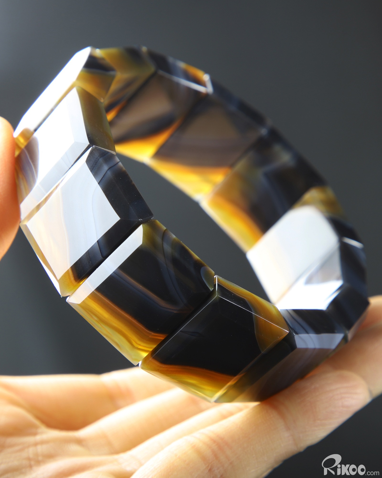 Inside Diameter 60 mm) Gray & White Agate Carved Crystal Bracelet, Crystal Healing