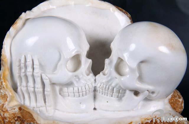 You are looking at a White Chalcedony skull. The skull is 6.5 inches long from front to back.