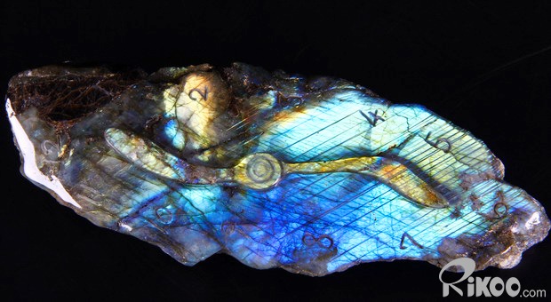 You are looking at a Labradorite skull. The skull is 6.4 inches long from front to back.