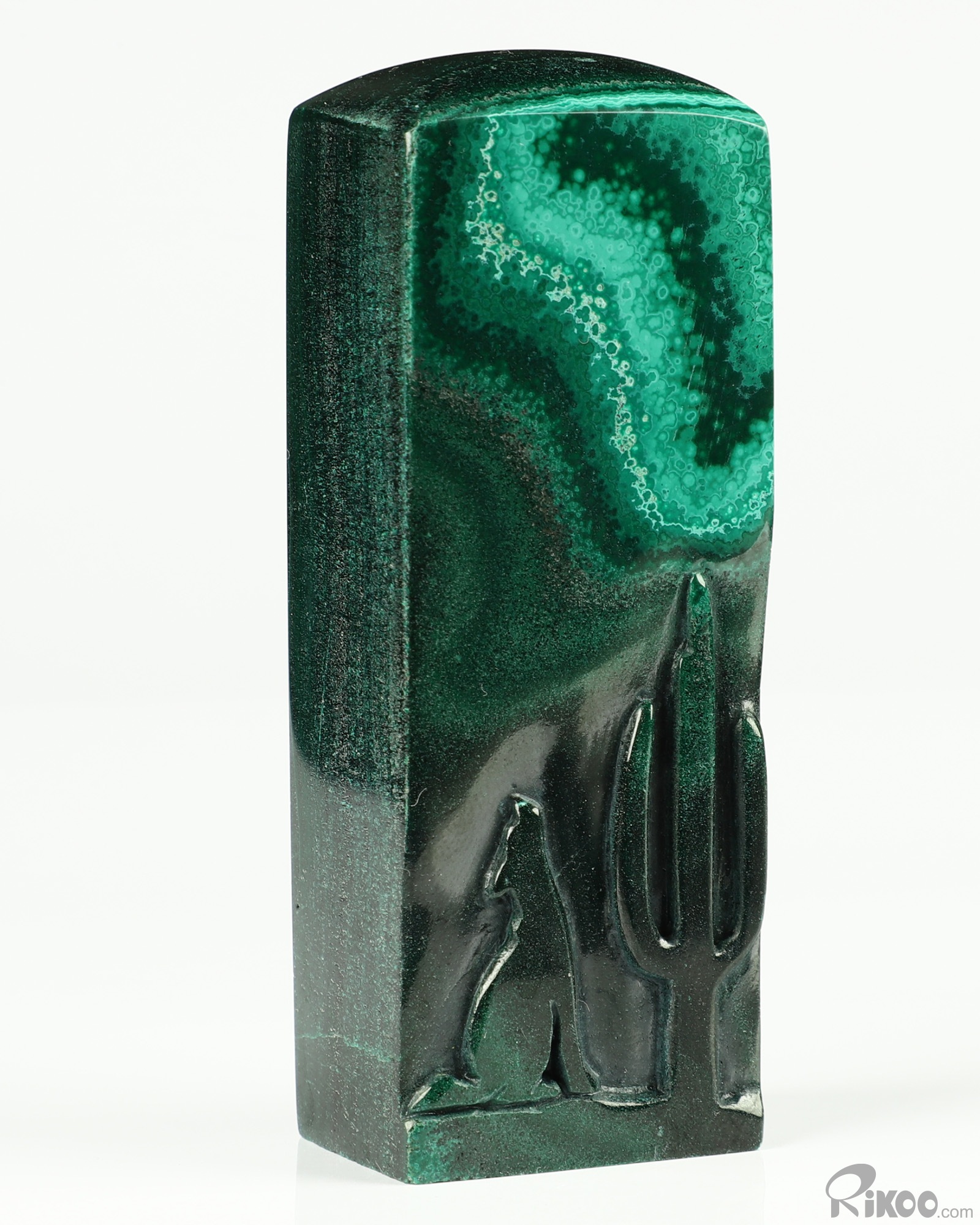 3.0" Malachite Carved Crystal Wolf Seal, Crystal Healing