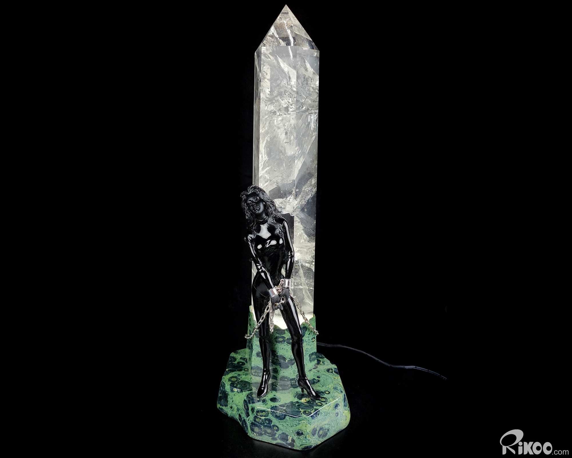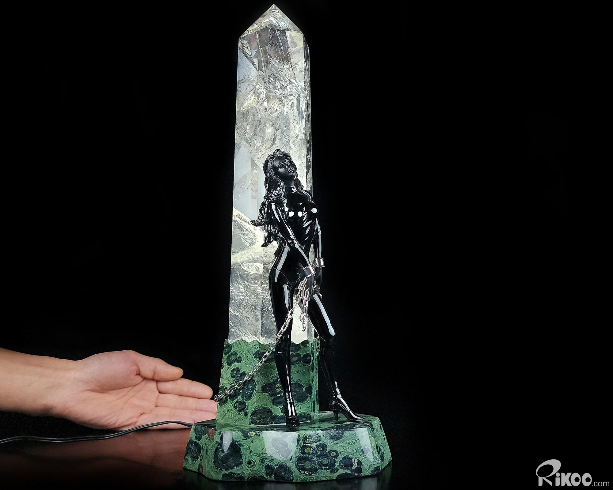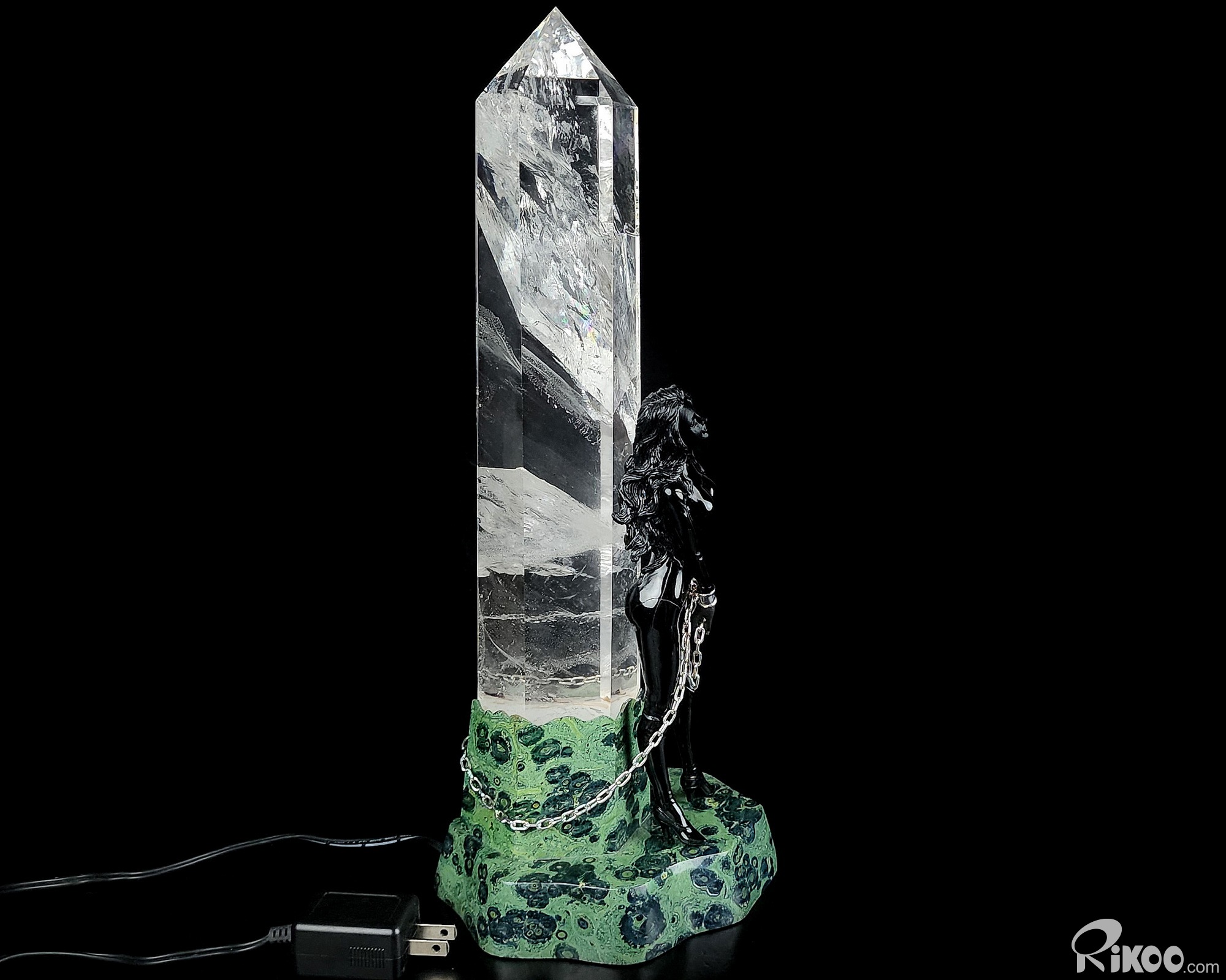 Museum Quality! The Black Widow 15.1" Black Obsidian, Quartz Rock Crystal, Kambaba Jasper Carved Light Lamp Sculpture, Crystal Healing