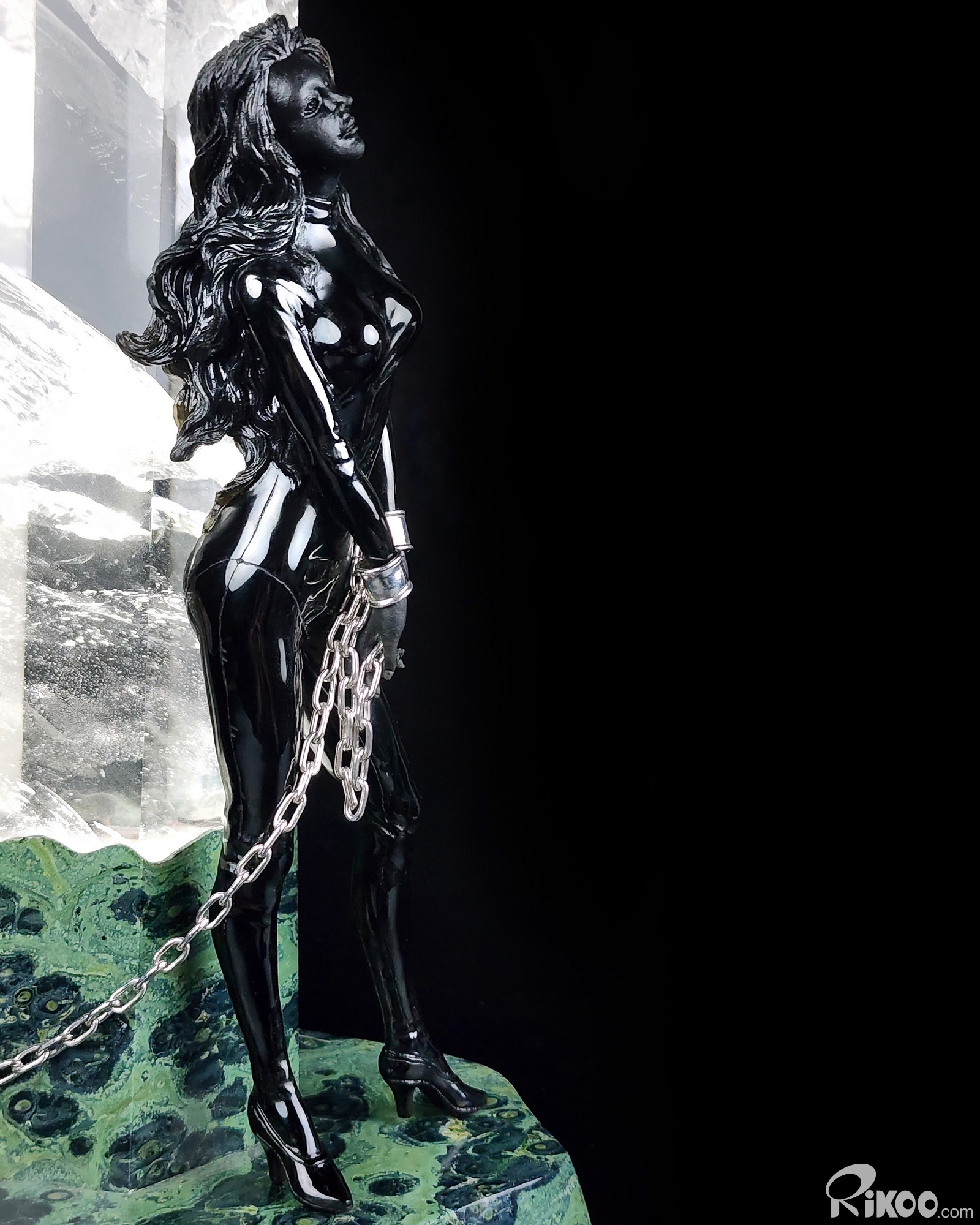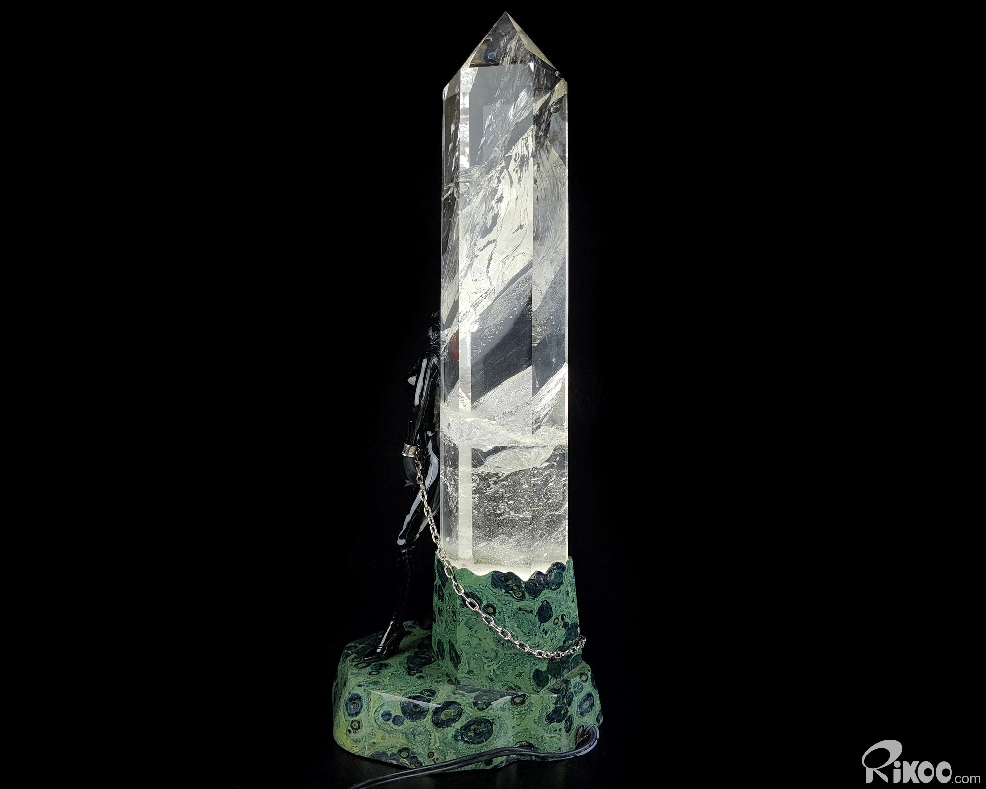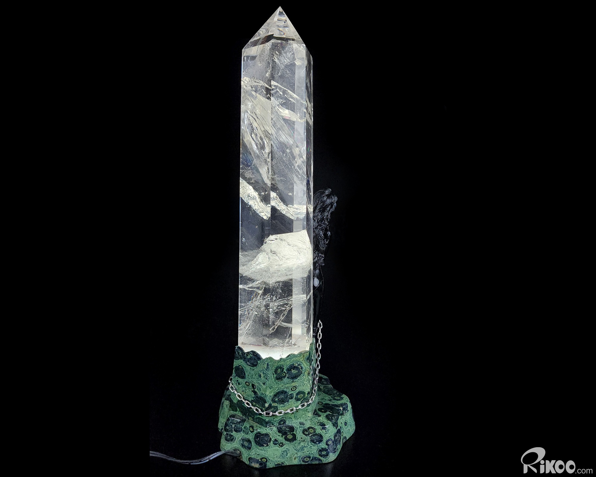 Museum Quality! The Black Widow 15.1" Black Obsidian, Quartz Rock Crystal, Kambaba Jasper Carved Light Lamp Sculpture, Crystal Healing