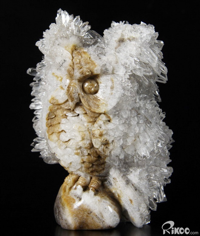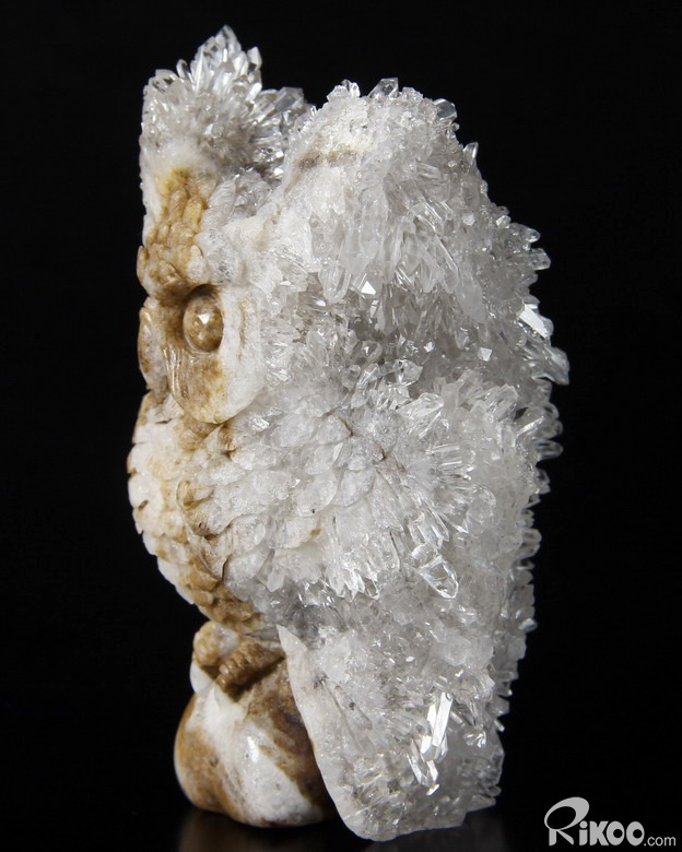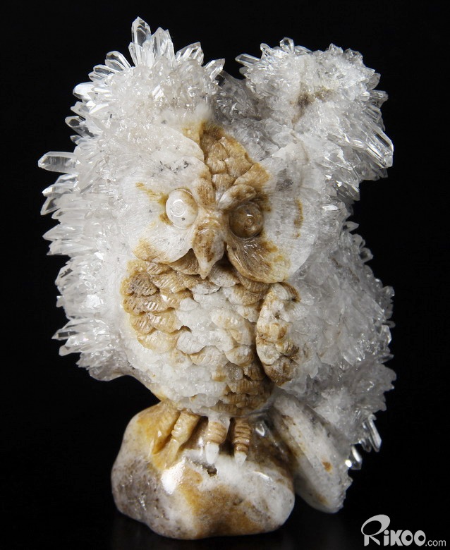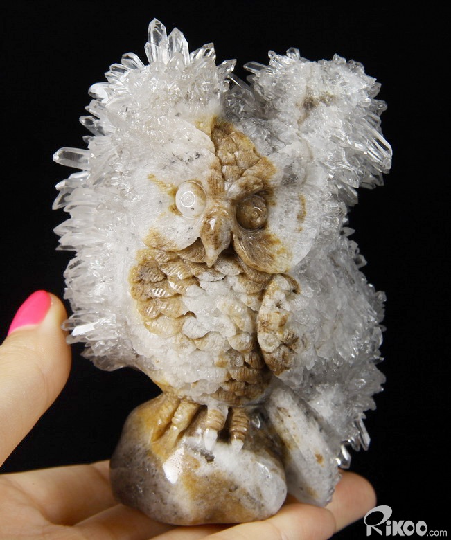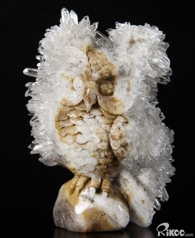 NICE HUGE 4.2" Quartz Druse Carved Crystal Owl Sculpture
