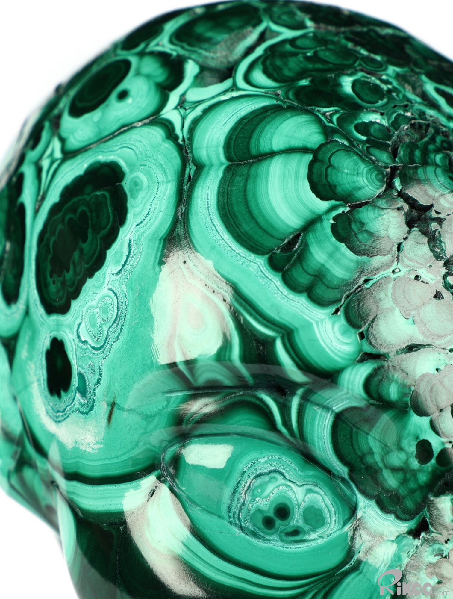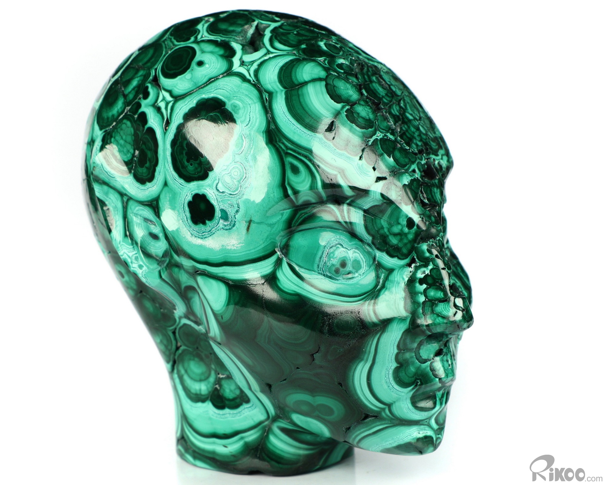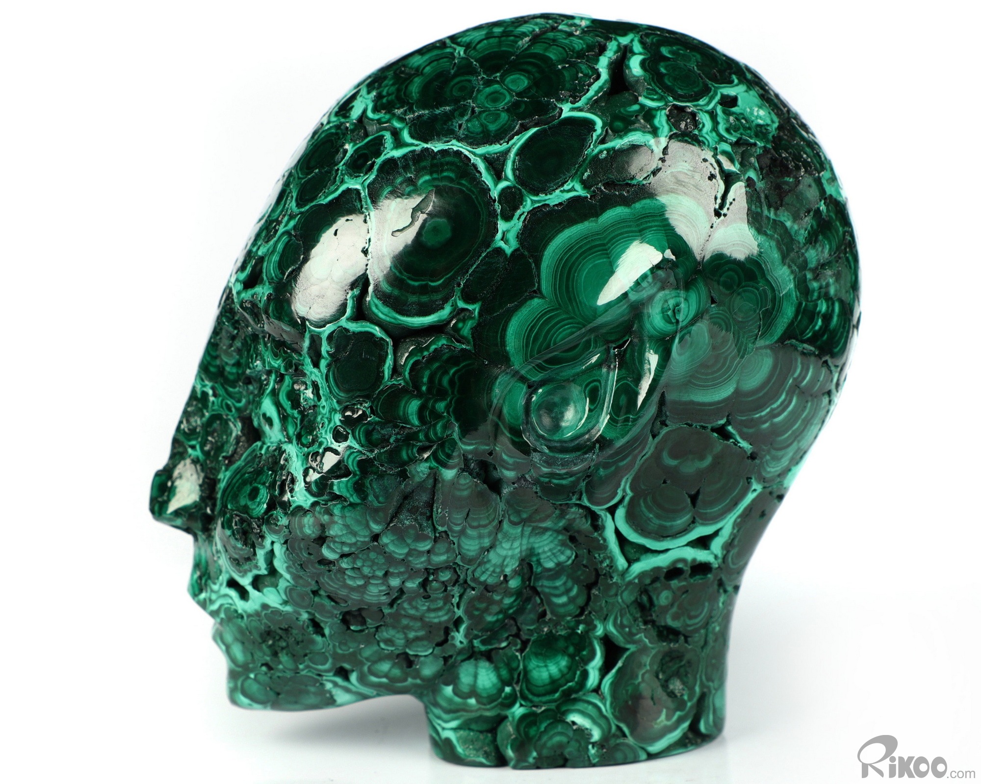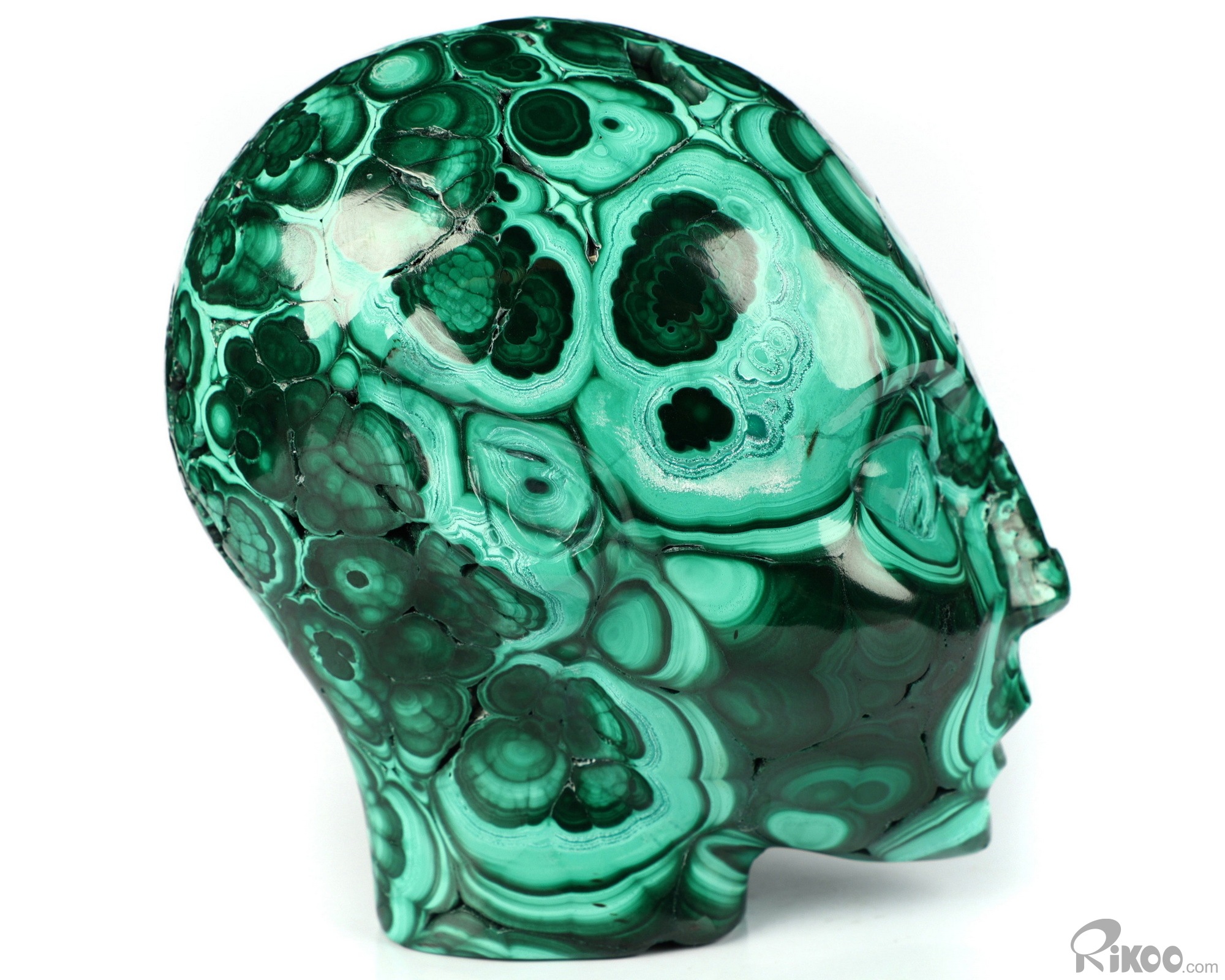 - Steady pulsing electromagnetic energy. (High copper content) Malachite and azurite are the same chemical, practically, Copper Carbonate. The only difference is the ordering of the elements in the molecule. On brow: Stimulates physical and psychic vision, concentration. For heart and solar plexus centers: Stomach, liver, kidney stones, lungs, immune system, radiation, MS, circulation. Powerful healer with azurite or chrysocolla for healing: Releases and draws out pain, inflammation, depression, anger; heals blocks. Protects well by powerfully cleaning the auric field, rapidly absorbing undesirable energies, including: computer, TV, and other radiation, etc. Place in the 4 corners of a room to cleanse carpet toxins/gases. Clean very frequently -- daily if possible! . Often variegated and is one of the basic ores of Copper. Should be used with extreme care because it can amplify negative qualities. Caution must always be used when wearing it as jewelry. However, Malachite also magnifies the positive, and so it is useful if your mood is definitely on the upswing. It should not be used in healing without careful consideration of who is doing the healing. It is useful for relaxation and neurological disorders as well as tissue regeneration. It is said to awaken healing qualities and useful in fighting mental illnesses. Said to stimulate the optic nerve, help the pancreas, spleen, parathyroid, and help dyslexia. People living near nuclear power plants should keep pieces of Malachite in their homes, since Malachite may expel plutonium. A warning: Malachite in raw form has dust particles that are highly toxic and their ingestion should be avoided.