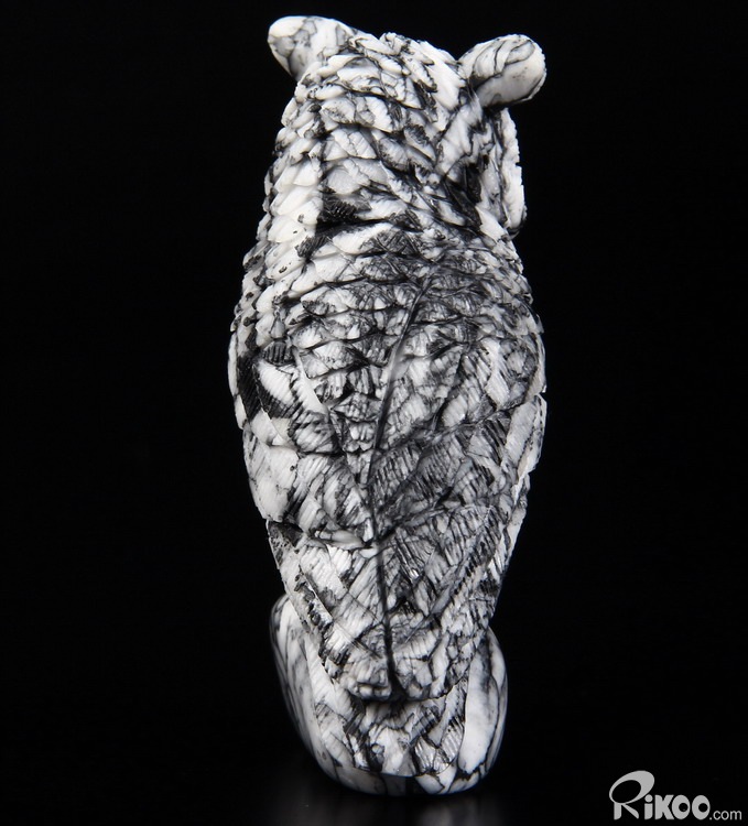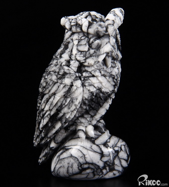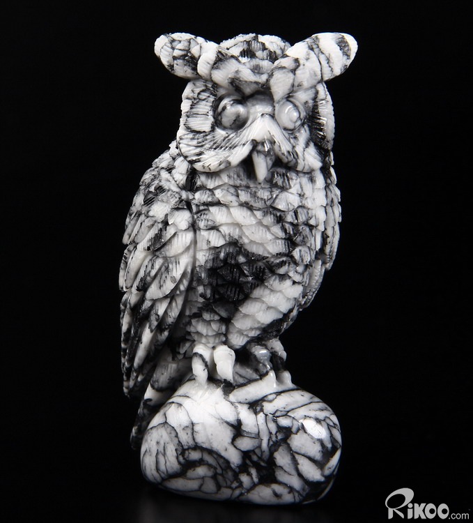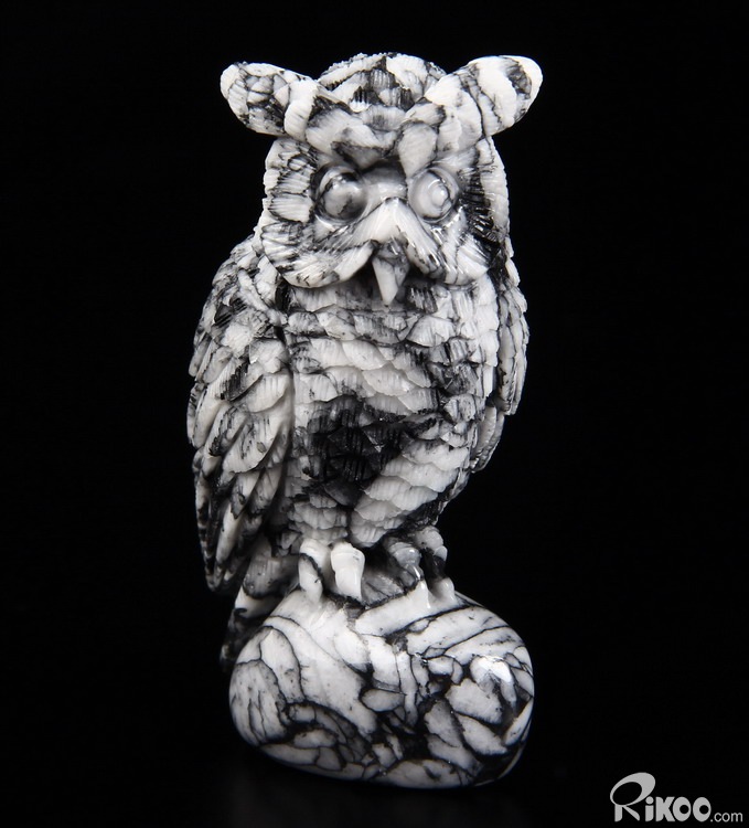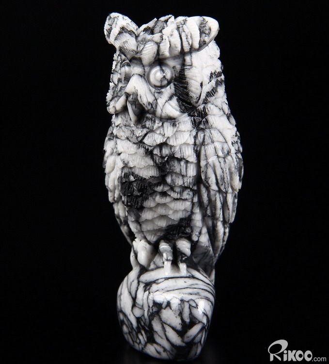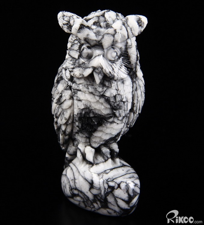 Nice 3.1" Pinolite Carved Crystal Owl Sculpture