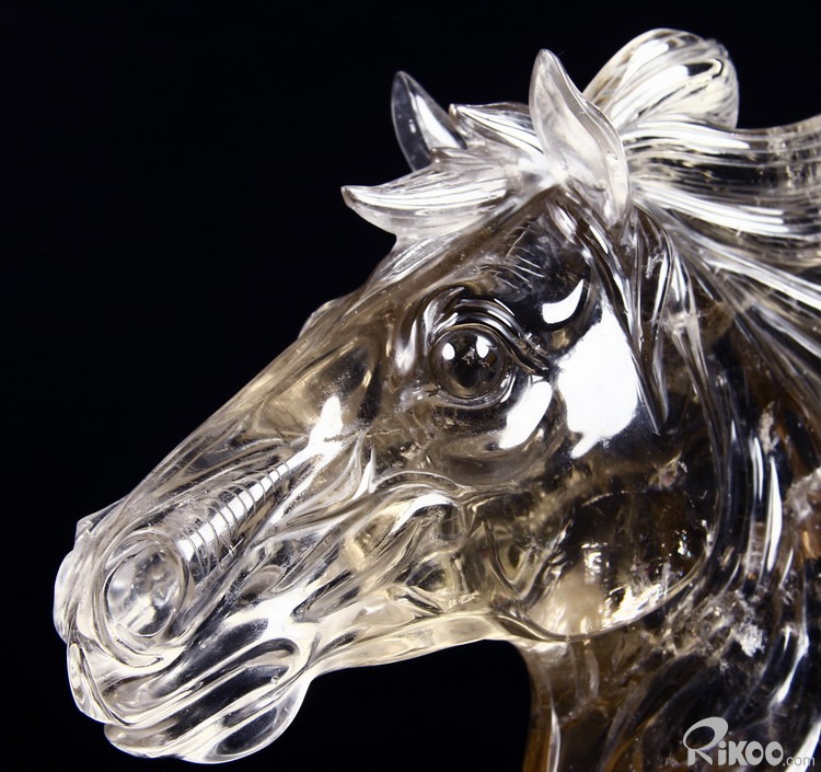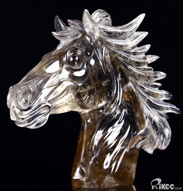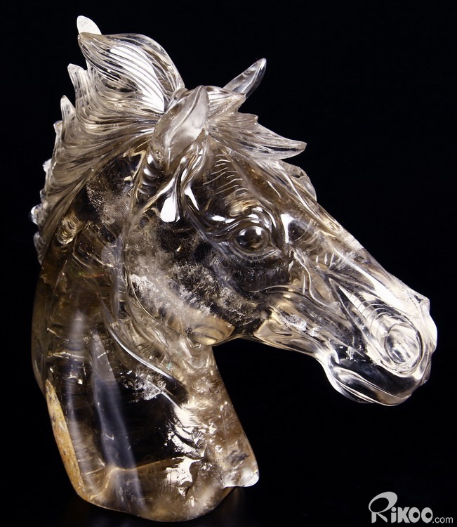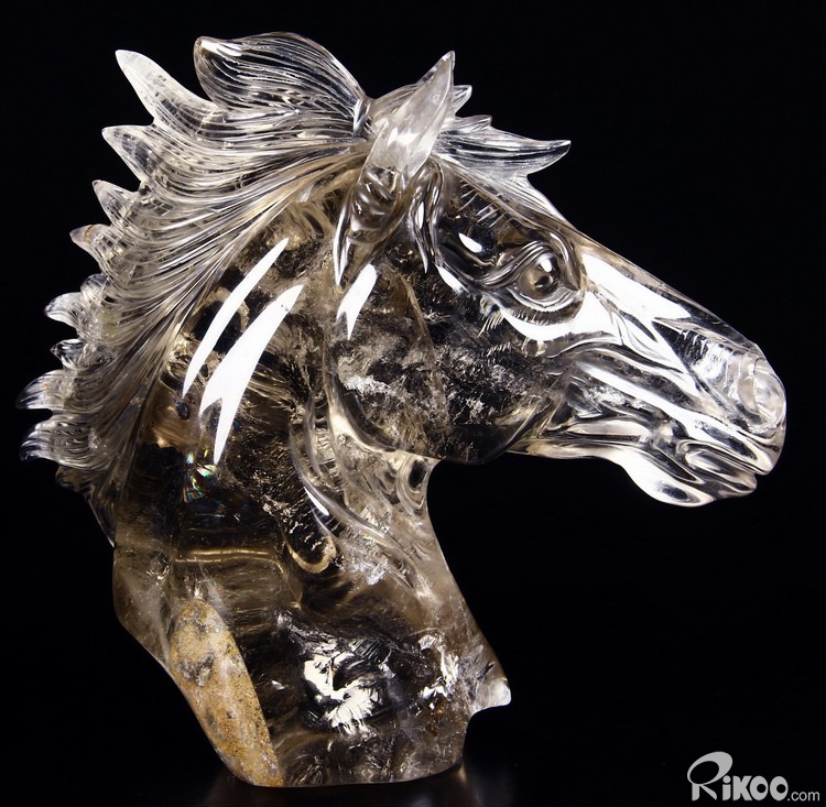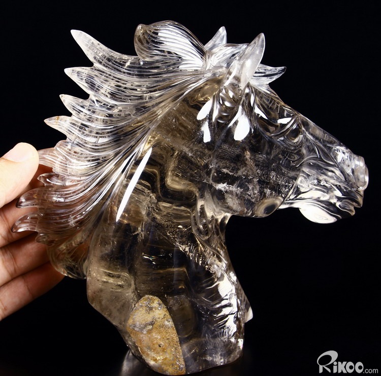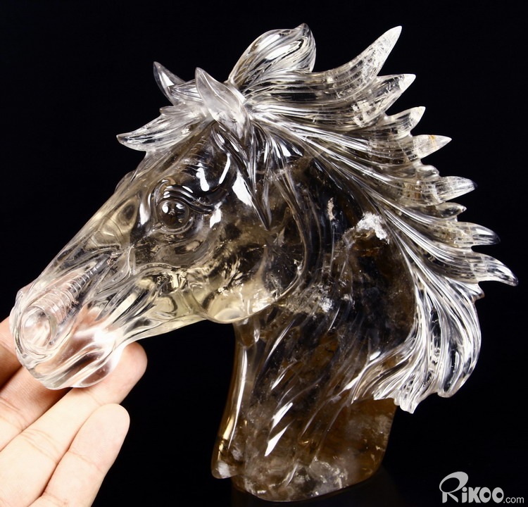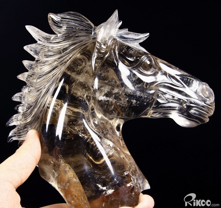 Nice Clear Huge 7.4" Smokey/Smoky Quartz Rock Crystal Carved Crystal Horse Head Sculpture