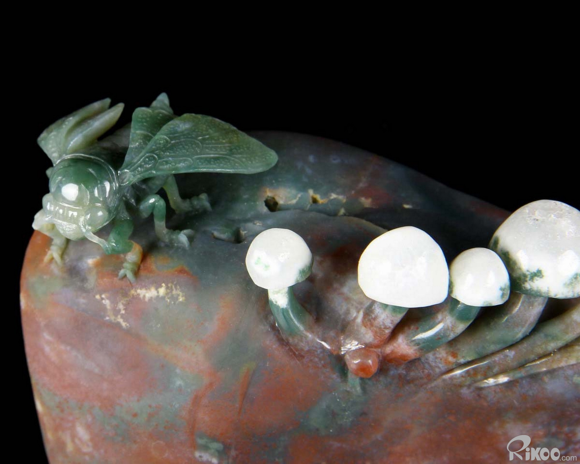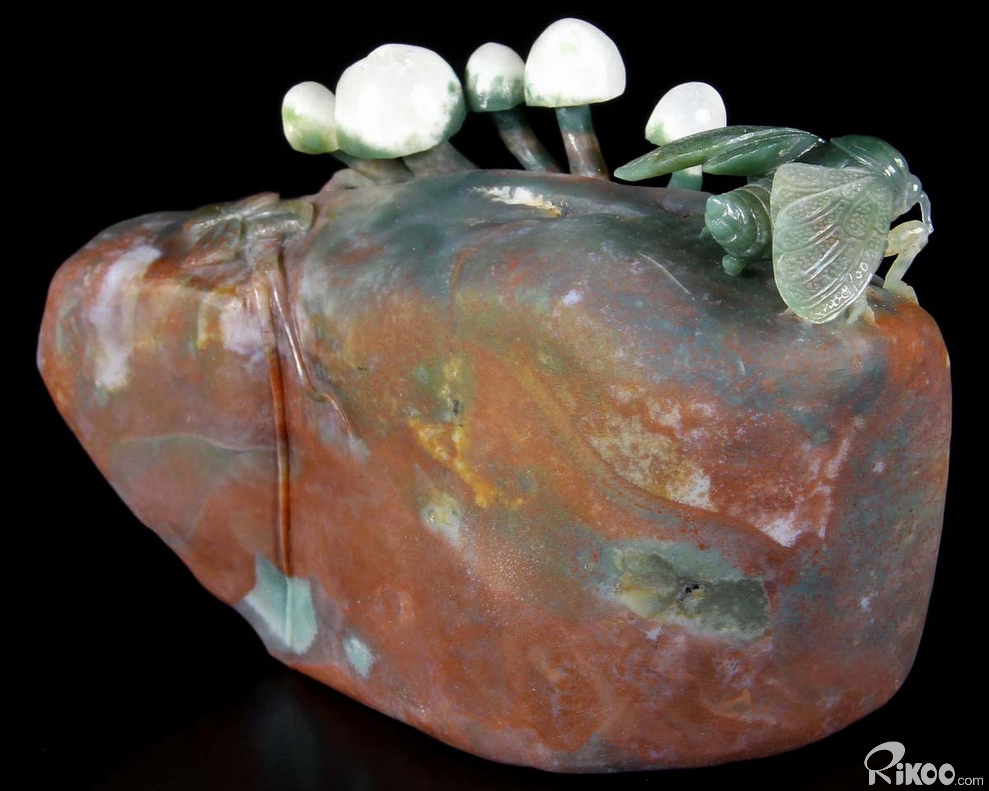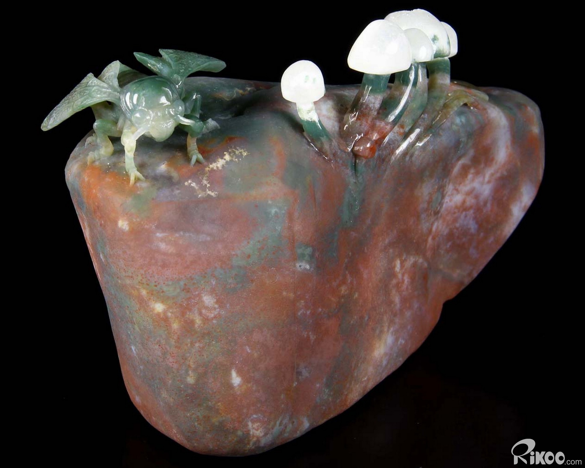 Original 5.7" Indian Agate Carved Crystal Cicada Sculpture