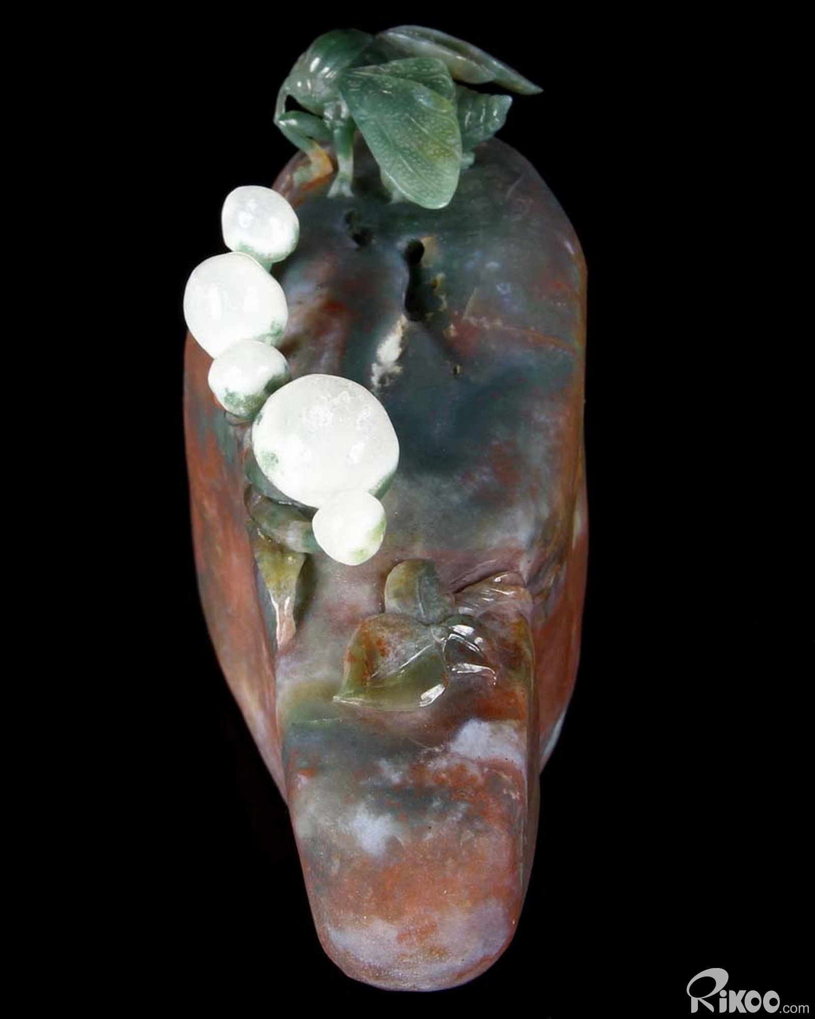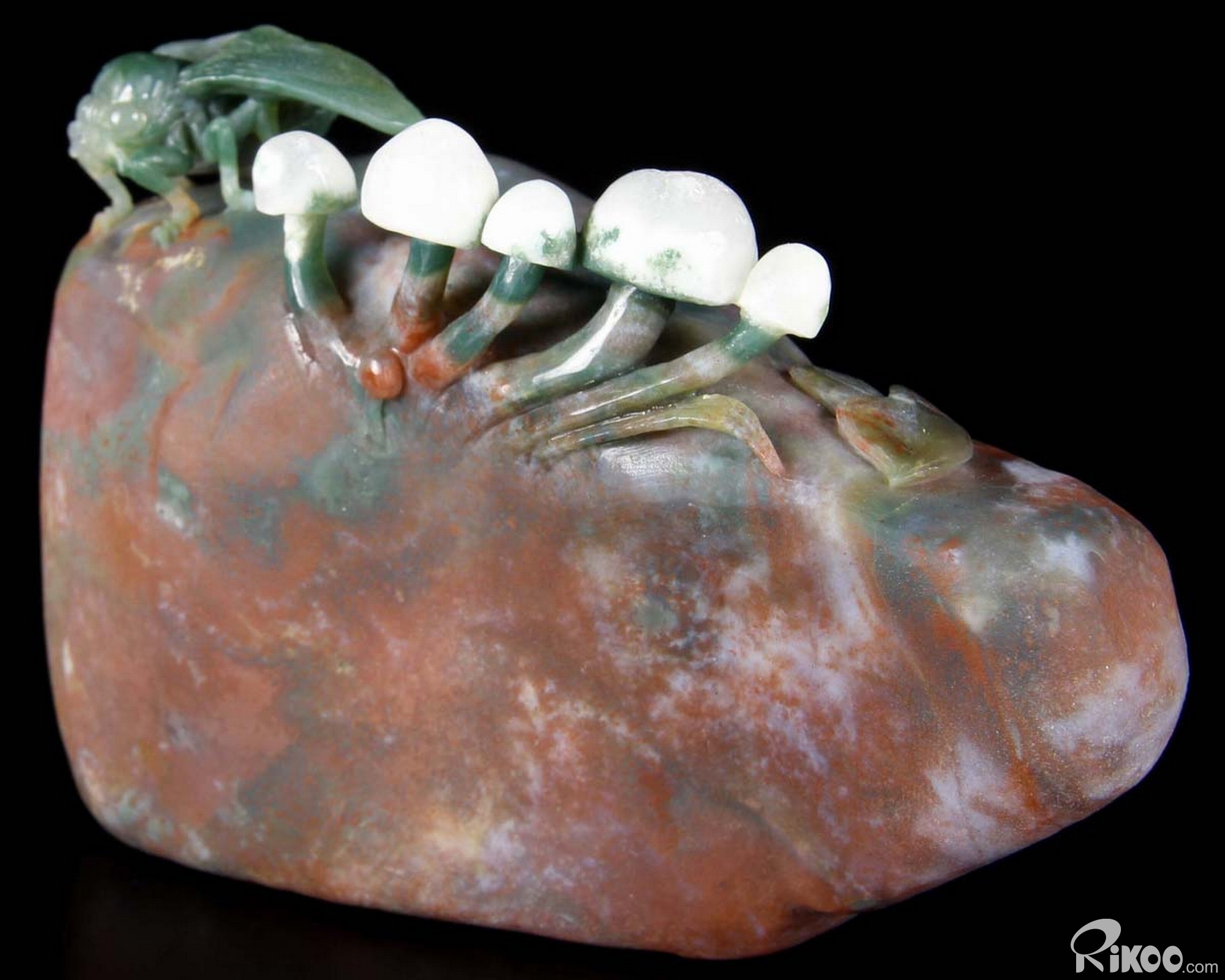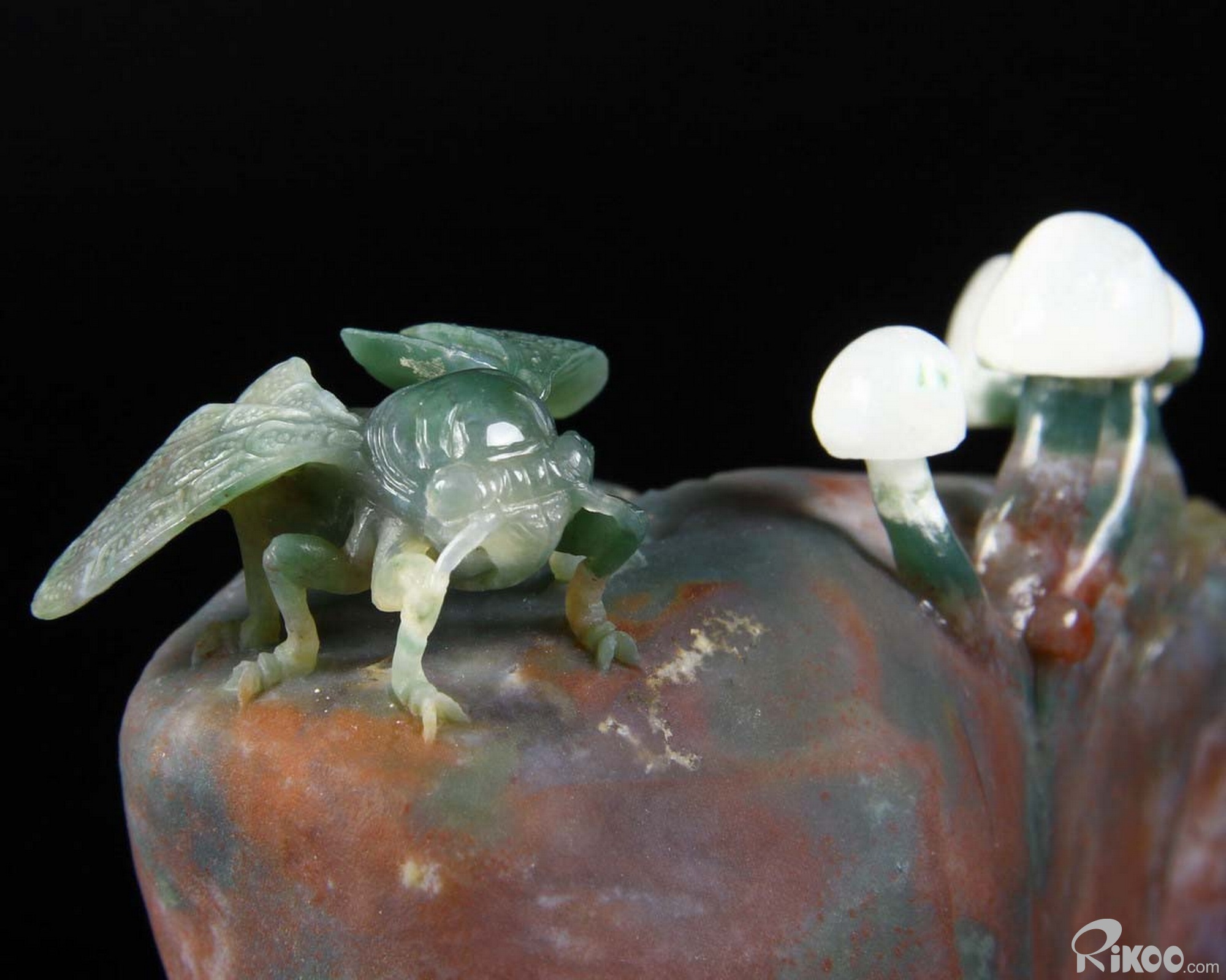 Original 5.7" Indian Agate Carved Crystal Cicada Sculpture