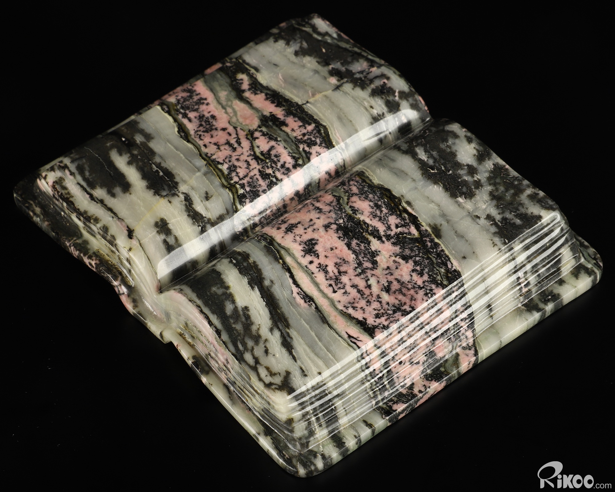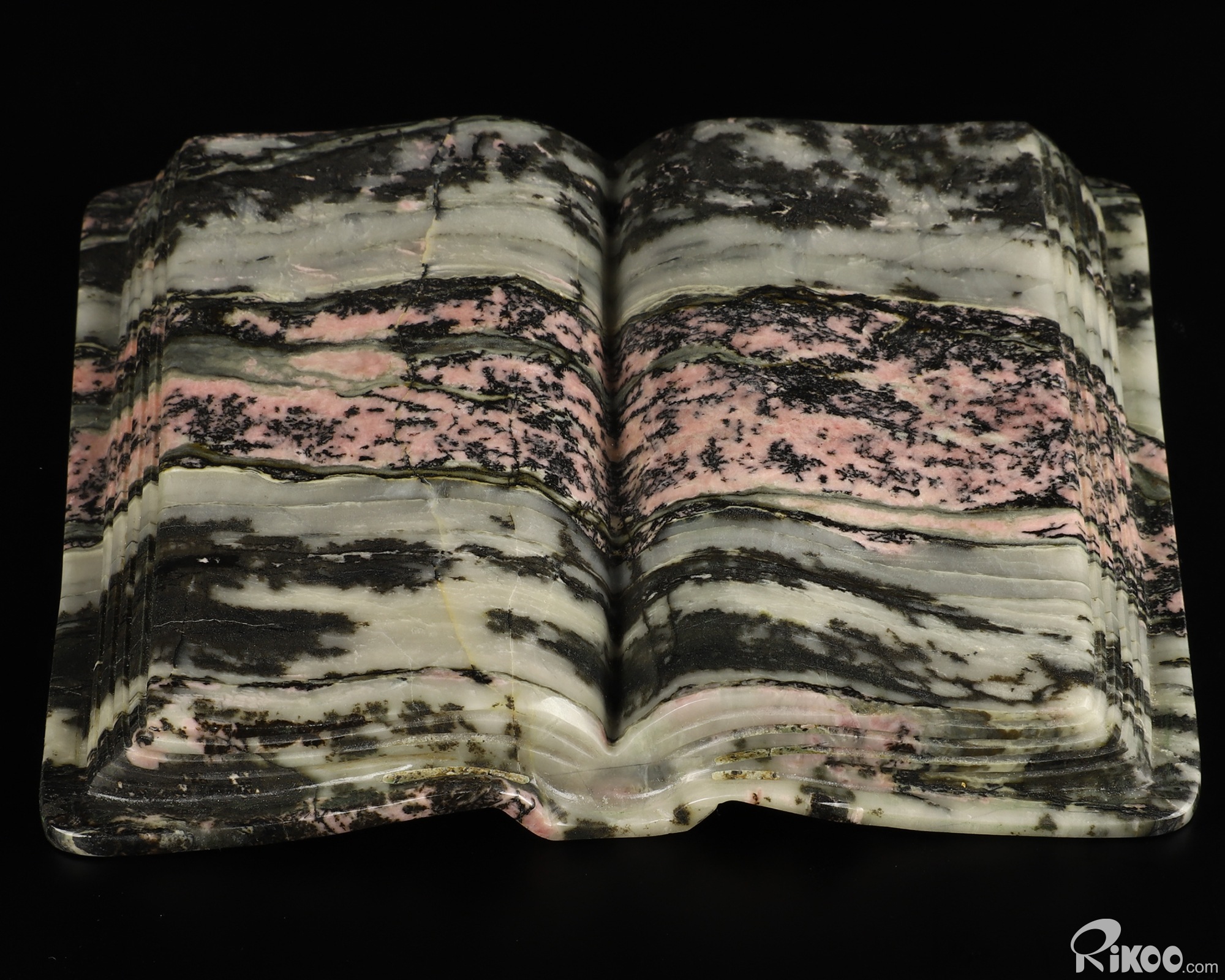 Pink & Black Rhodonite Carved Crystal Holy Bible Book