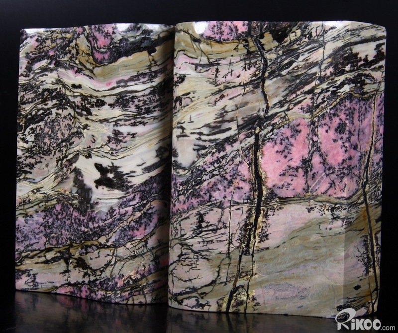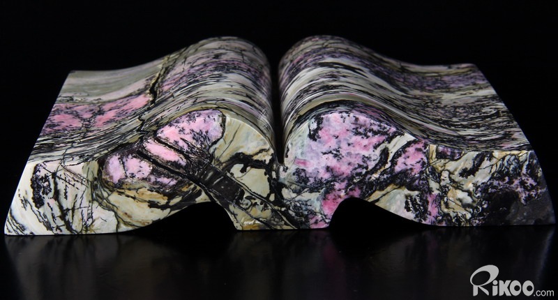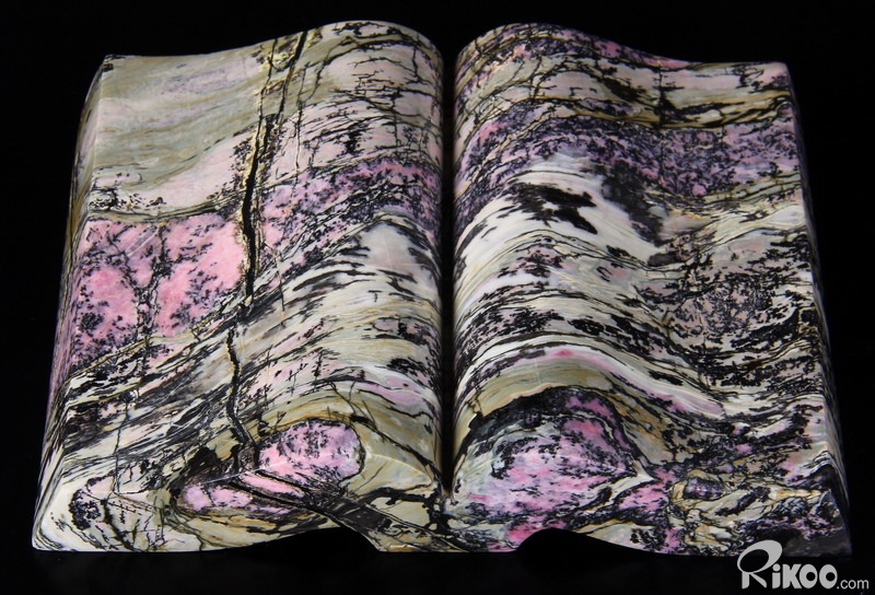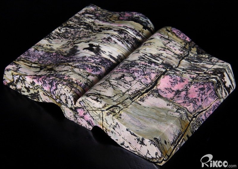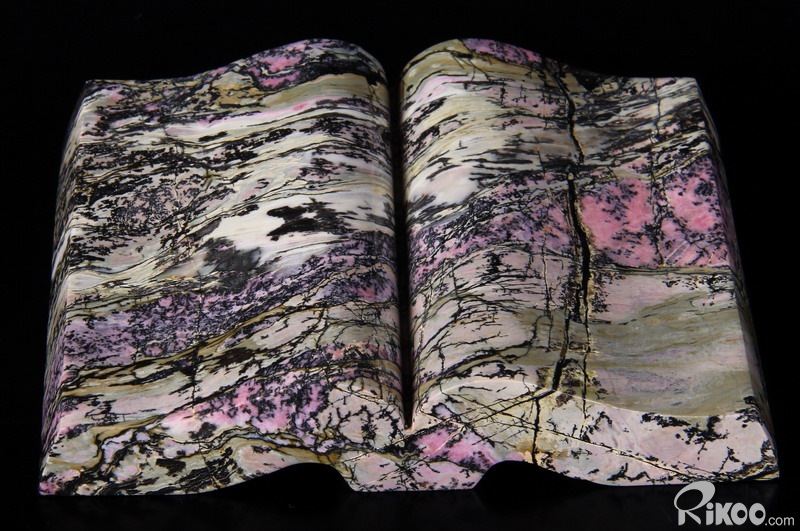 Pink & Black Rhodonite Carved Crystal Holy Bible