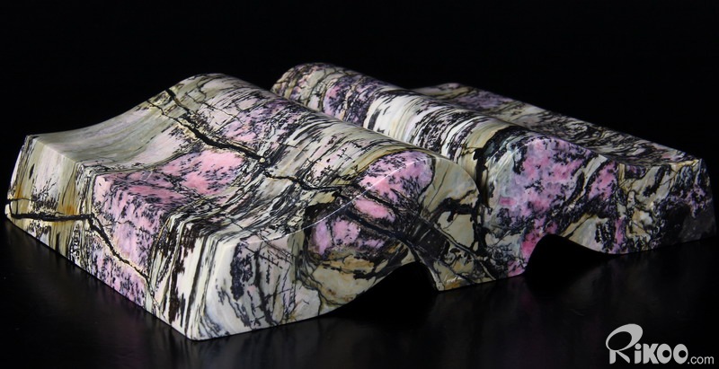 You are looking at a Pink & Black Rhodonite skull. The skull is 7.5 inches long from front to back.