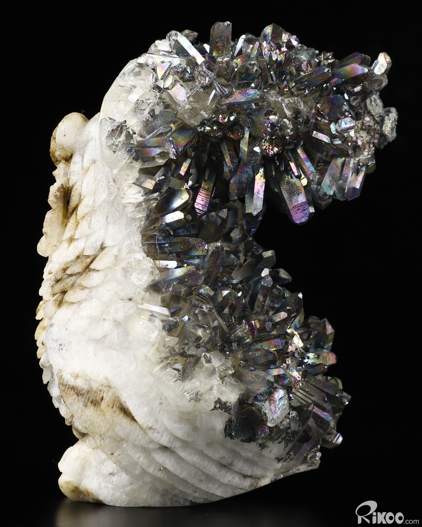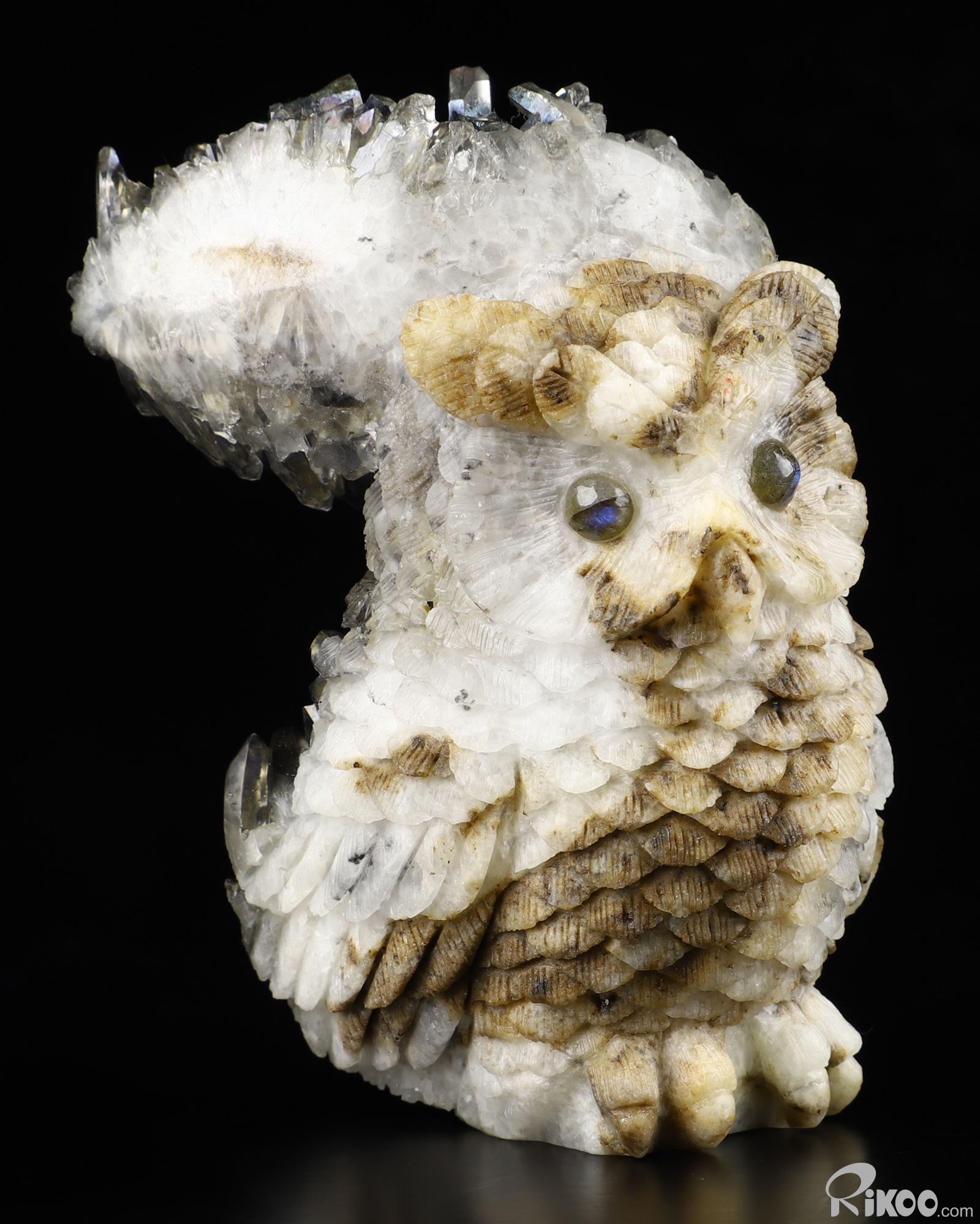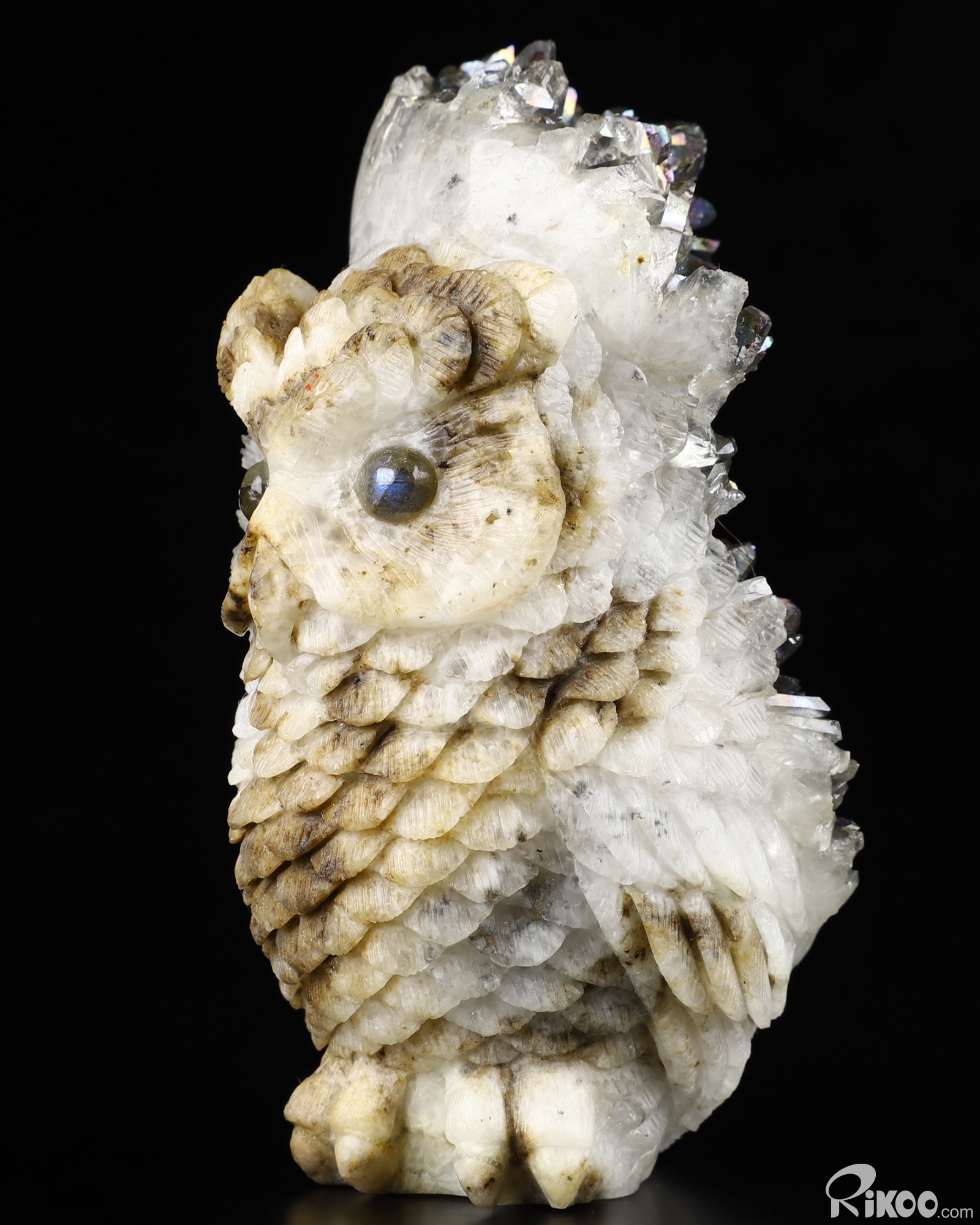 Rainbow Aura 4.0" Quartz Rock Crystal Carved Crystal Owl Sculpture