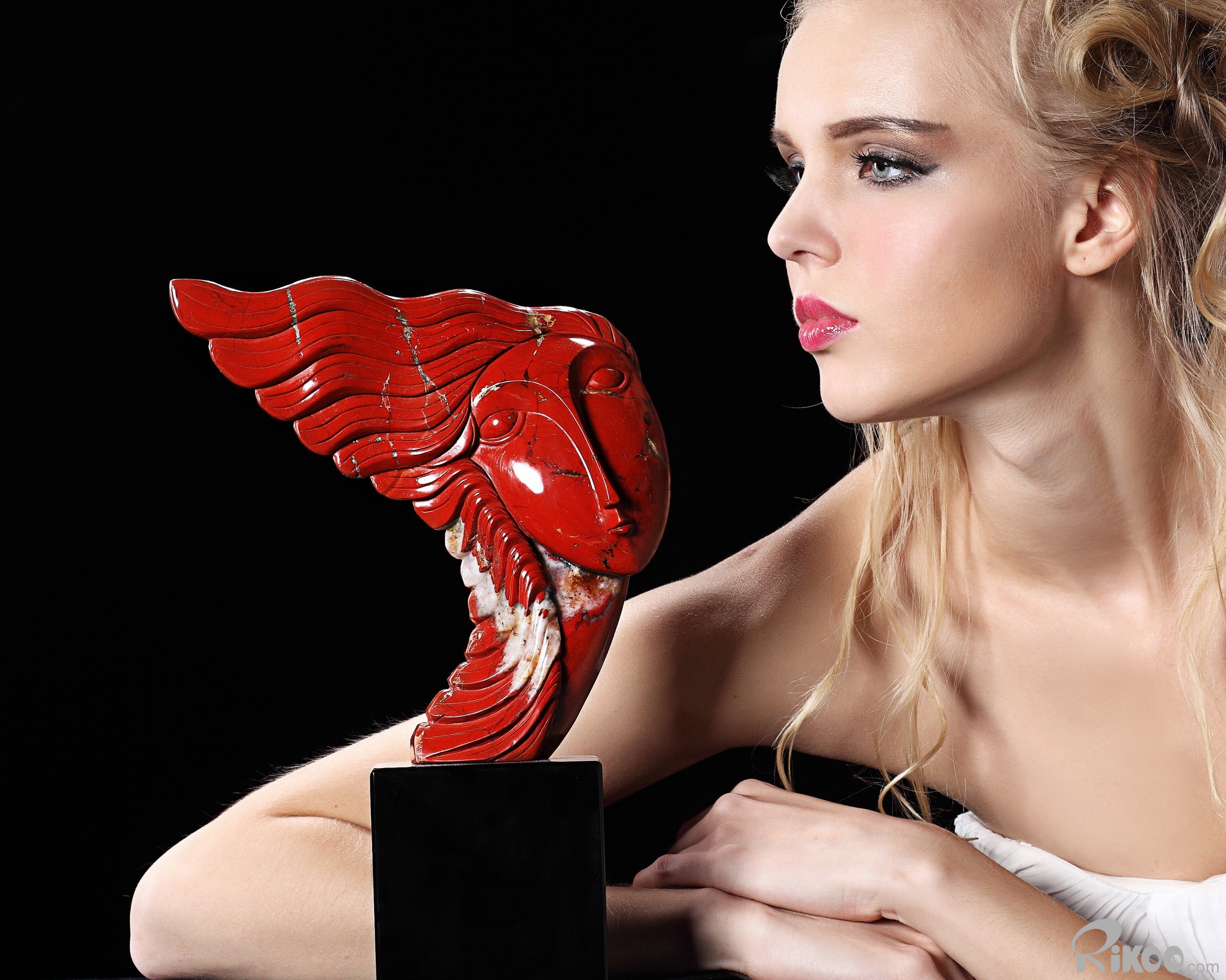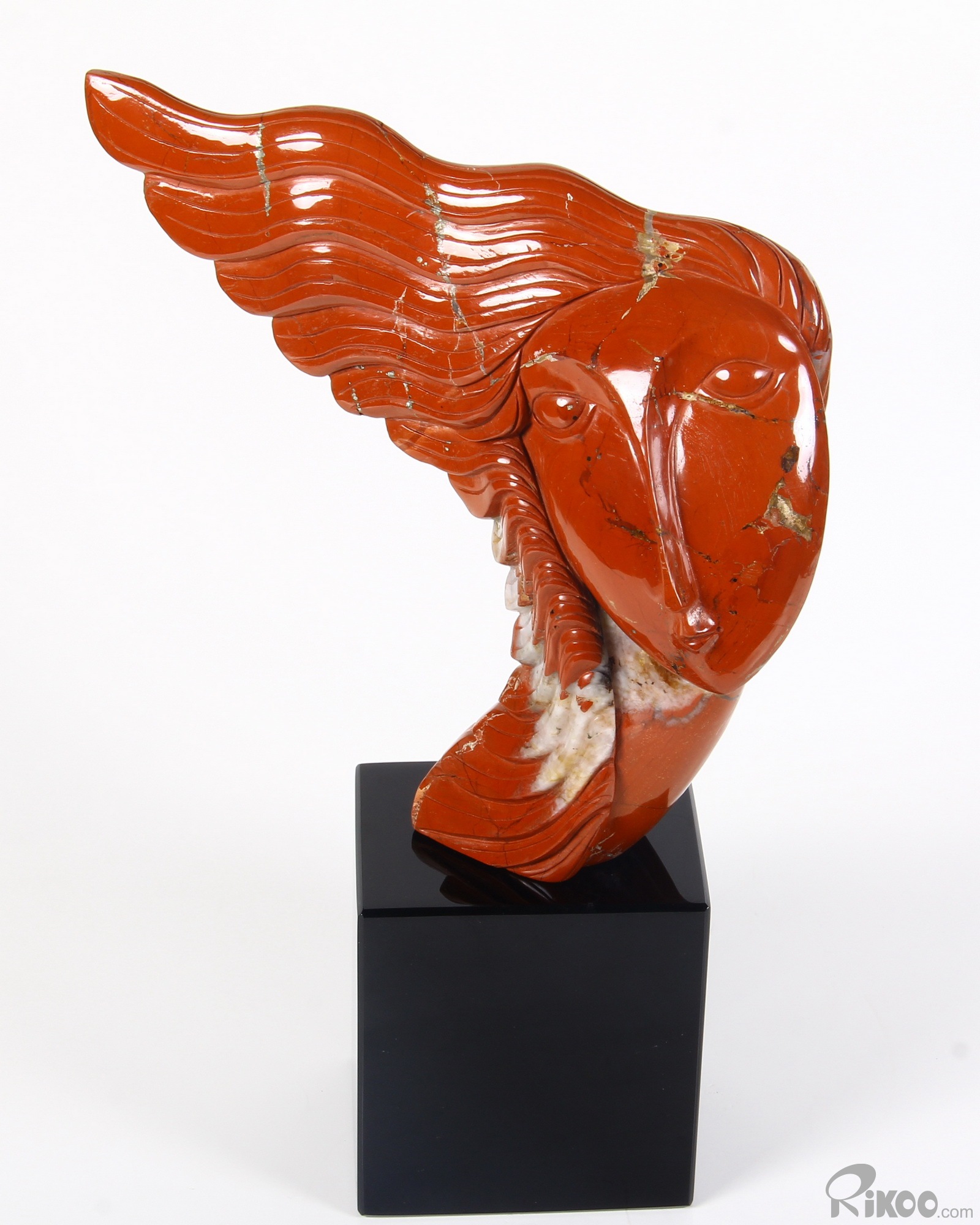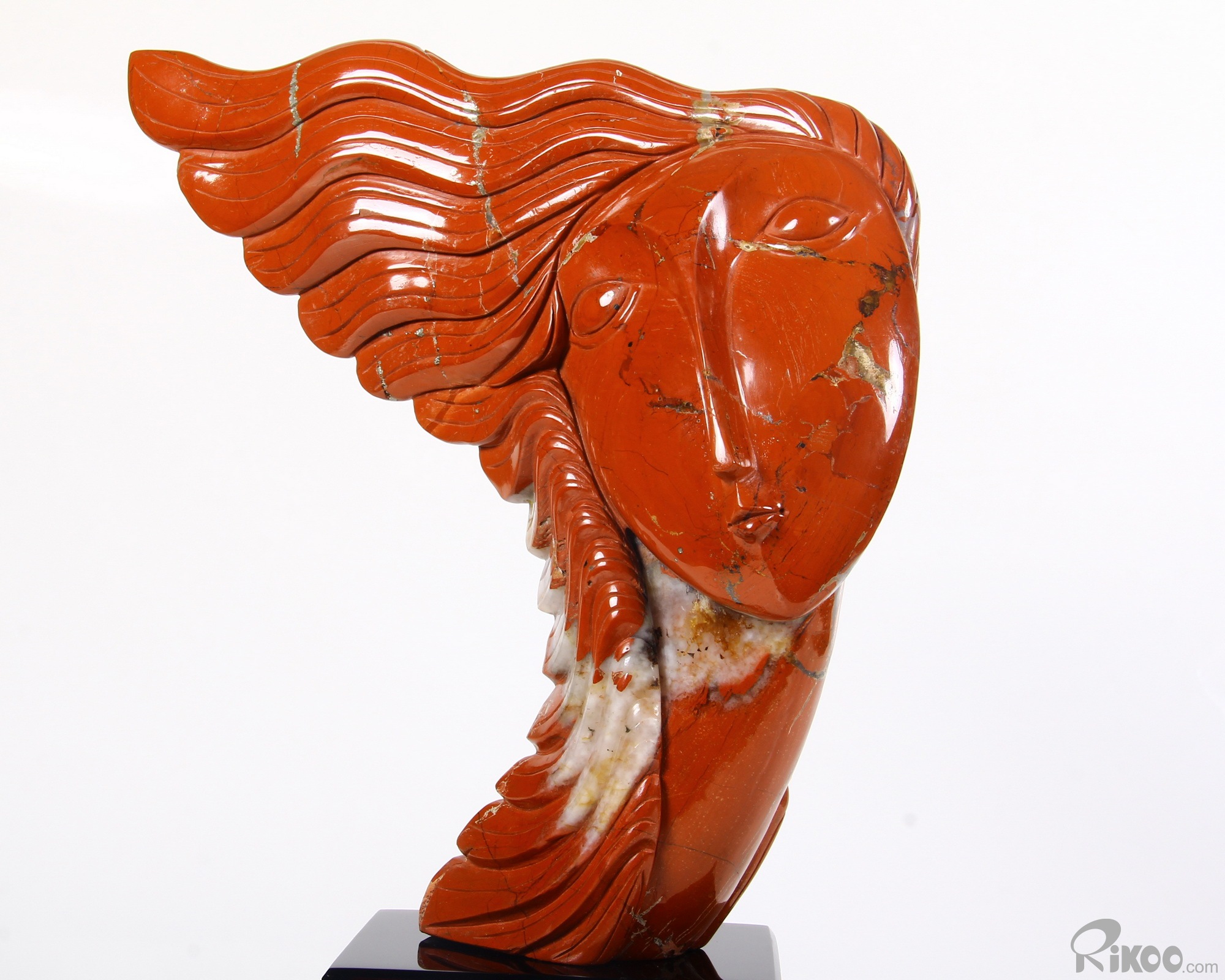 Modern Red Jasper & Black Obsidian Carved Crystal Woman Sculpture Black Obsidian Base