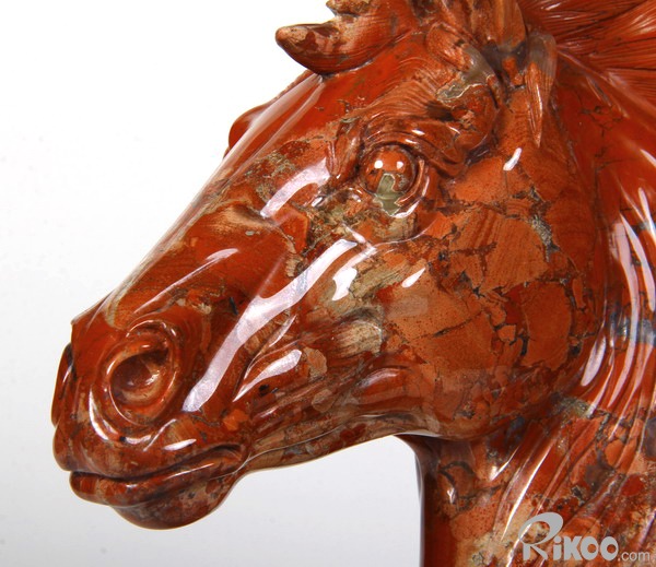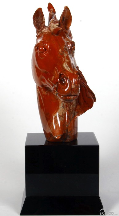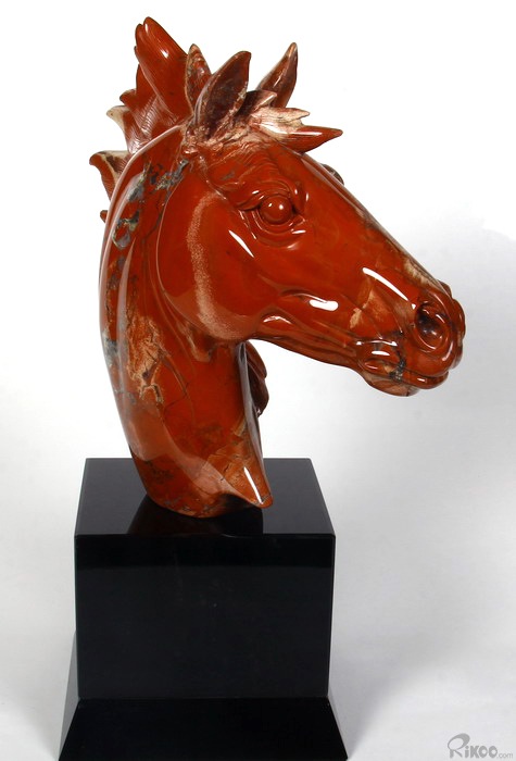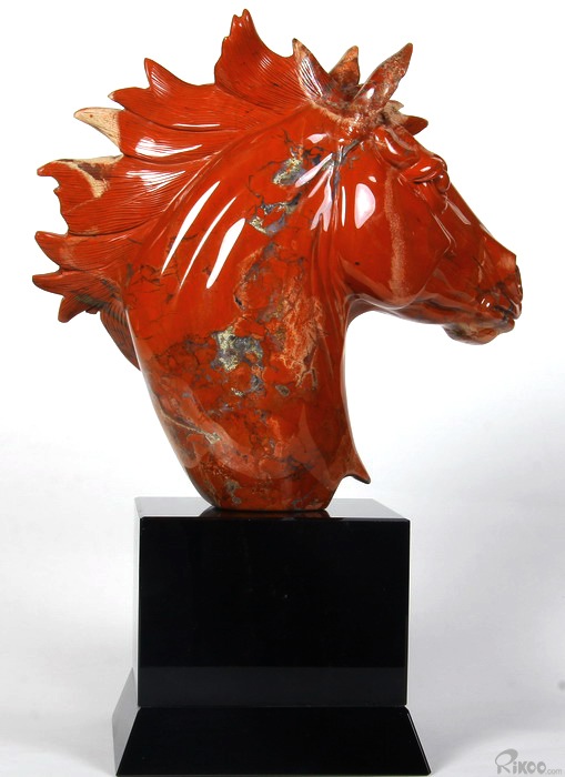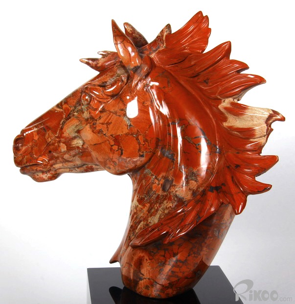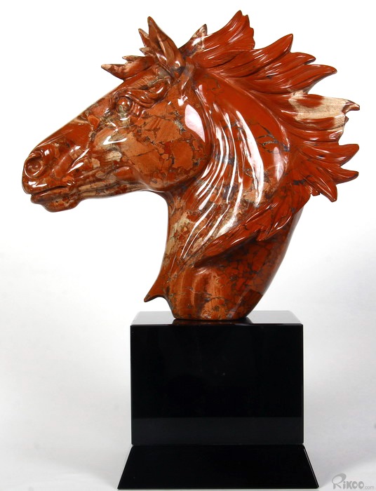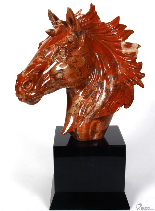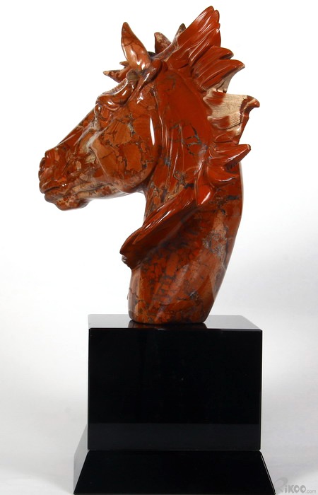 Red Jasper & Black Obsidian Carved Crystal Horse Head Sculpture