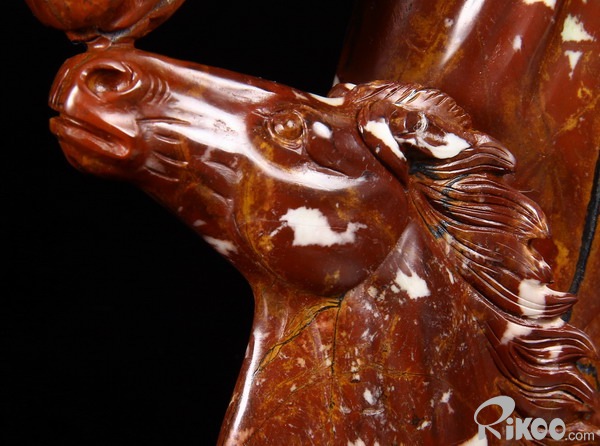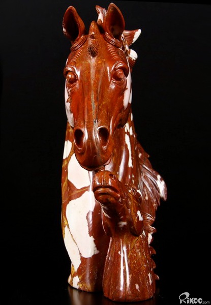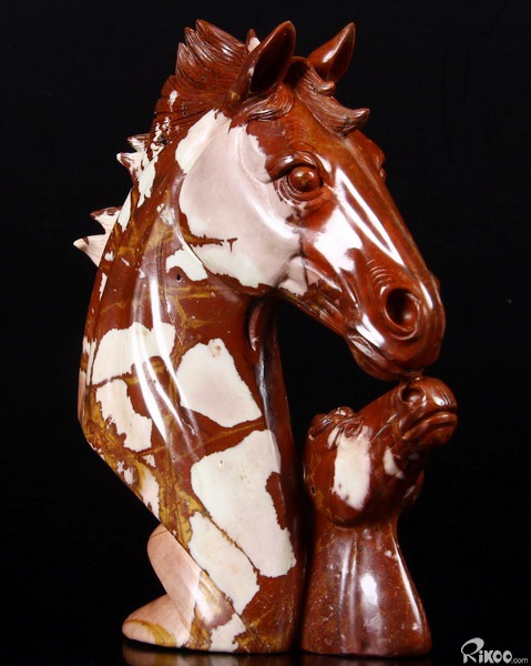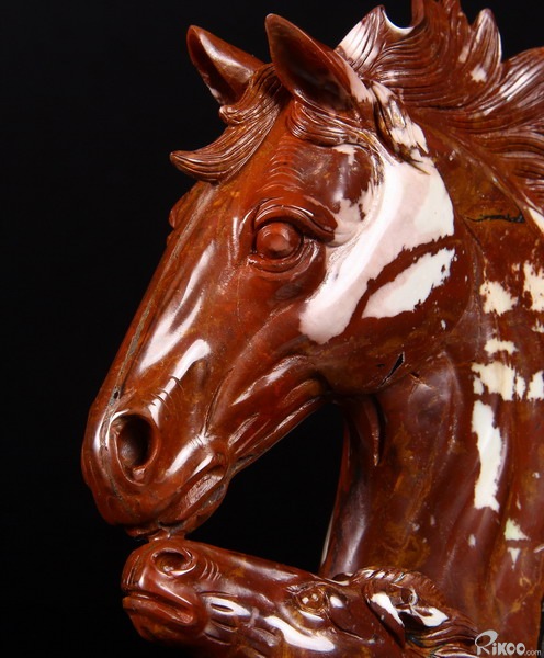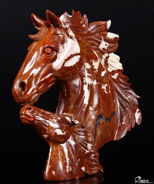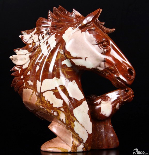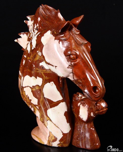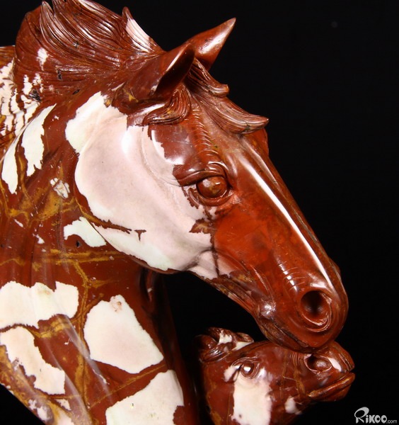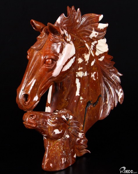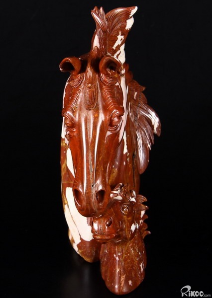 Red Noreena Jasper Carved Crystal Horse Heads Sculpture