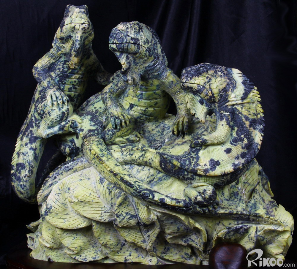 STUNNING 12" Hiso Jasper Carved Crystal Lizards