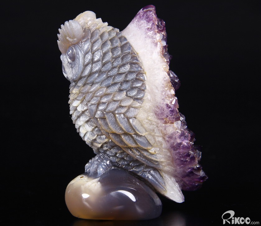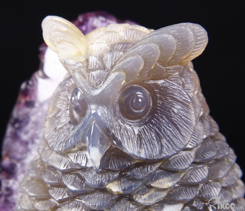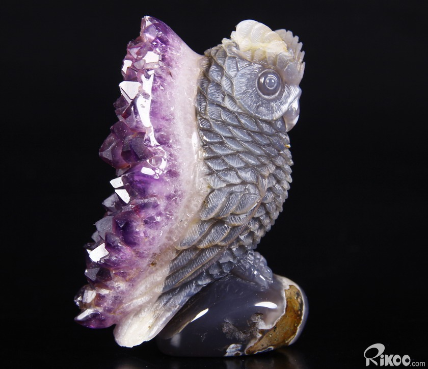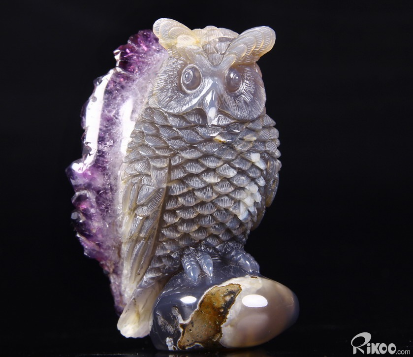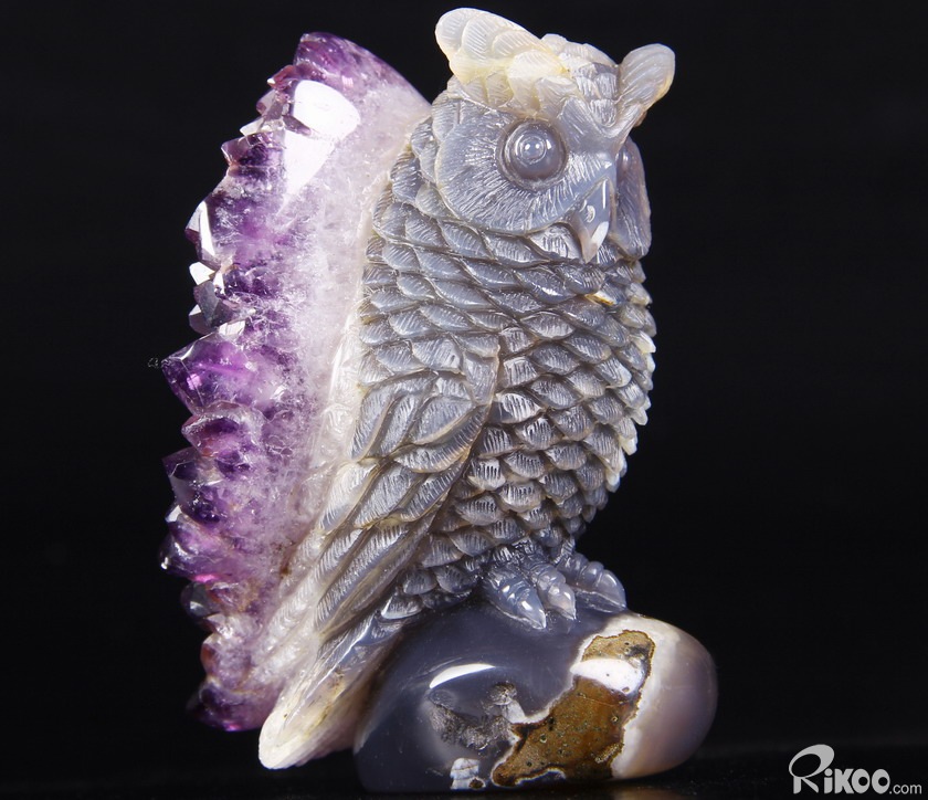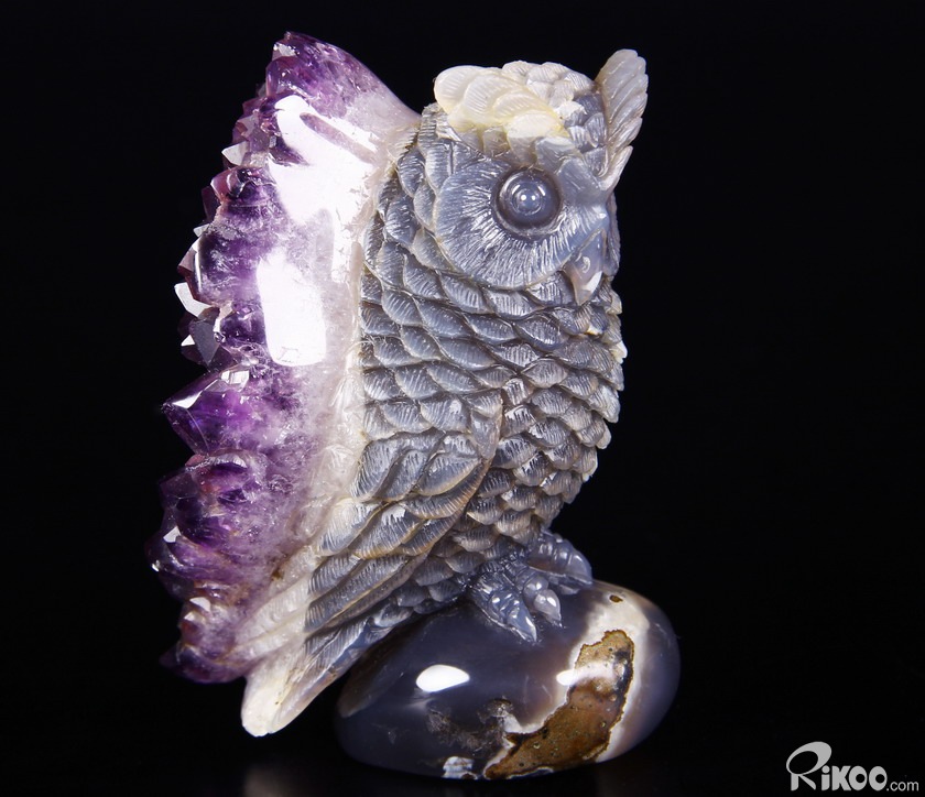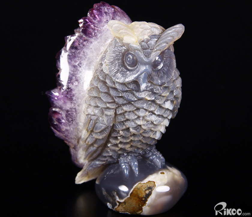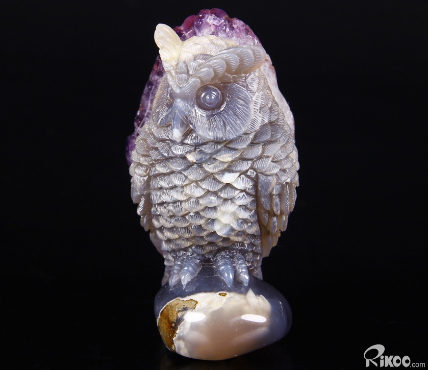 STUNNING 3.5" Agate Amethyst Druse Crystal Owl Sculpture