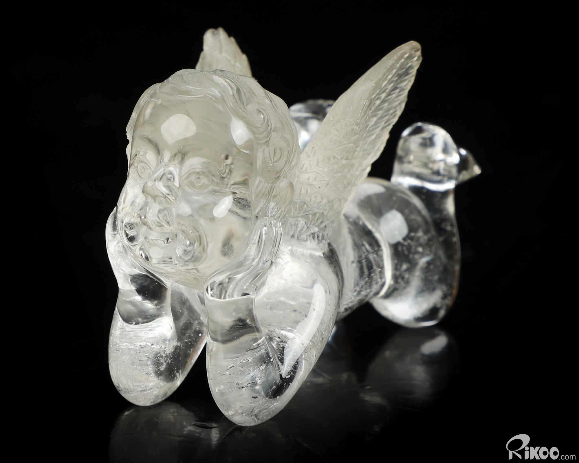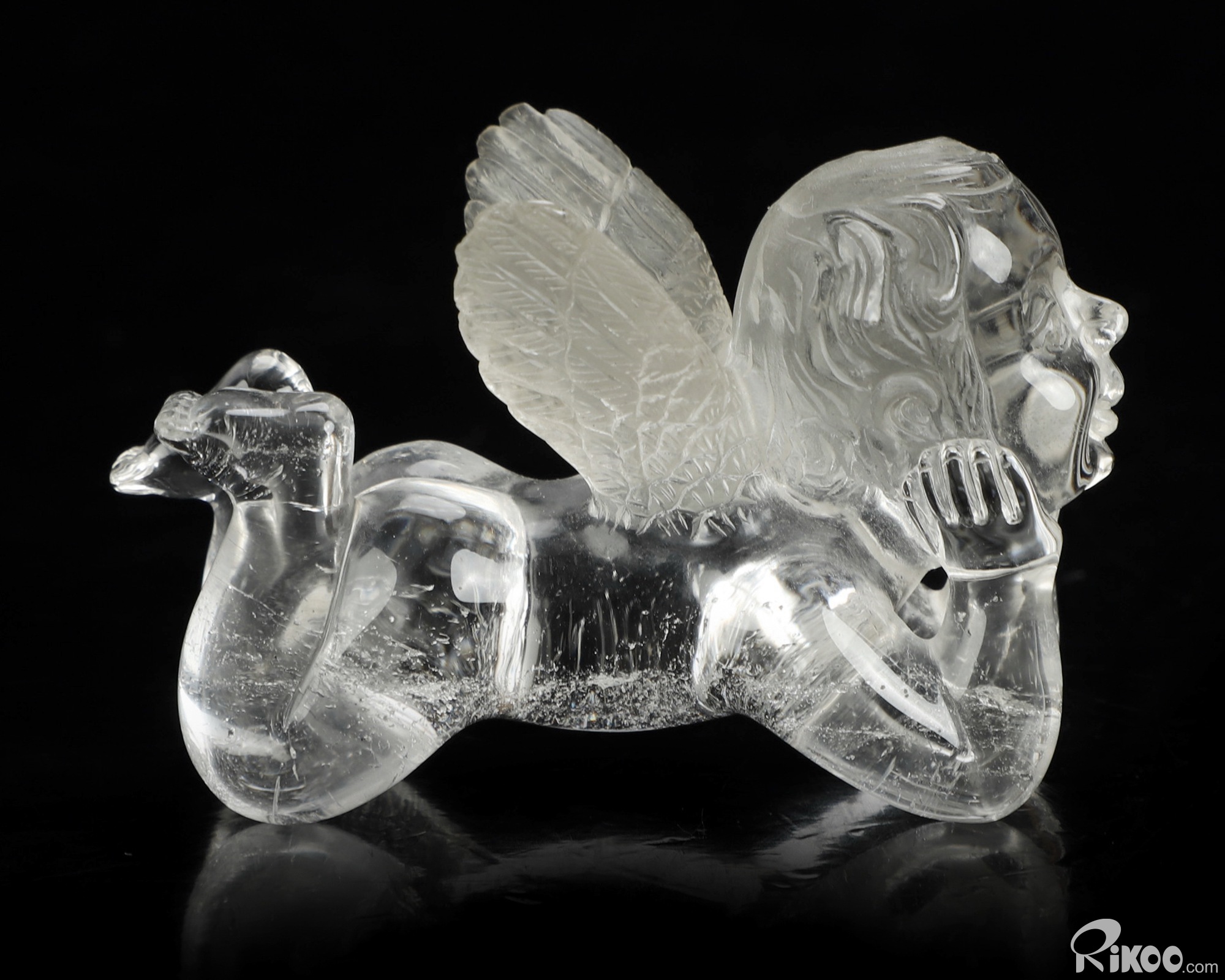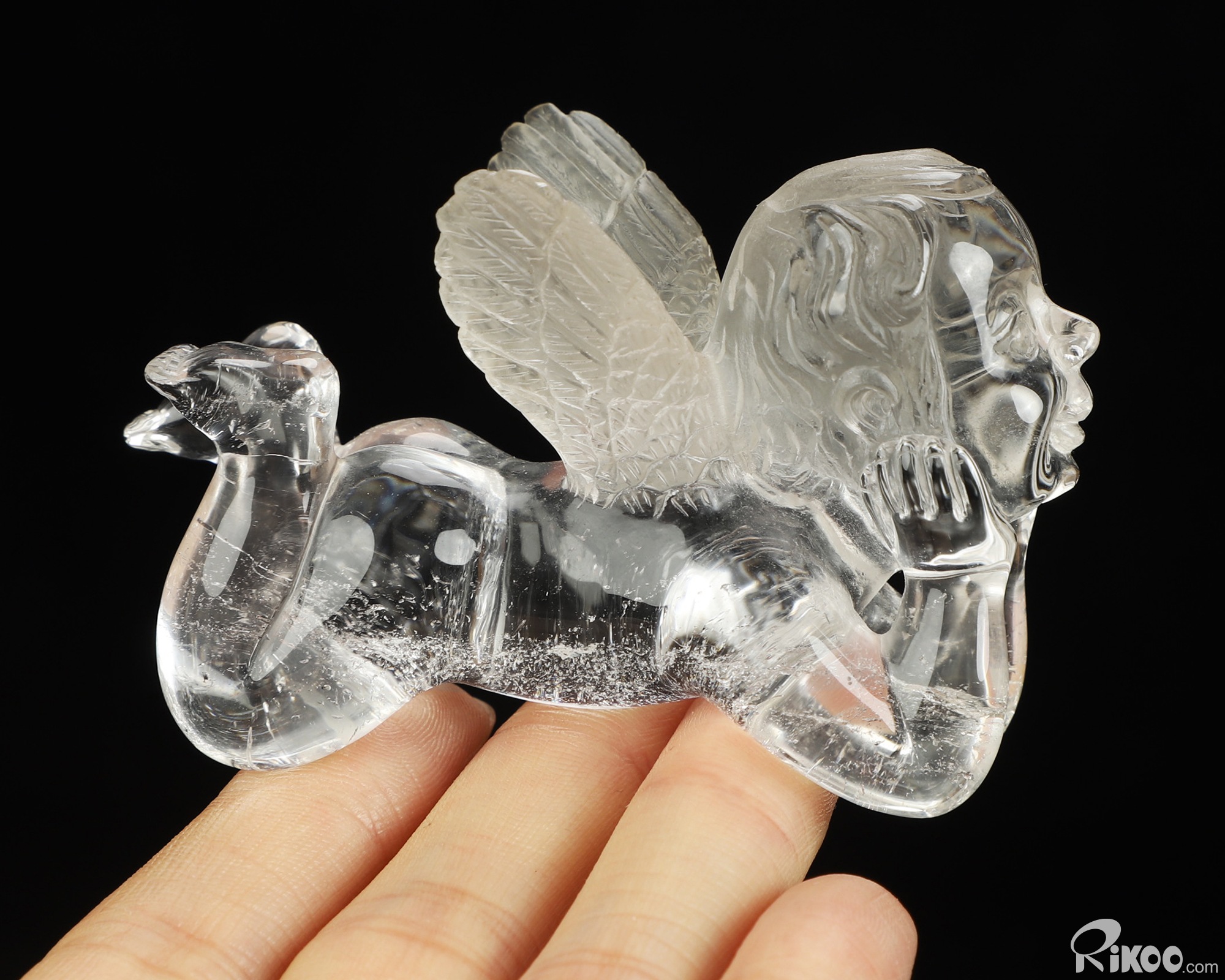 STUNNING CLEAR 2.9" Quartz Rock Crystal Hand Carved Angel, Crystal Healing