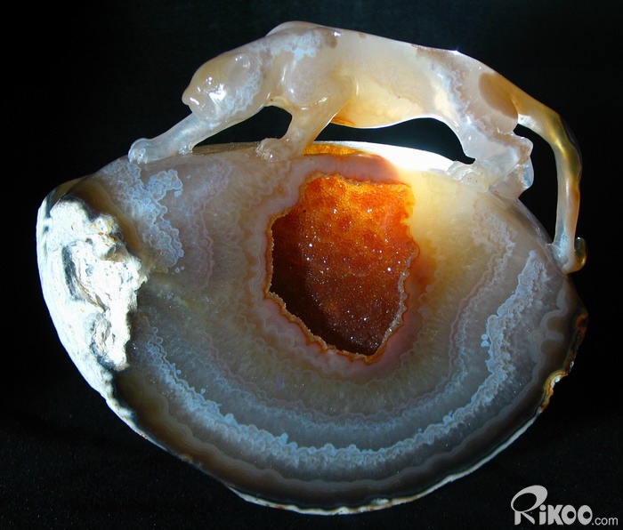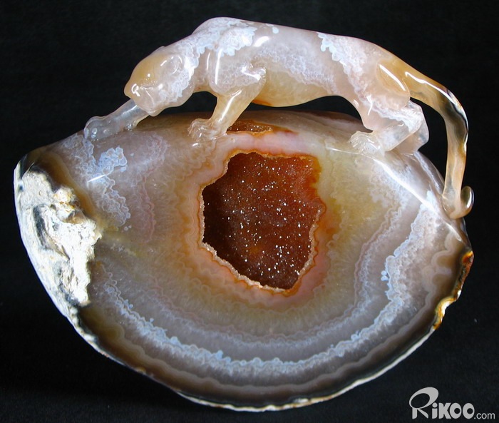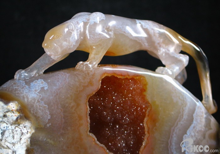 STUNNING GEODE Agate Carved Tiger