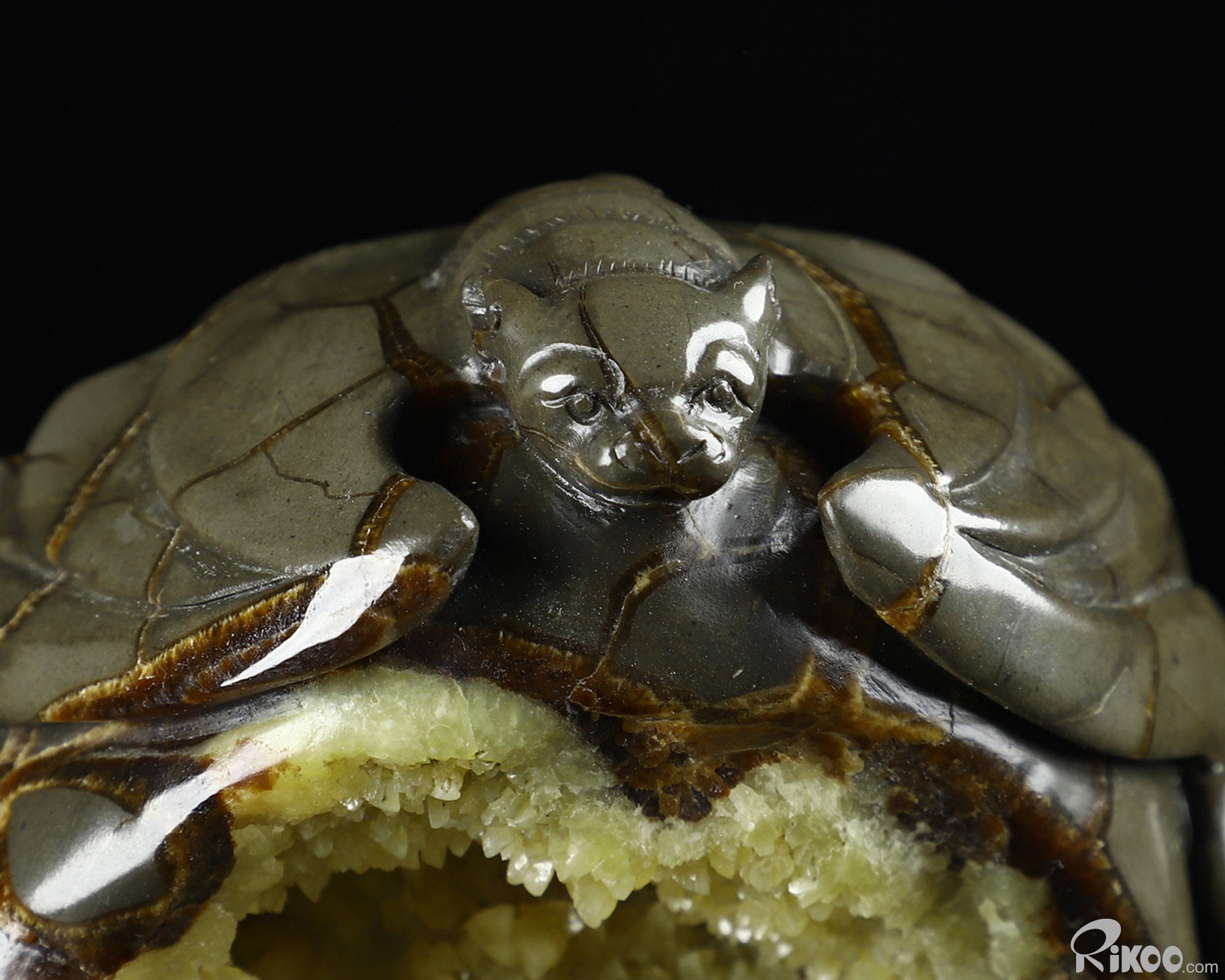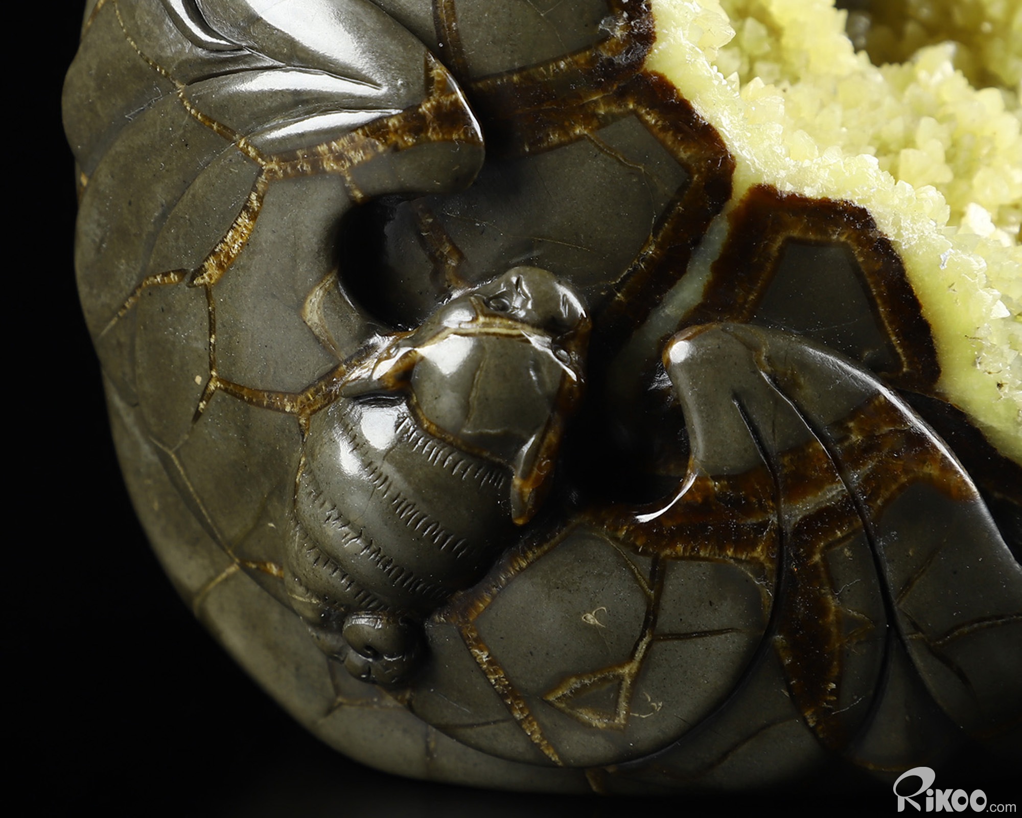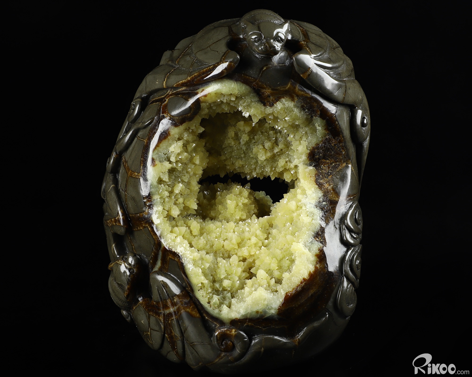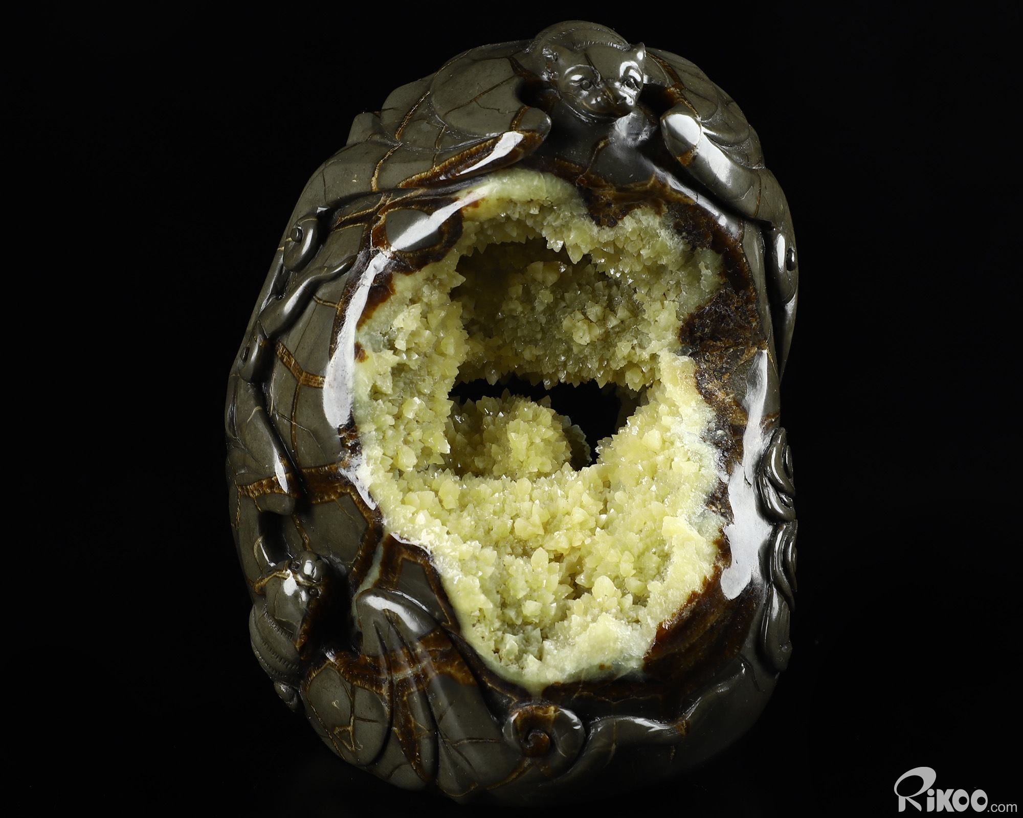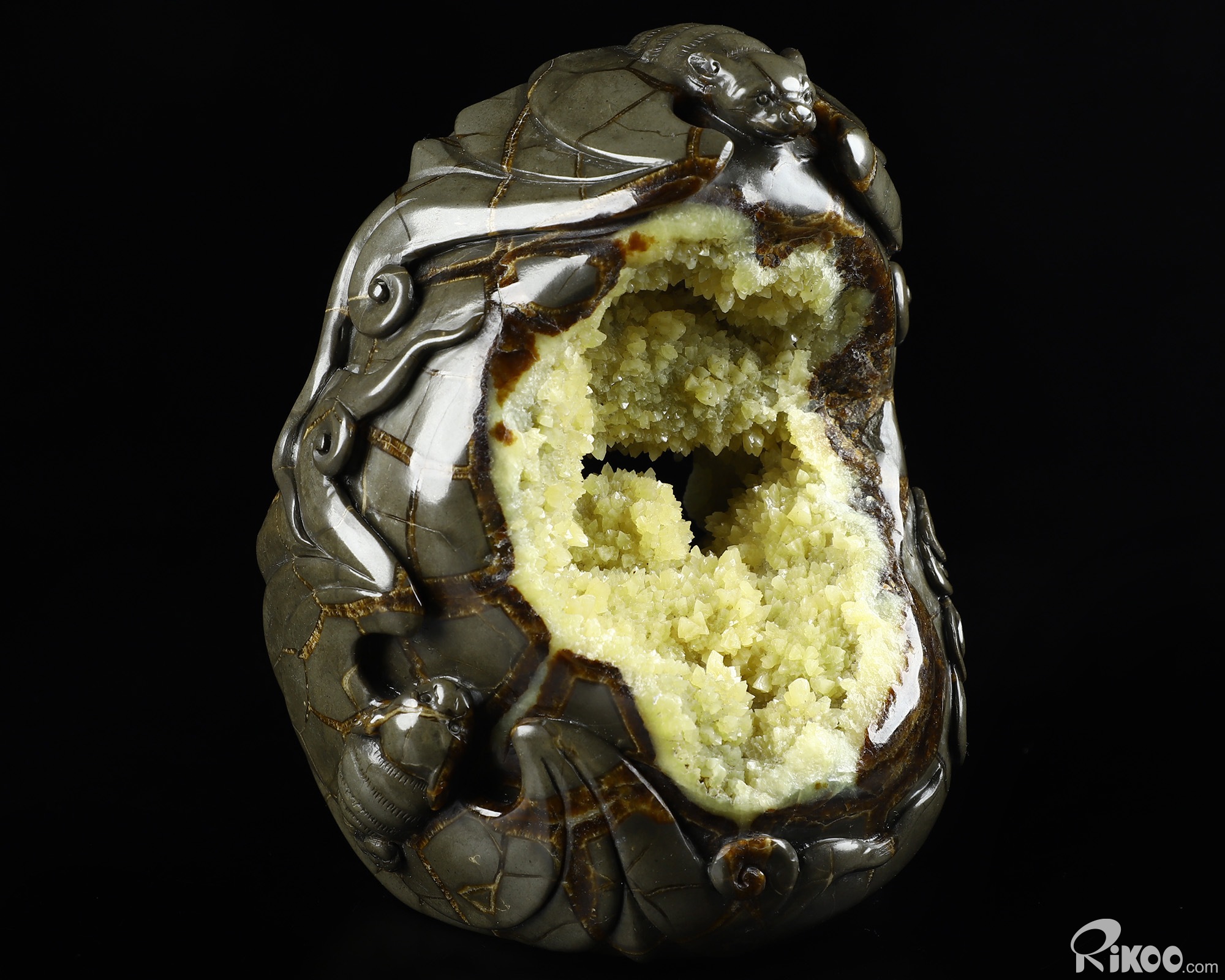STUNNING GEODE Dragon Septarian Stone Carved Bats Sculpture
