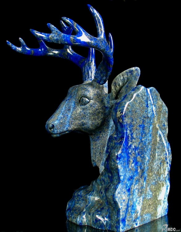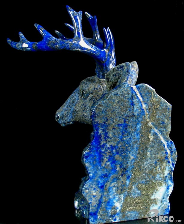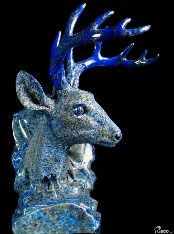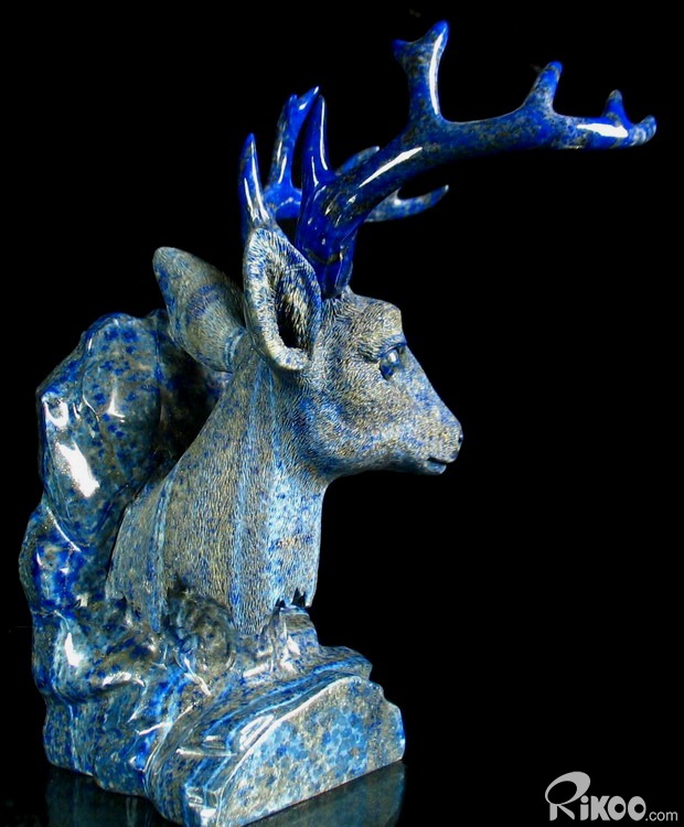 STUNNING Lapis Lazuli Carved Crystal Deer Head, Gemstone