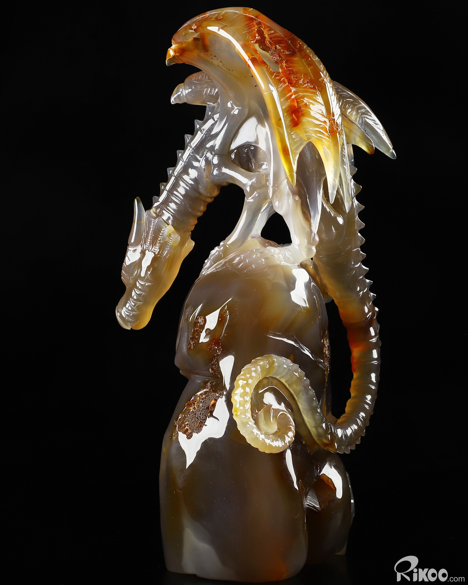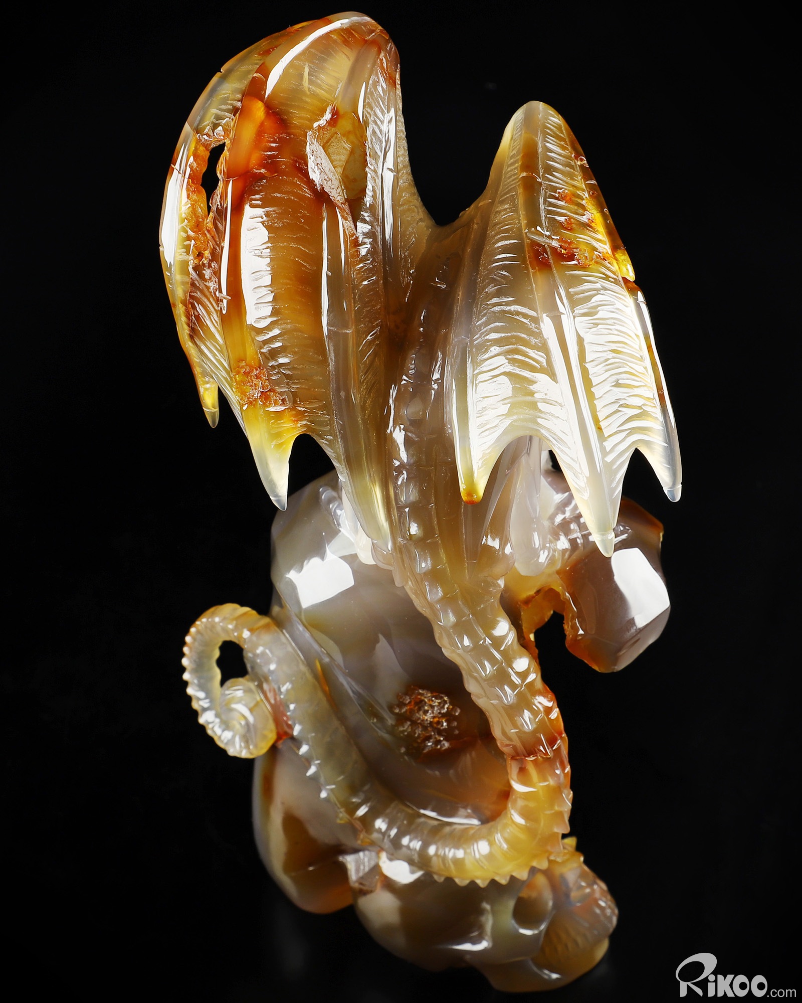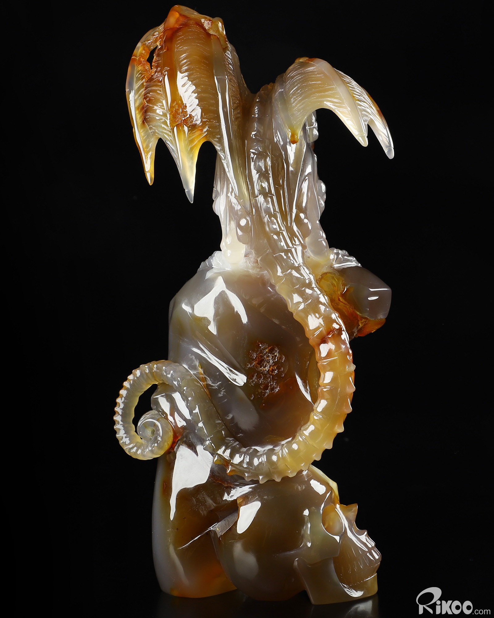 Stunning 10.3" Carnelian Carved Crystal Dragon & Skull Sculpture, Crystal Healing
