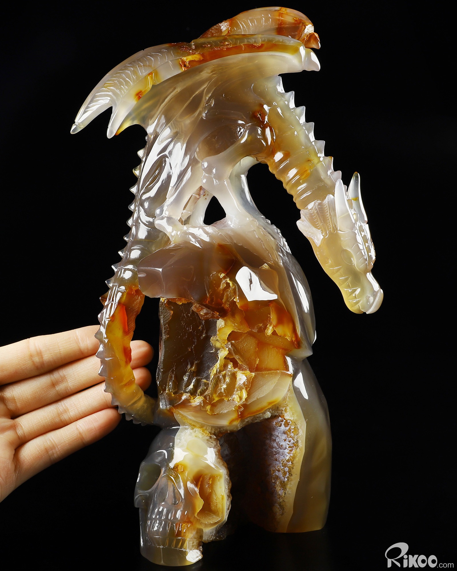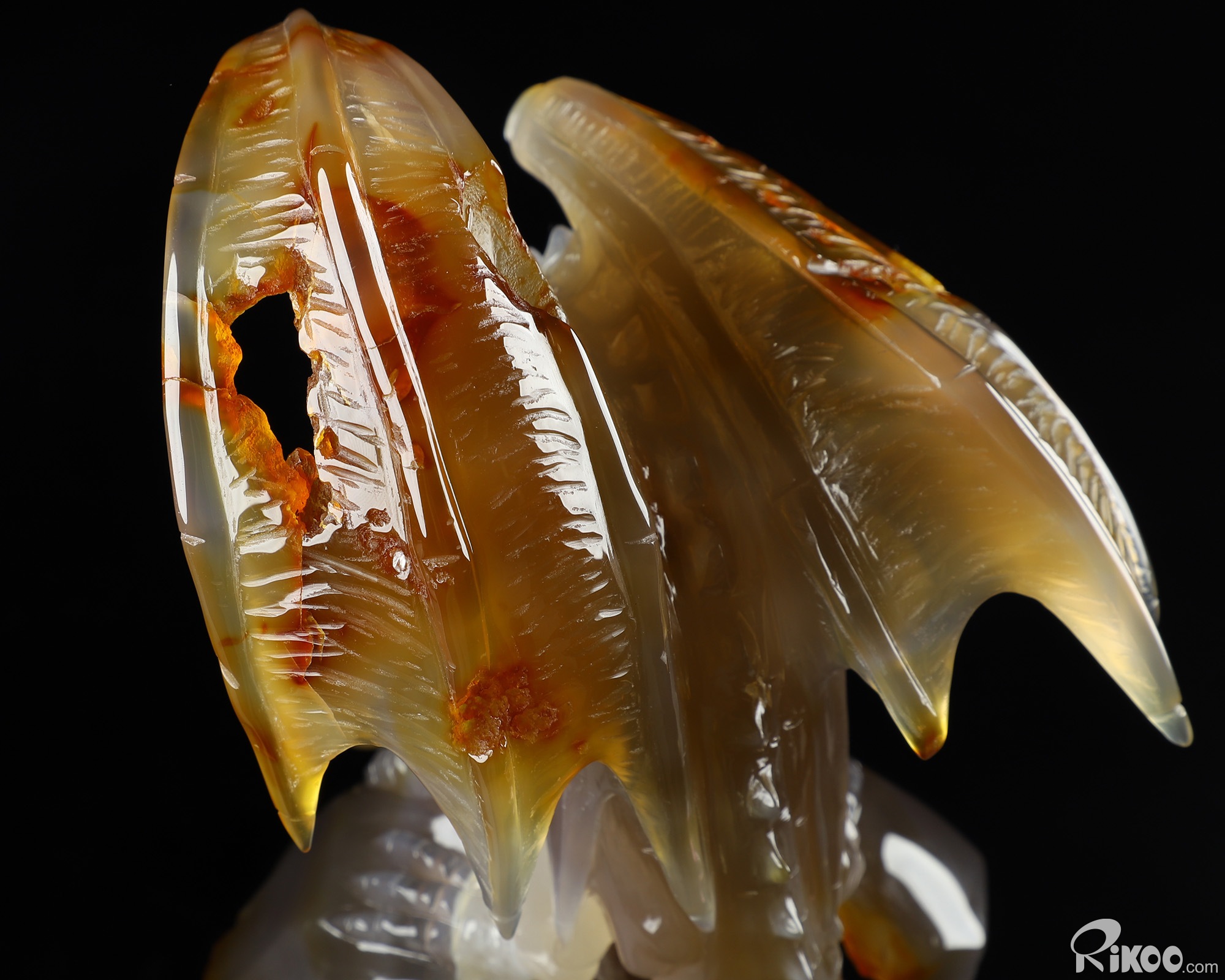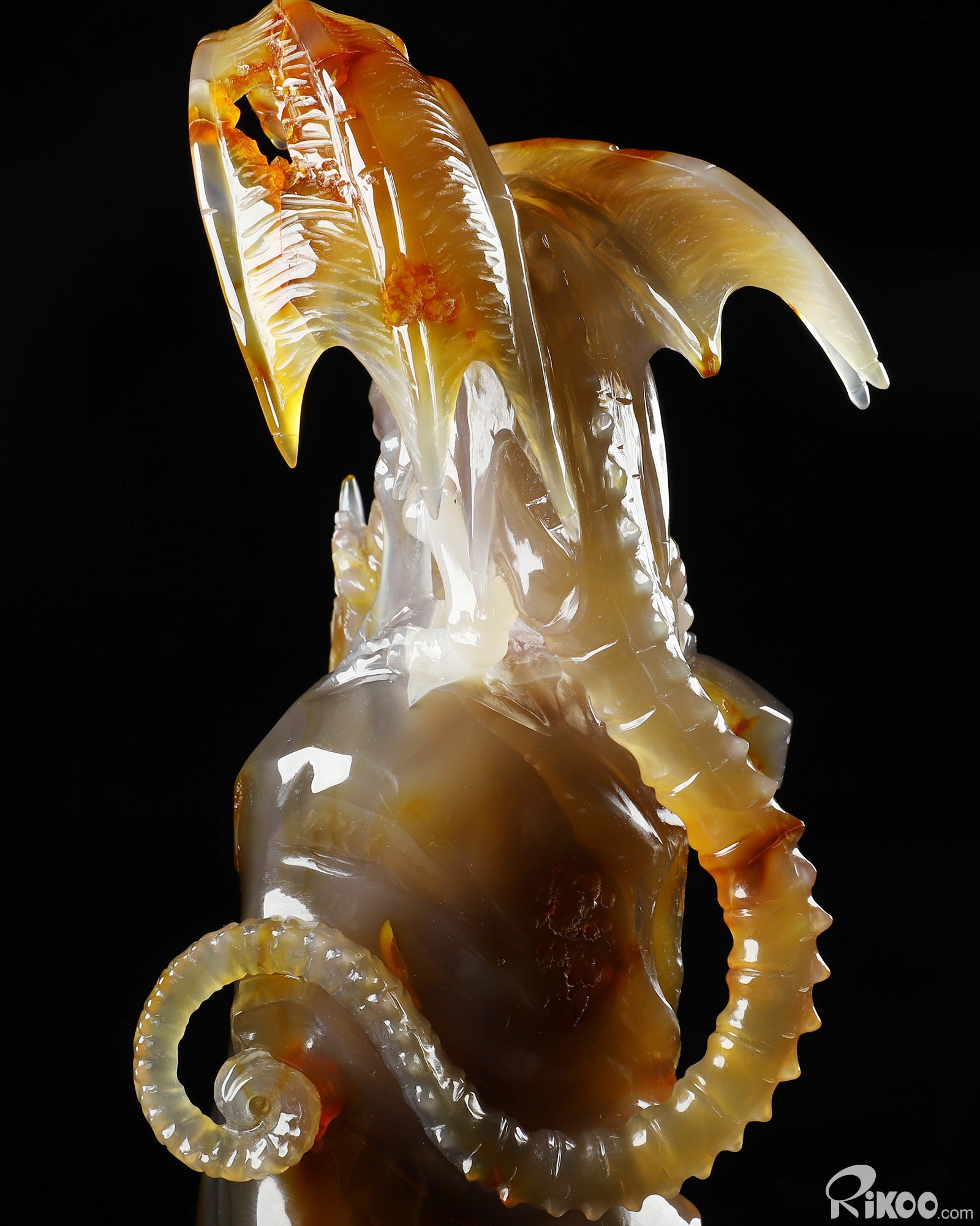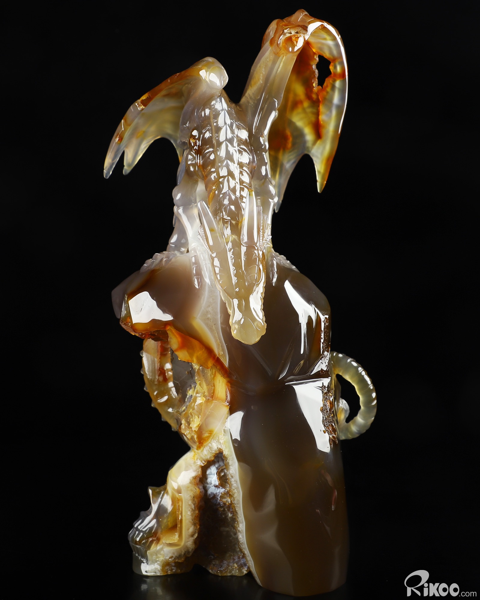 Stunning 10.3" Carnelian Carved Crystal Dragon & Skull Sculpture, Crystal Healing