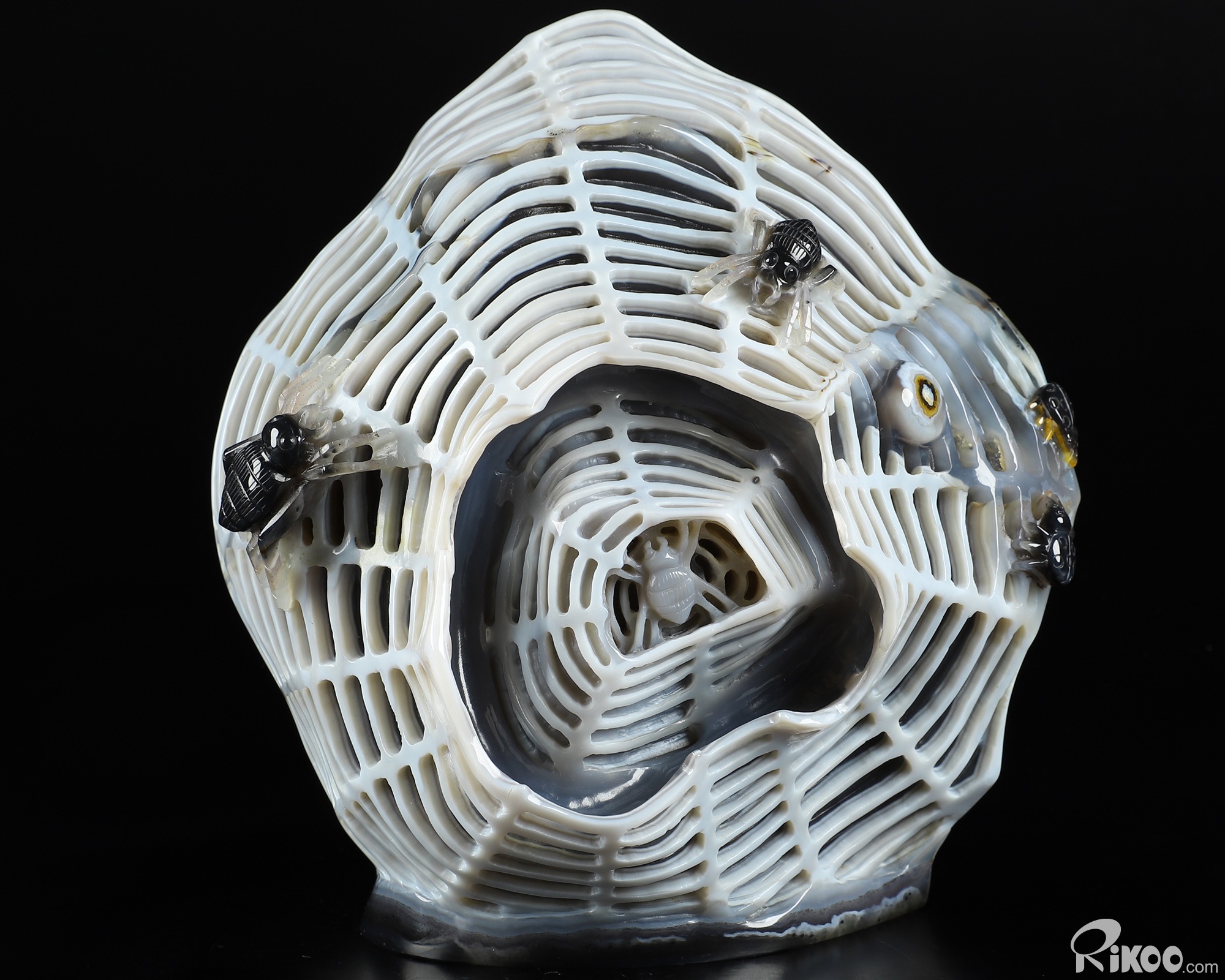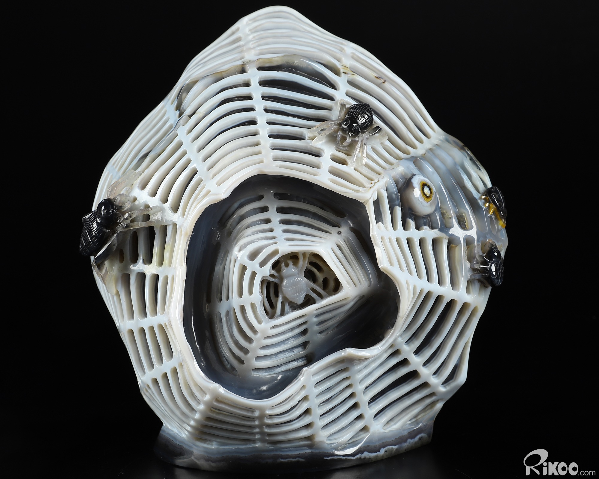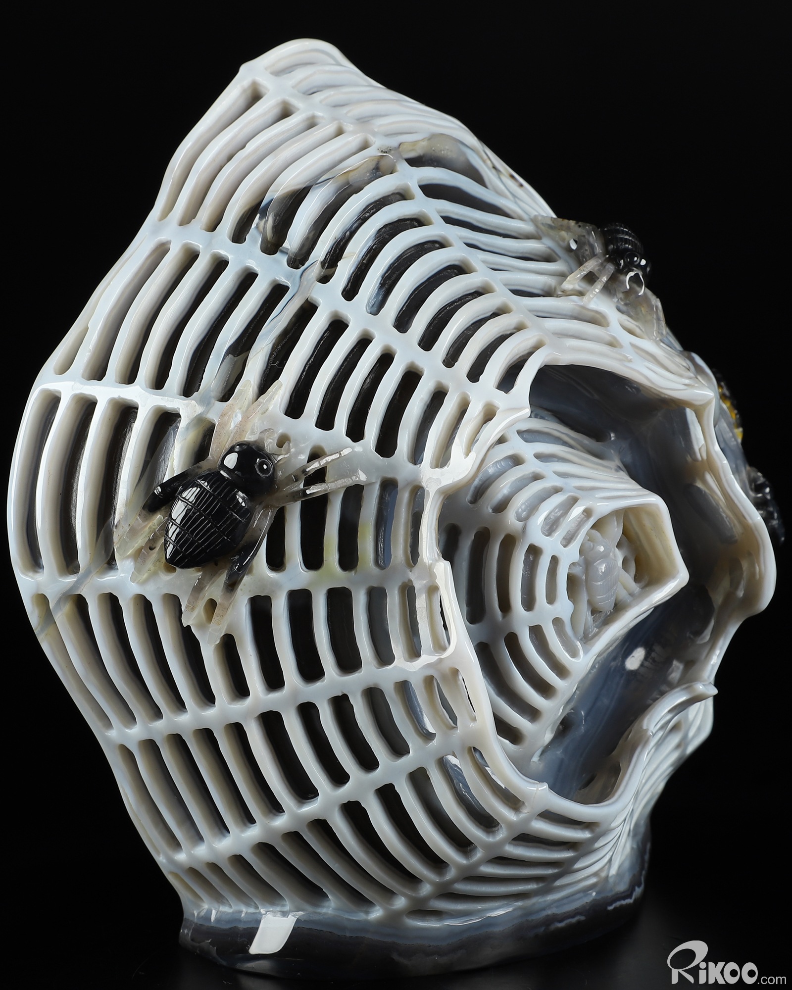 Stunning 7.1" Agate Carved Crystal Spiders Sculpture, Realistic, Crystal Healing