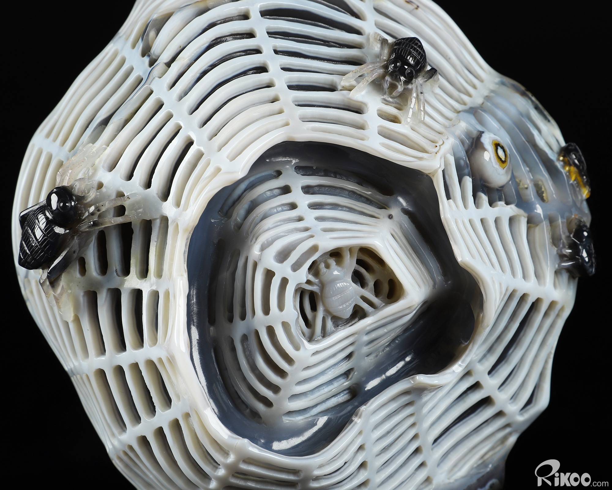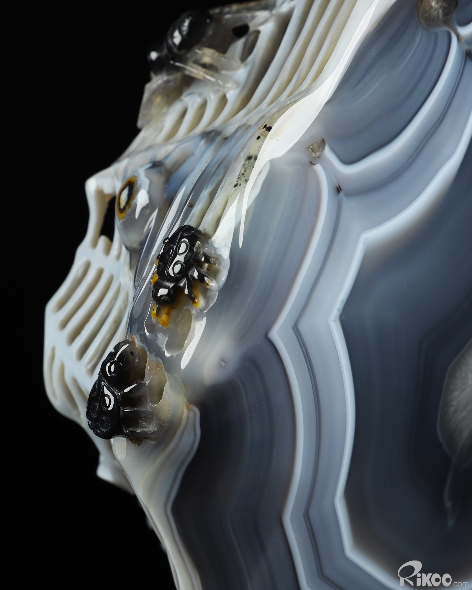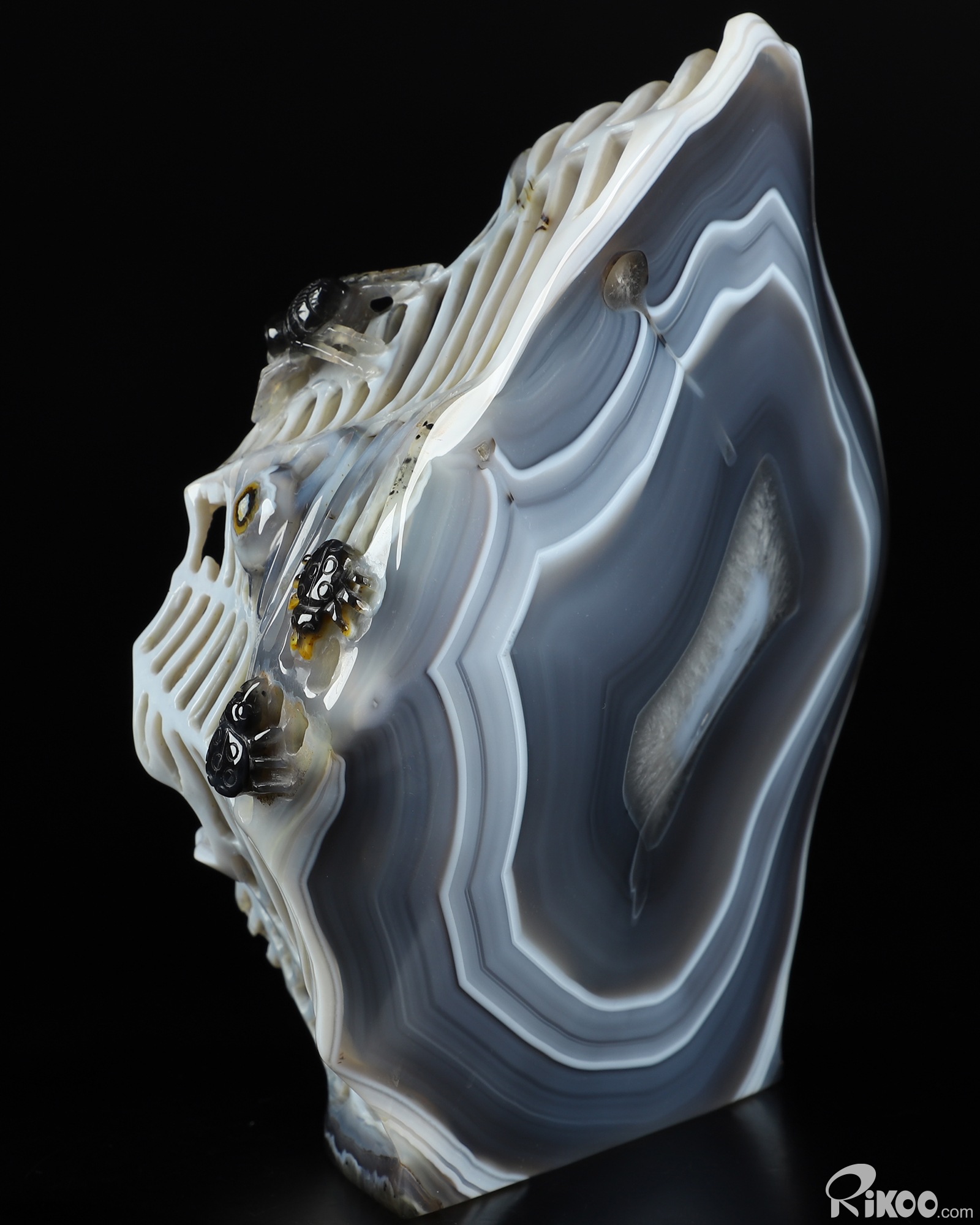 Stunning 7.1" Agate Carved Crystal Spiders Sculpture, Realistic, Crystal Healing
