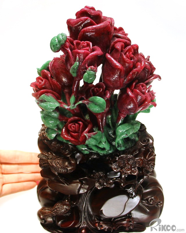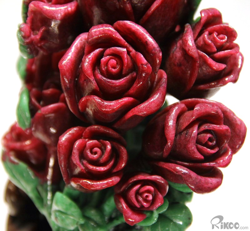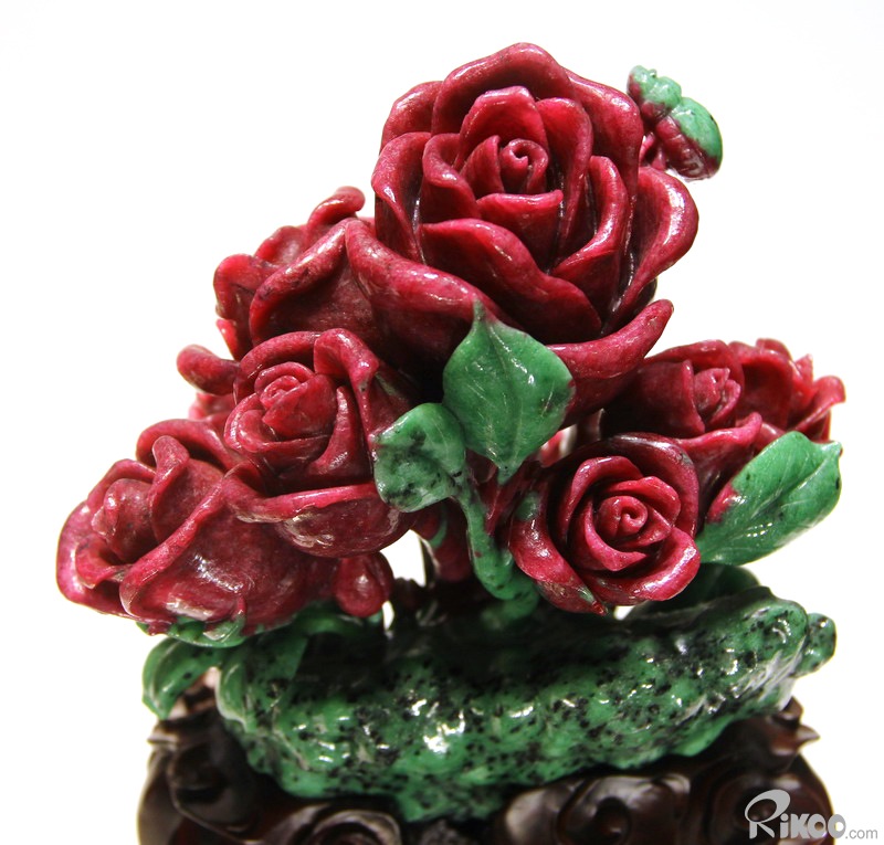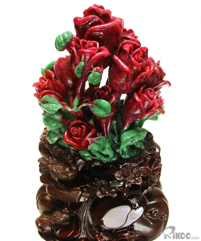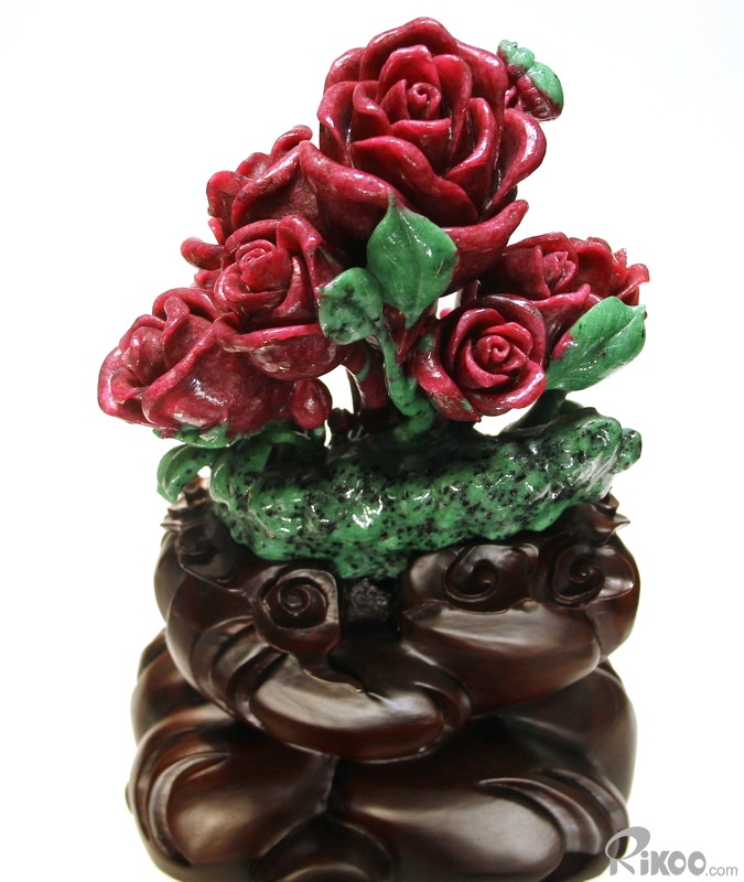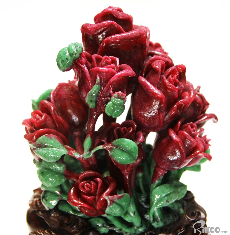 Stunning Gemstone Huge 6.9" Ruby Carved Crystal Roses Sculpture