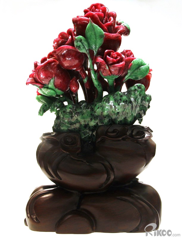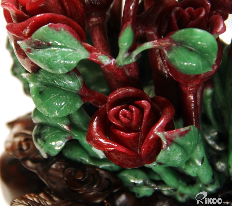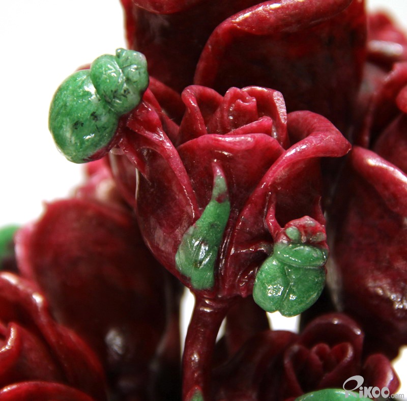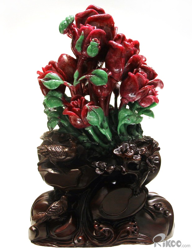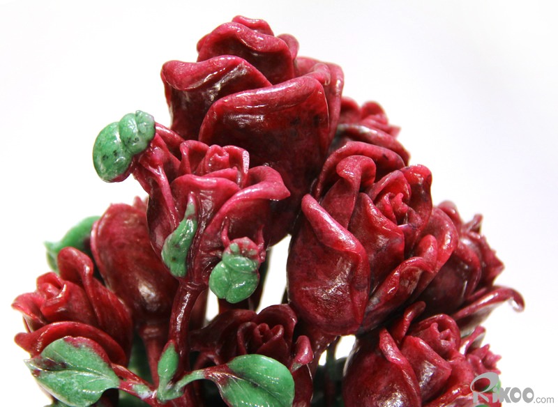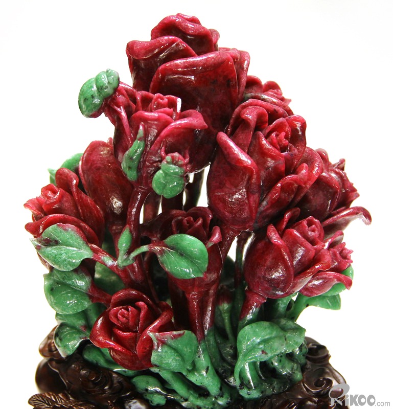 Stunning Gemstone Huge 6.9" Ruby Carved Crystal Roses Sculpture