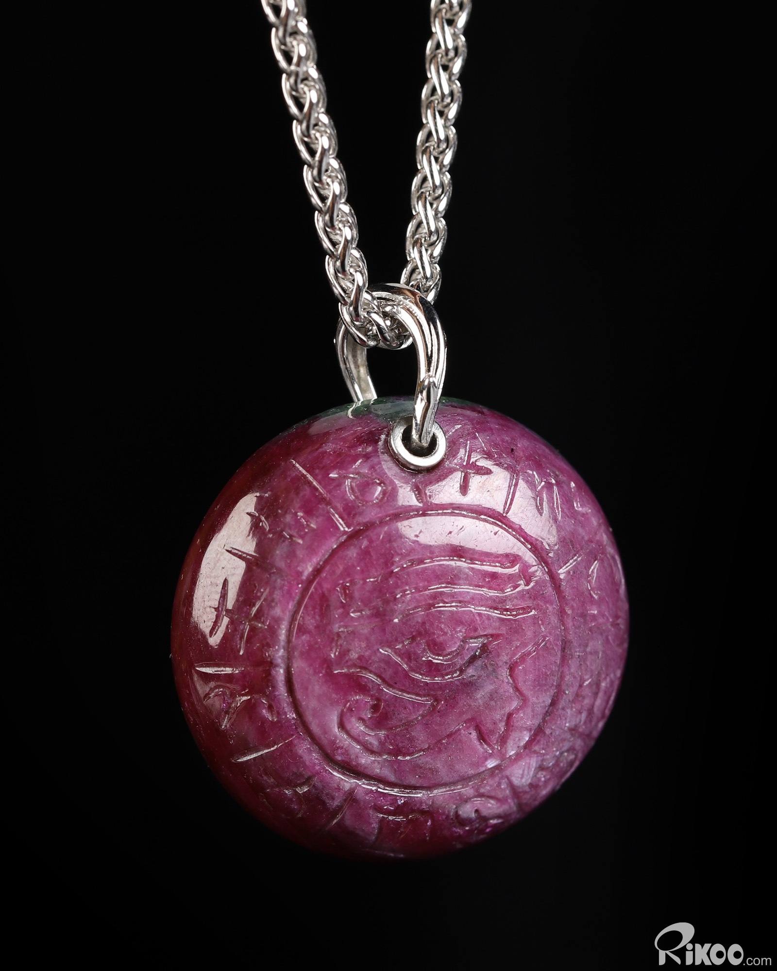 The Eye of Horus, 1.1" Ruby Hand Carved Crystal Necklace, Crystal Healing