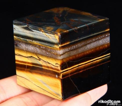 You are looking at a Tiger Iron Eye skull. The skull is 1.5 inches long from front to back.