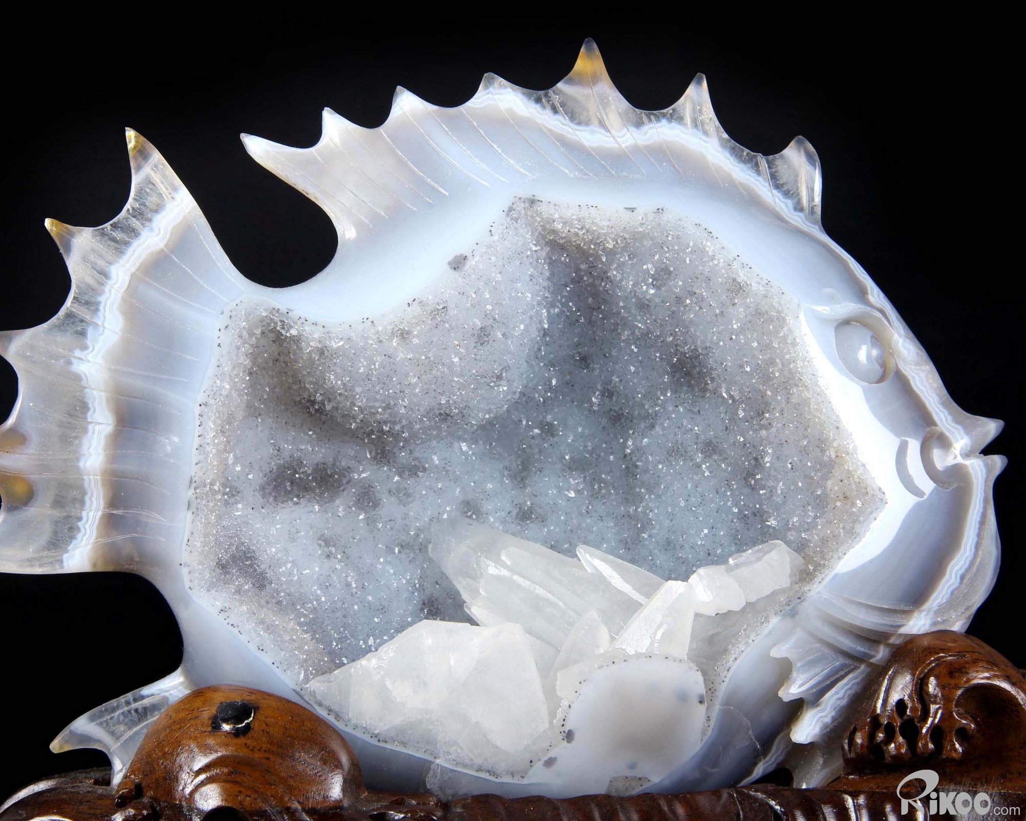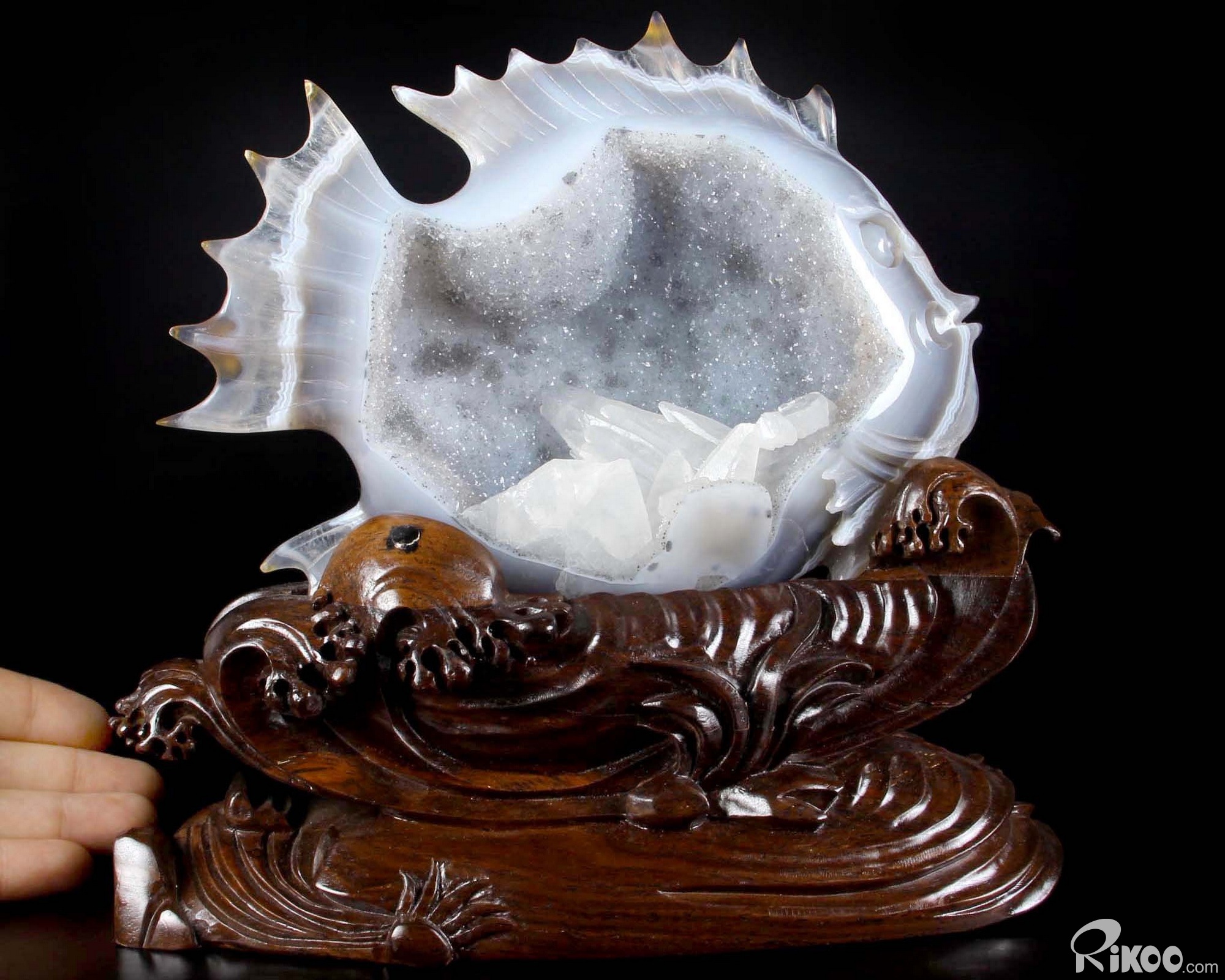 Titan 10.6" Agate Geode Crystal Fish Sculpture With Stand