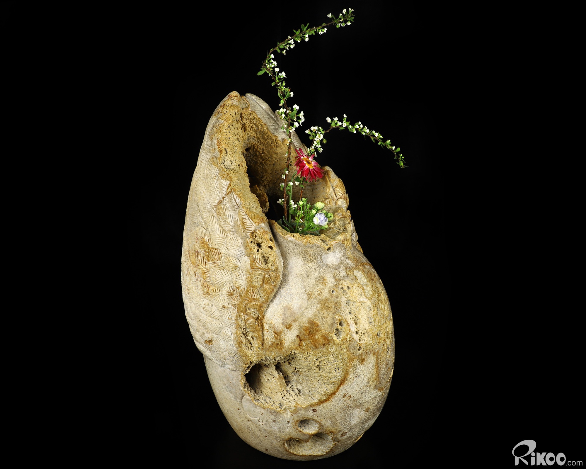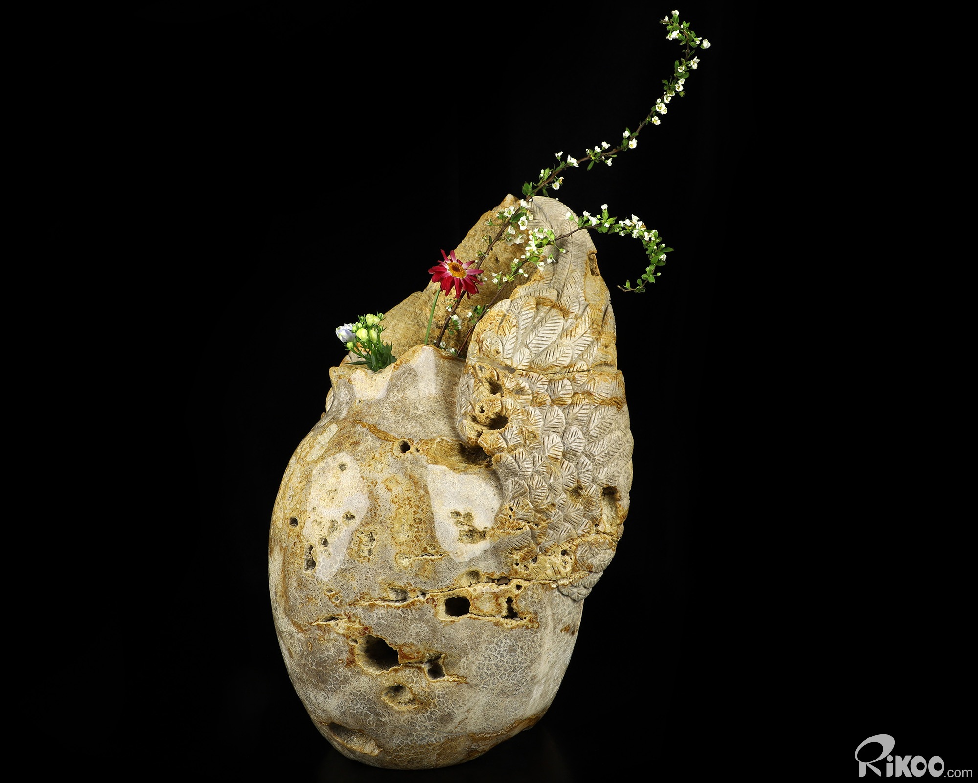 Titan 10.8" Coral Fossil Hand Carved Crystal Vase Sculpture, Crystal Healing